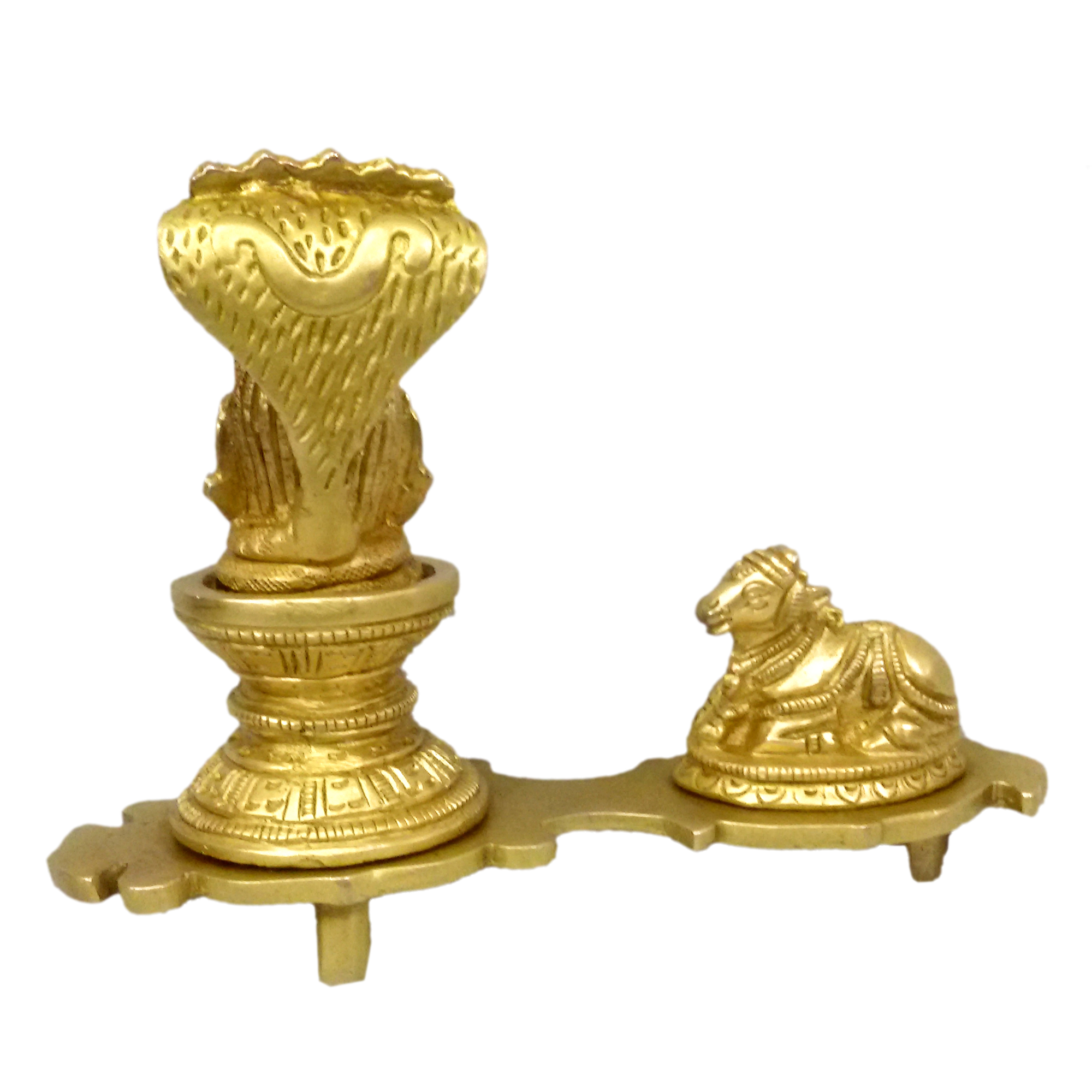 Handcrafted Brass Shivling with Sheshnag, ideal for pooja rooms, home decor, or temple display, symbolizing Lord Shiva’s divine presence.
