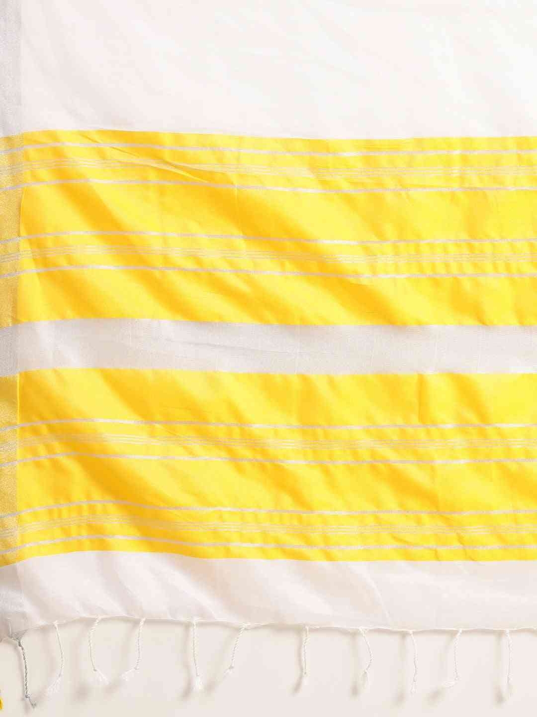 Elegant Semi Linen Saree with Silver Zari Border | White & Yellow