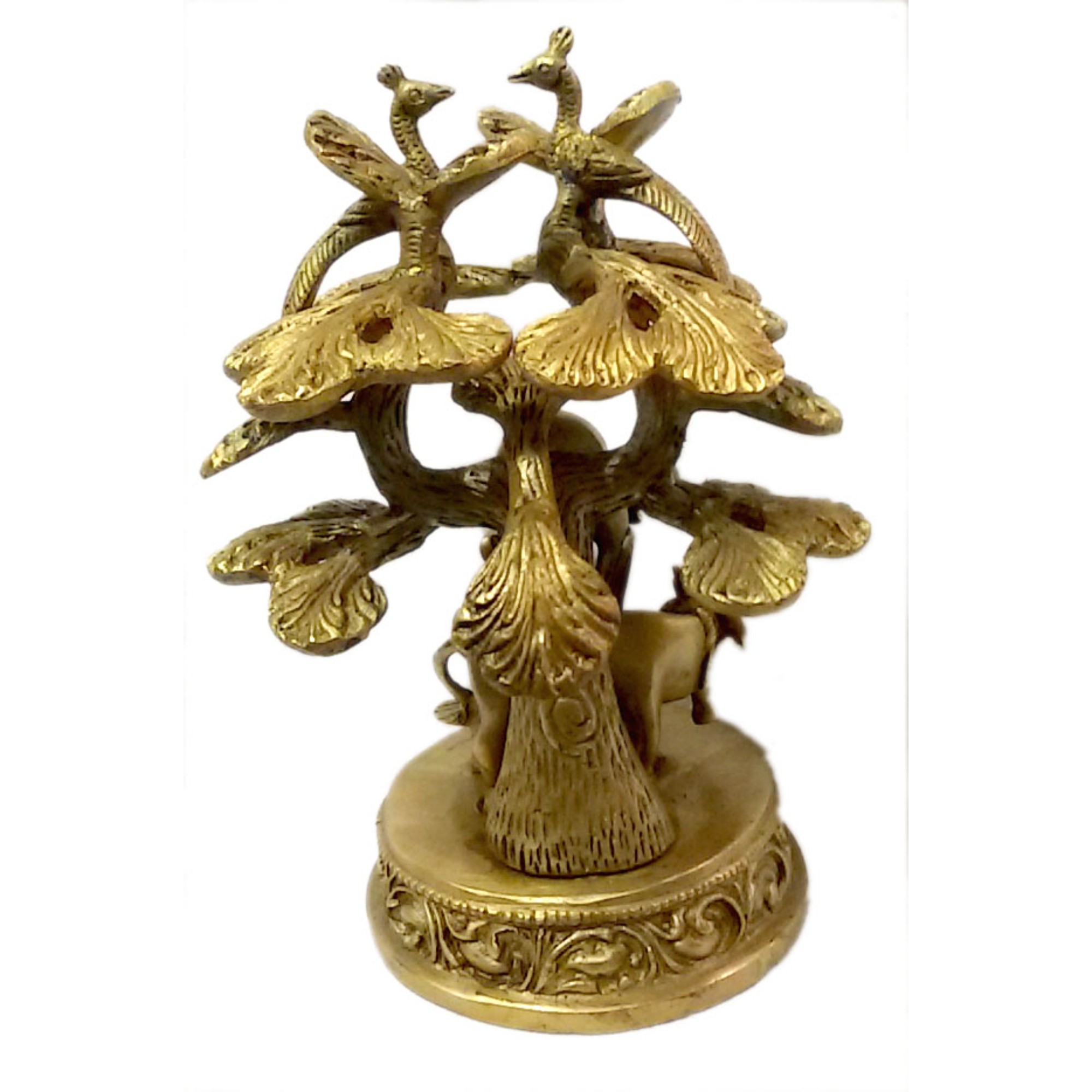Handcrafted Brass Krishna with Cow and Tree, perfect for pooja rooms, home decor, or temple display, symbolizing divine love, protection, and pastoral serenity.