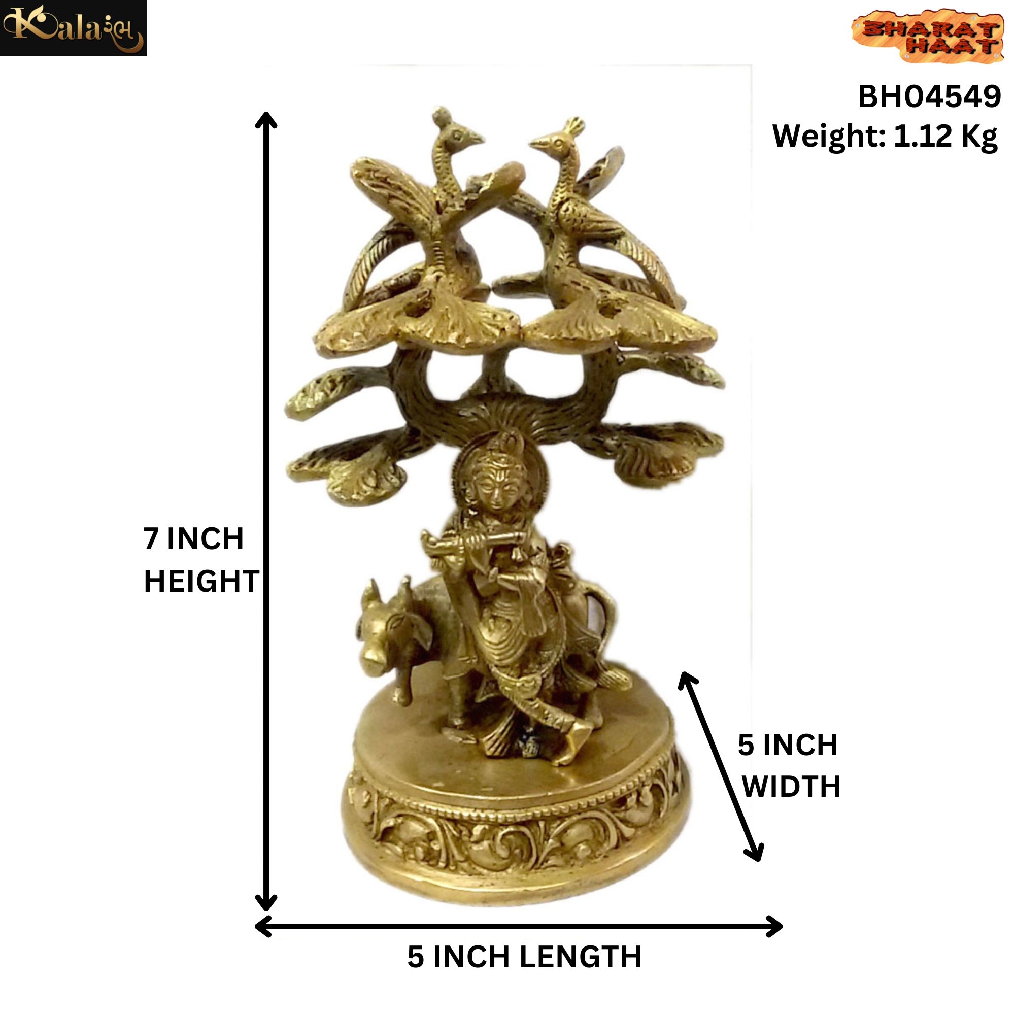 Design: Handcrafted in the form of Lord Krishna with a cow under a tree, symbolizing peace, devotion, and pastoral charm, perfect for home décor or pooja rooms