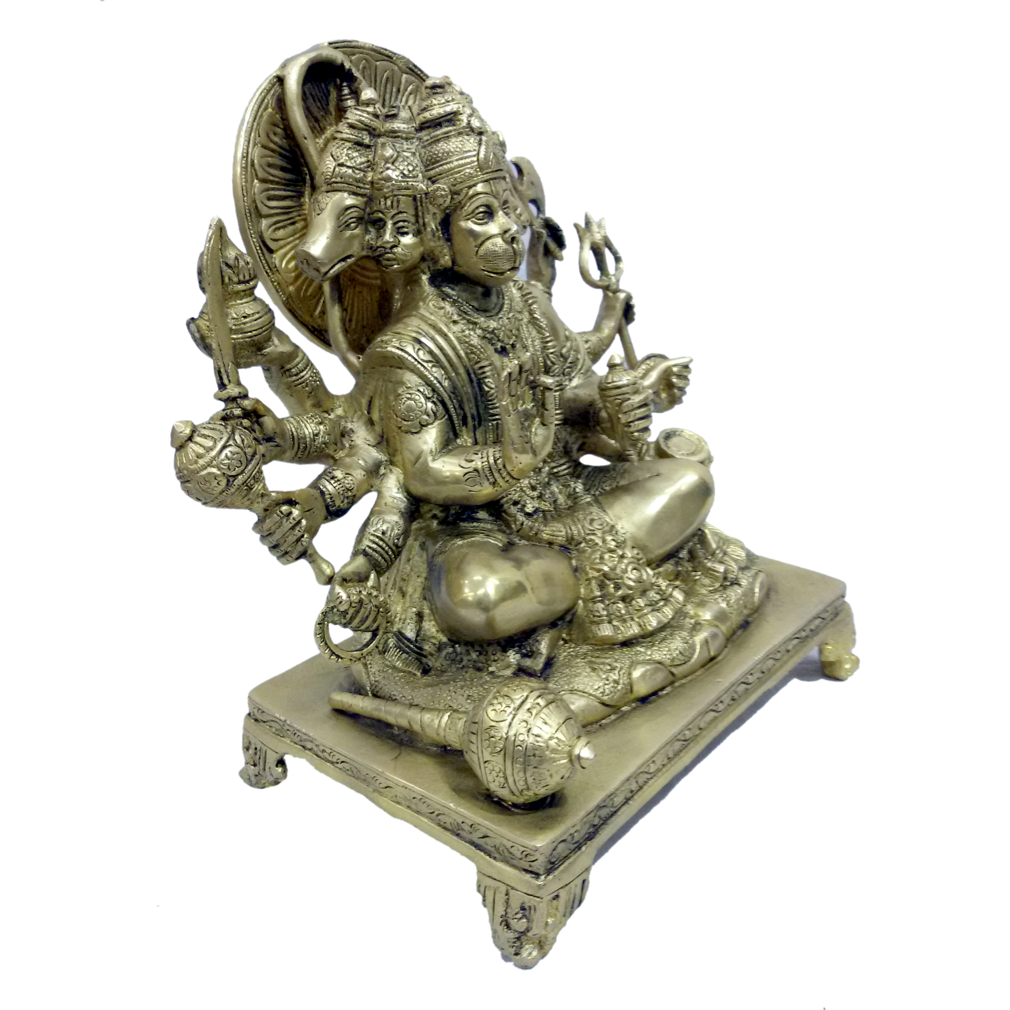 Design: Beautifully handcrafted five-faced Hanuman idol seated on a traditional Bajath (throne), representing power, protection, and devotion in perfect harmony
