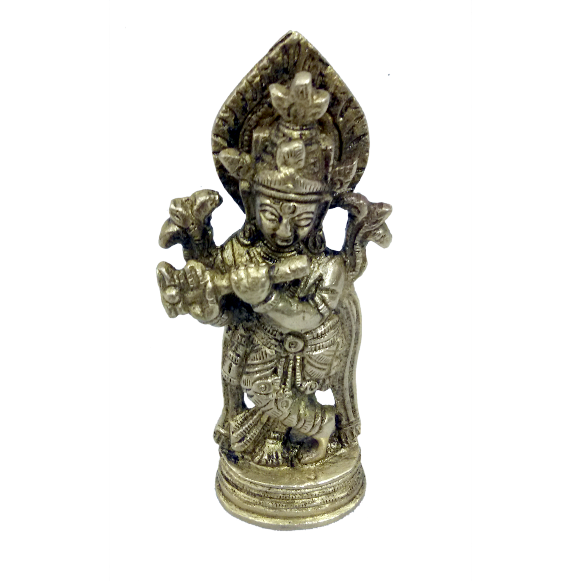 Elegant small brass statue of Lord Krishna, crafted with precision and devotion — perfect for pooja rooms and divine décor.