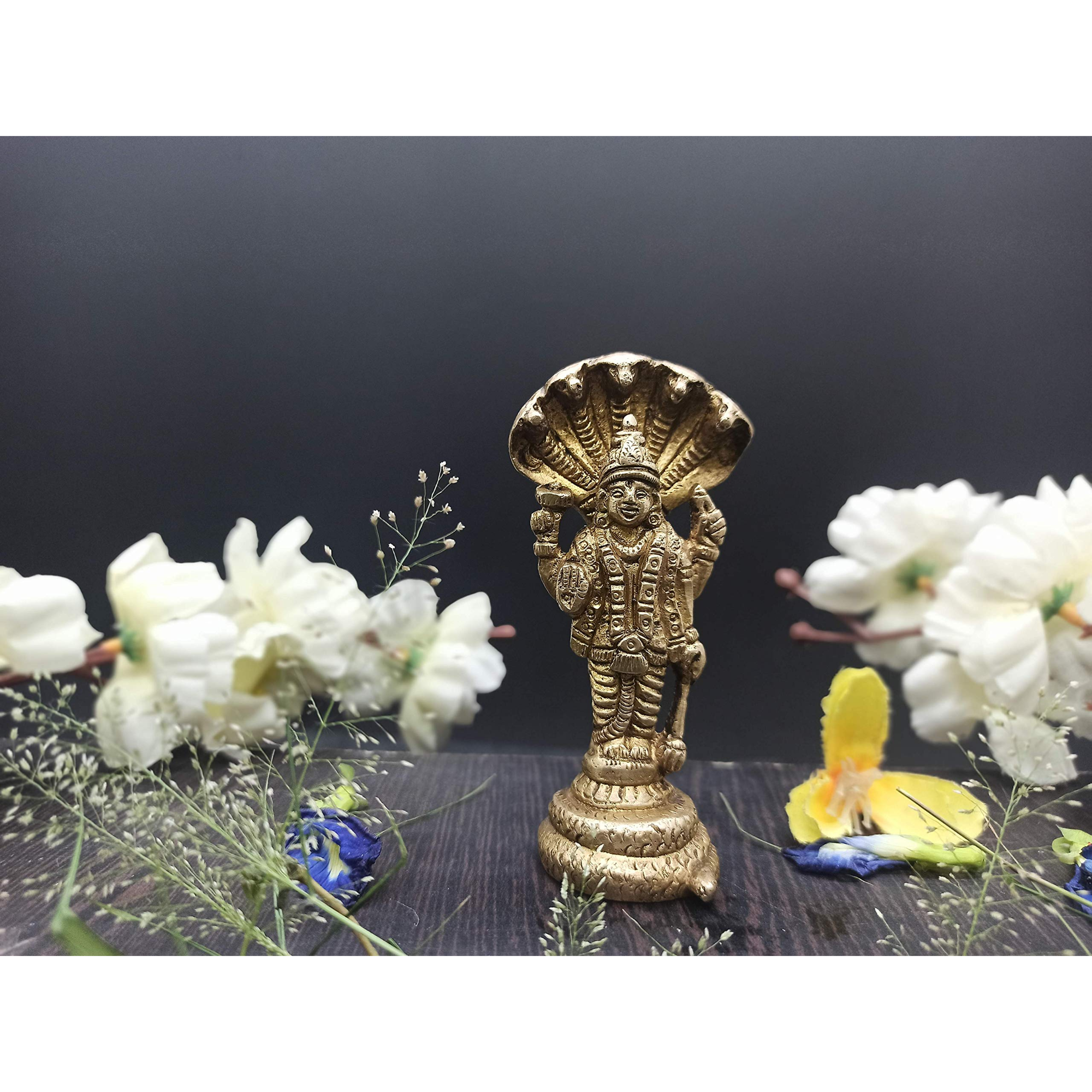 Elegant brass Vishnu statue with Nag, beautifully handcrafted for divine grace and spiritual décor.