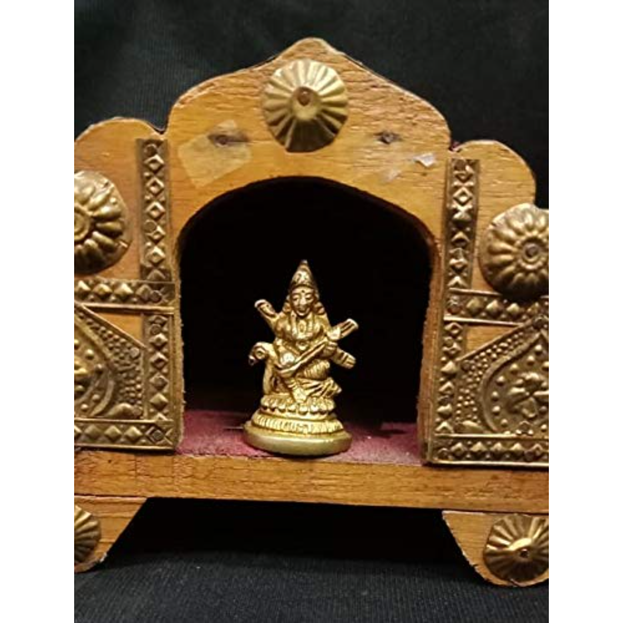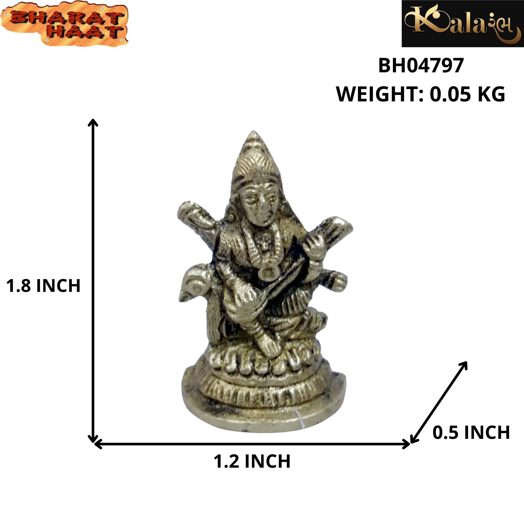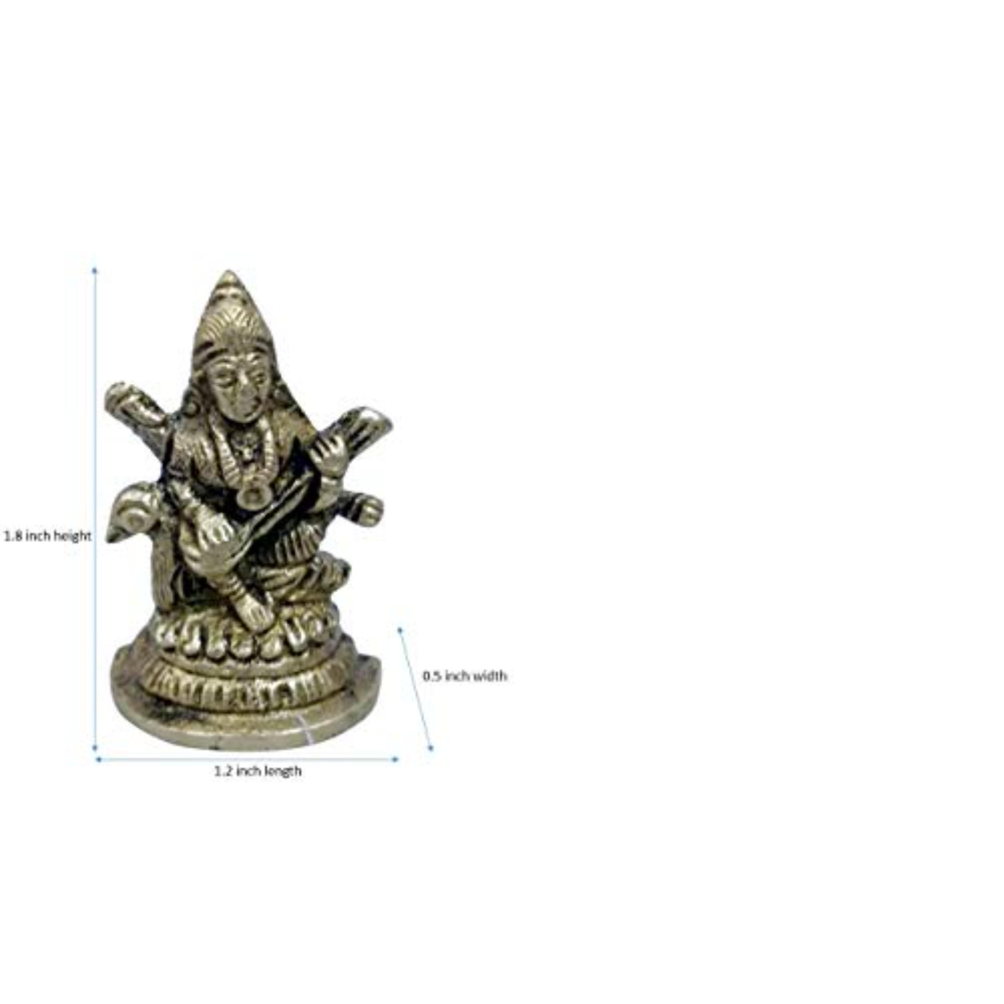 • Design: Beautifully crafted small brass statue of Goddess Saraswati, symbolizing knowledge, wisdom, and artistic inspiration