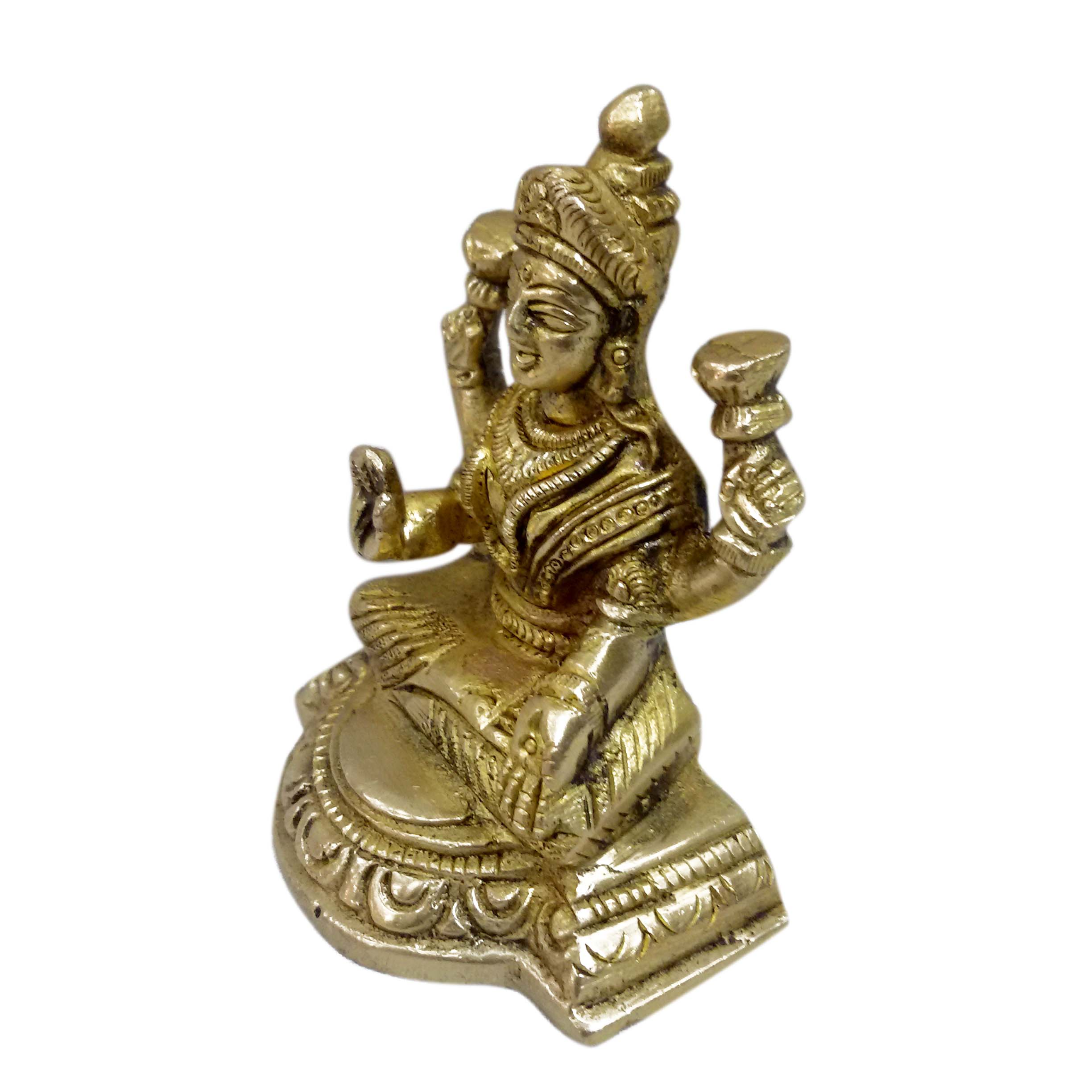Design: Beautifully crafted small brass statue of Goddess Laxmi in sitting posture , symbolizing wealth, prosperity, and spiritual blessings