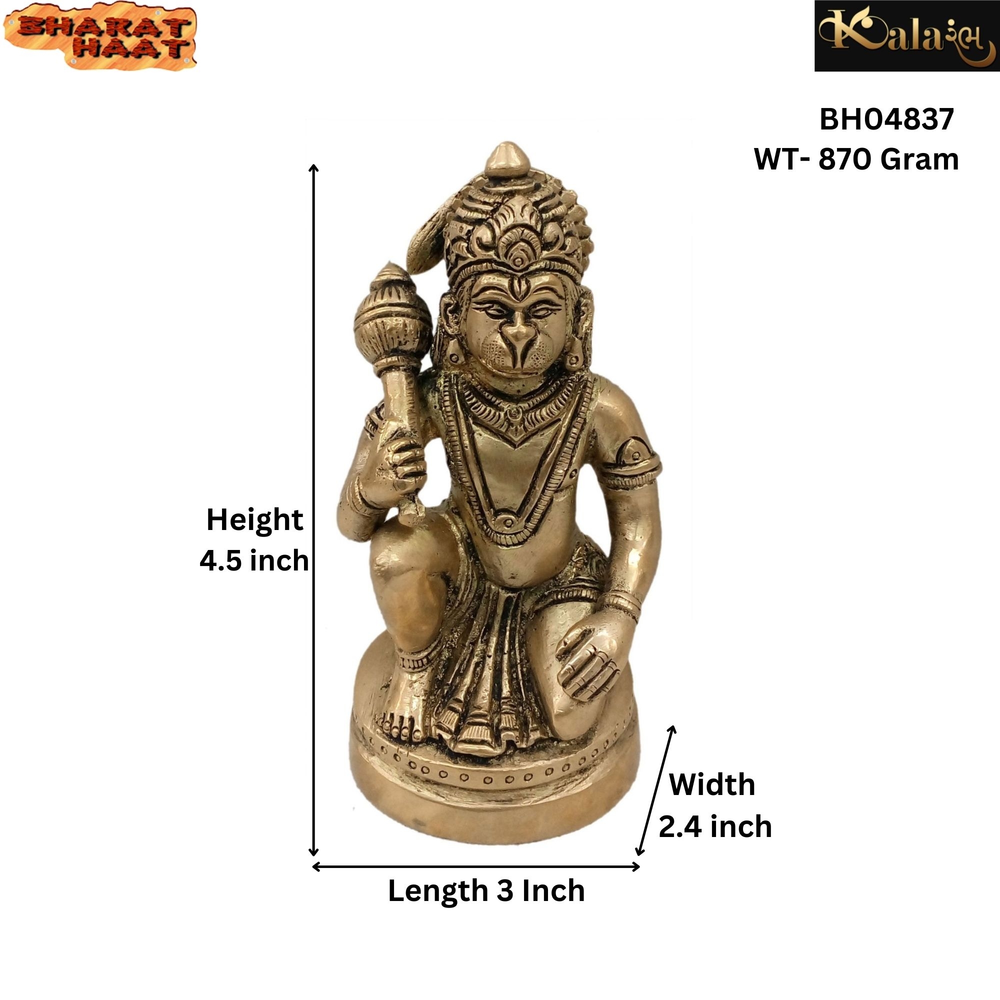 Design: This Brass Hanuman Sitting Idol features Lord Bajrangbali in a peaceful yet powerful pose, representing devotion, strength, and protection