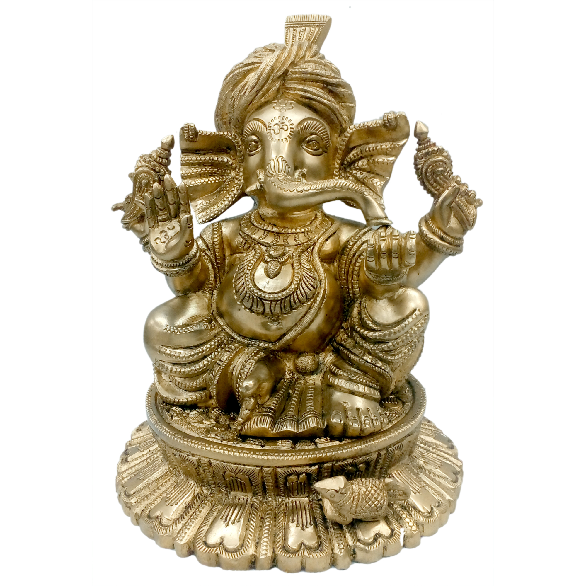 Design: This Brass Turban Ganesh Statue showcases Lord Ganesha wearing a traditional Indian turban , symbolizing royalty, wisdom, and cultural heritage