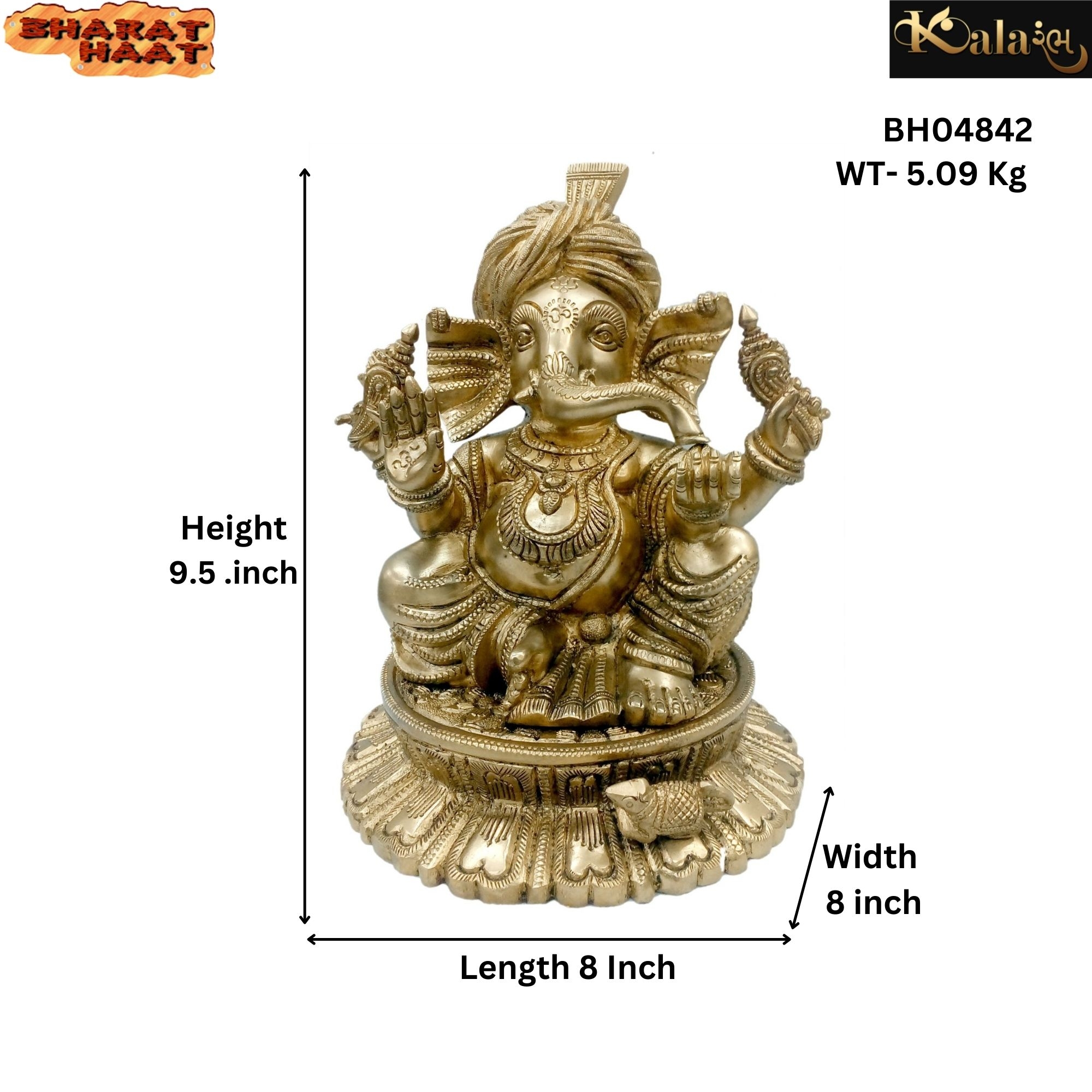 Brass Turban Ganesh Statue Idol KBH04842