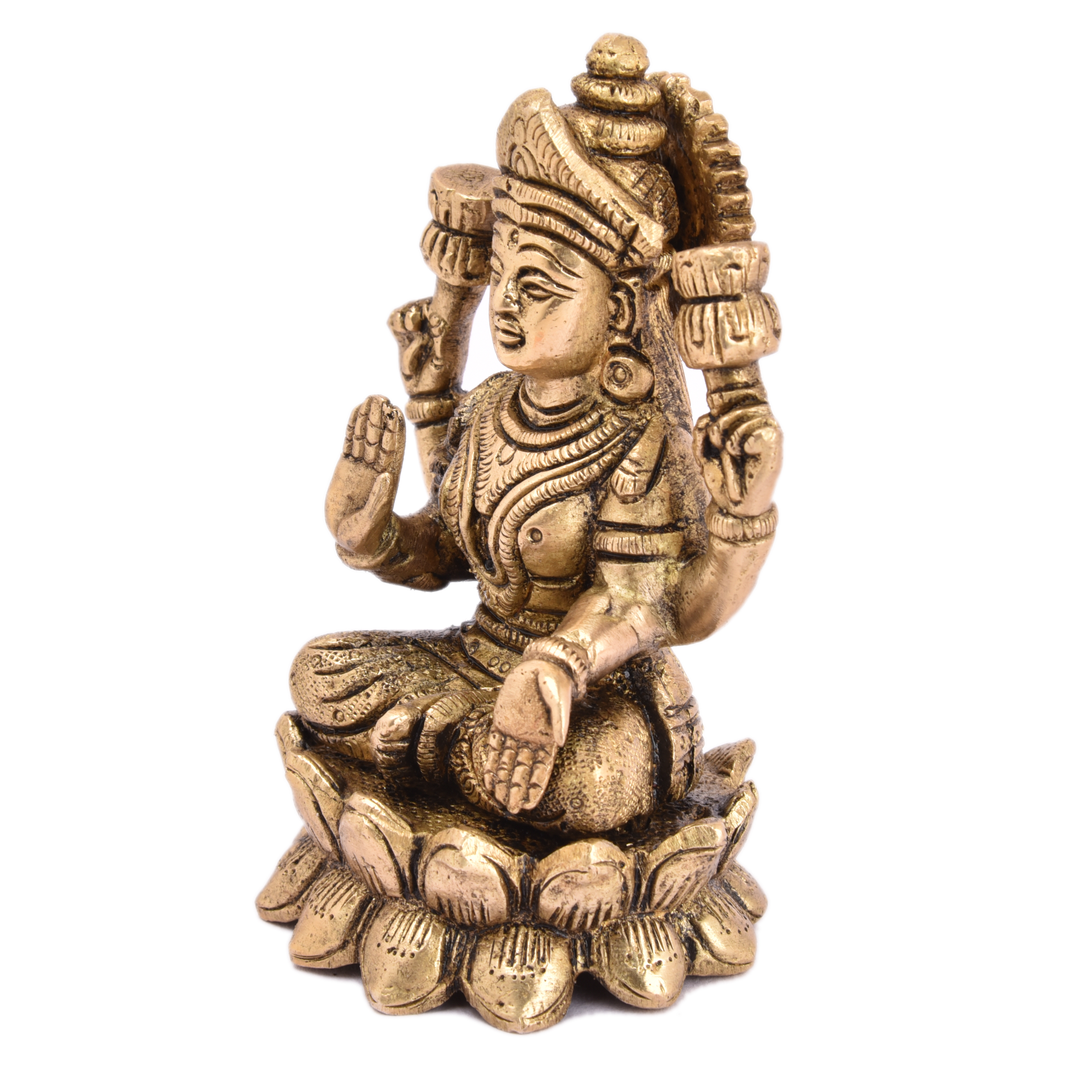 Exquisite detailing of Goddess Laxmi in a serene sitting posture.