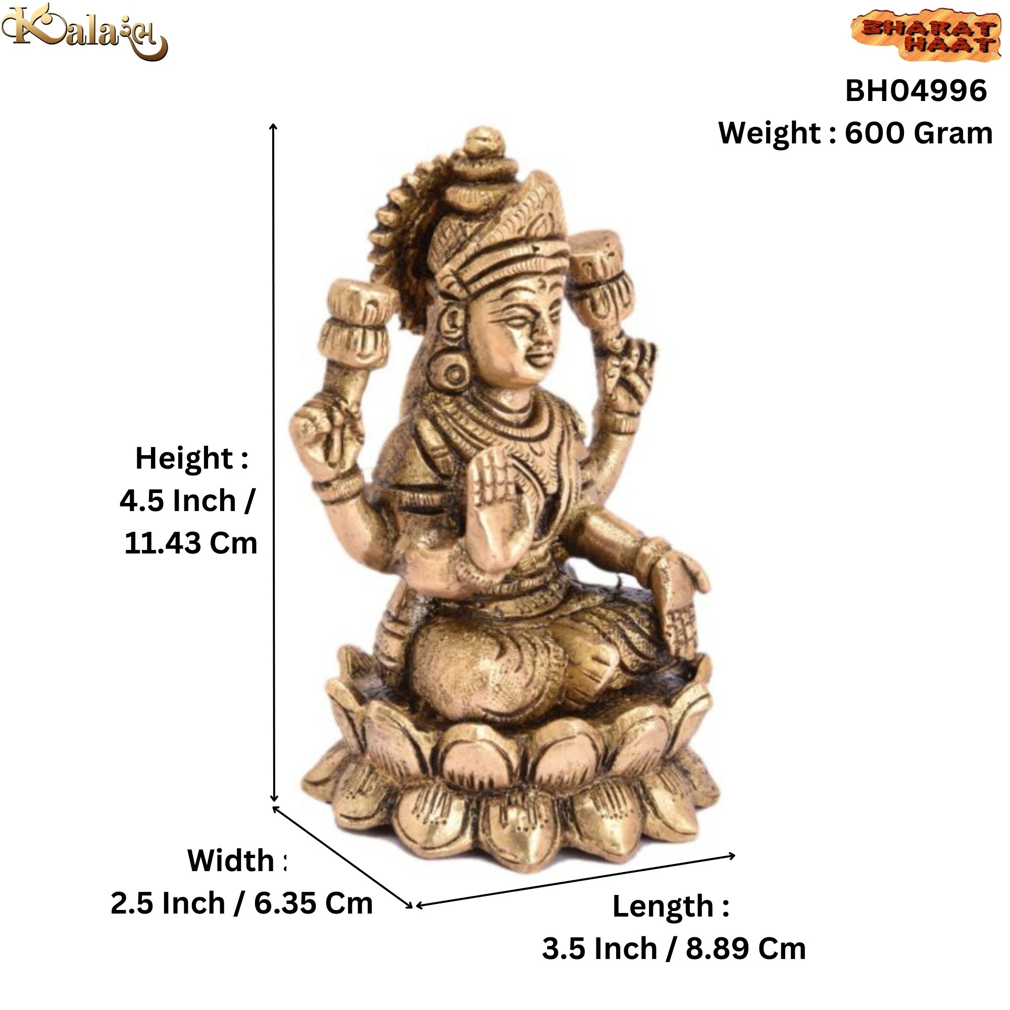 Beautiful Brass Laxmi on Kamal Sitting idol, perfect for pooja, gifting, and enhancing spiritual ambiance in your home.