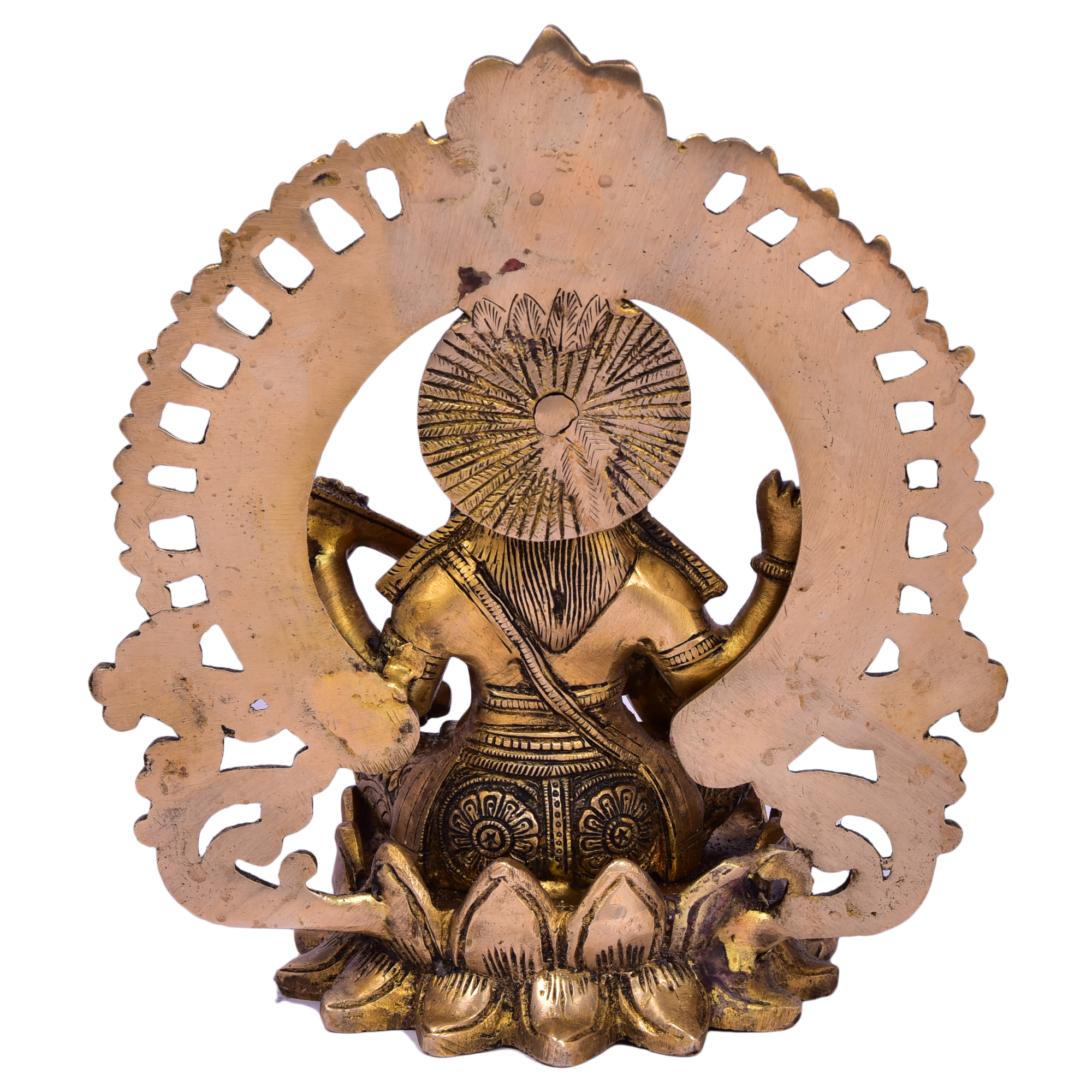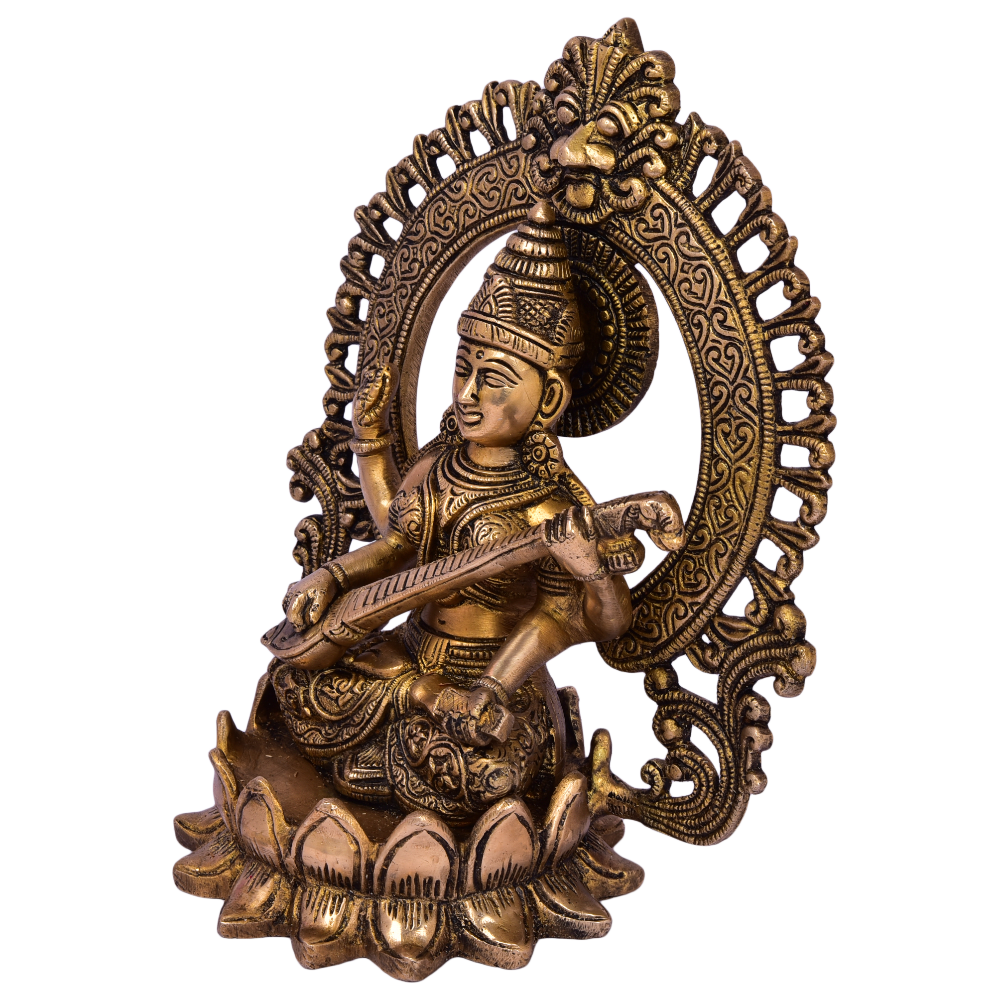 Elegant Brass Kaman sitting on Kamal with Saraswati, crafted for home décor, pooja, and gifting purposes.