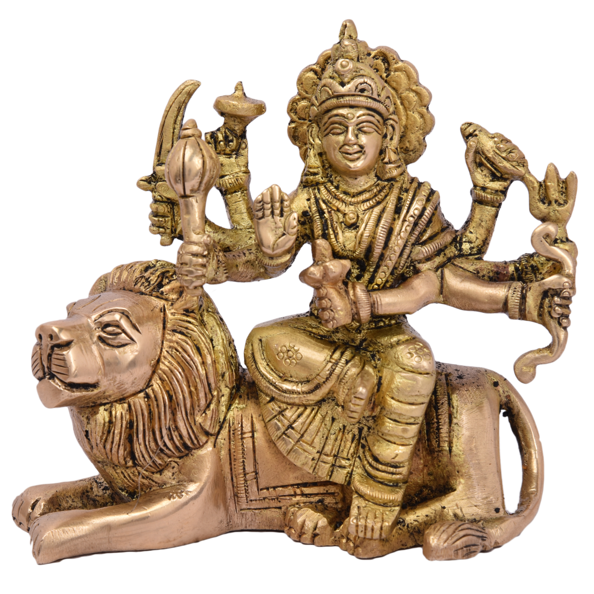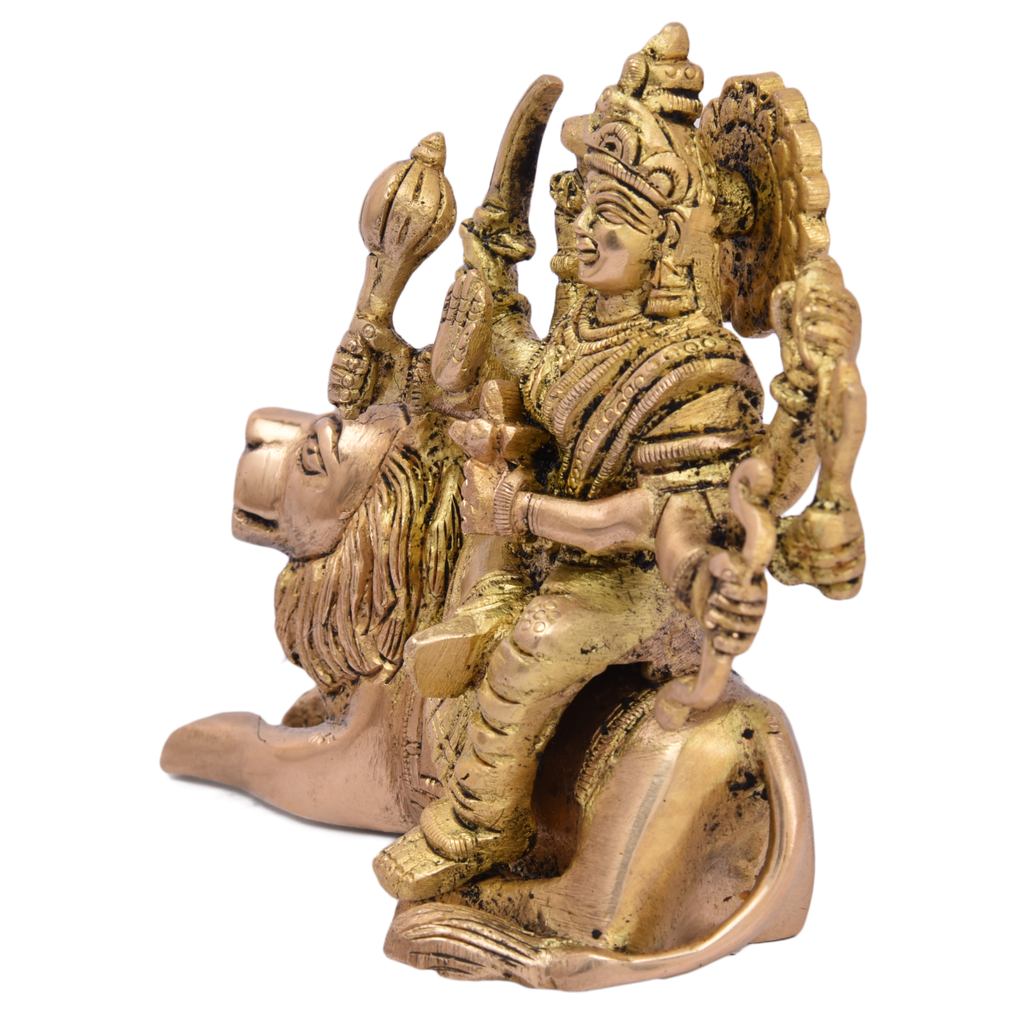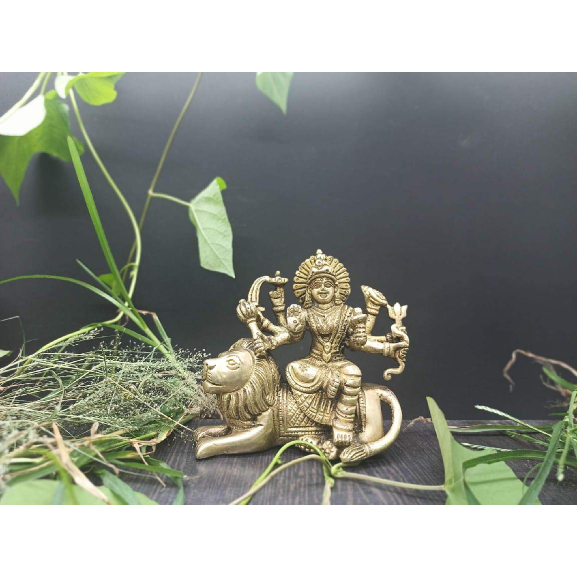 Elegant Brass Sitting Ambe Idol, crafted for home décor or pooja purposes, symbolizing power, prosperity, and divine blessings.