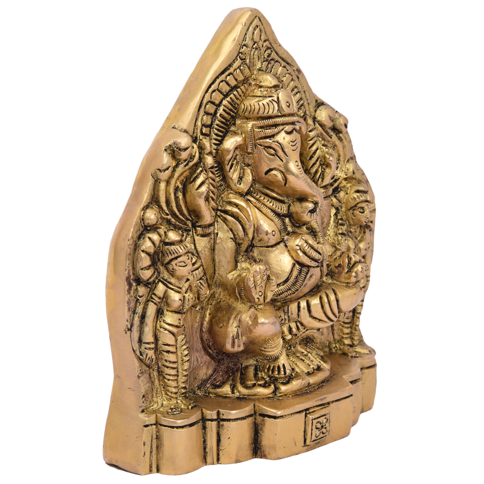Elegant Brass Ganesh with Riddhi Siddhi, ideal for home décor or gifting, representing prosperity and success.