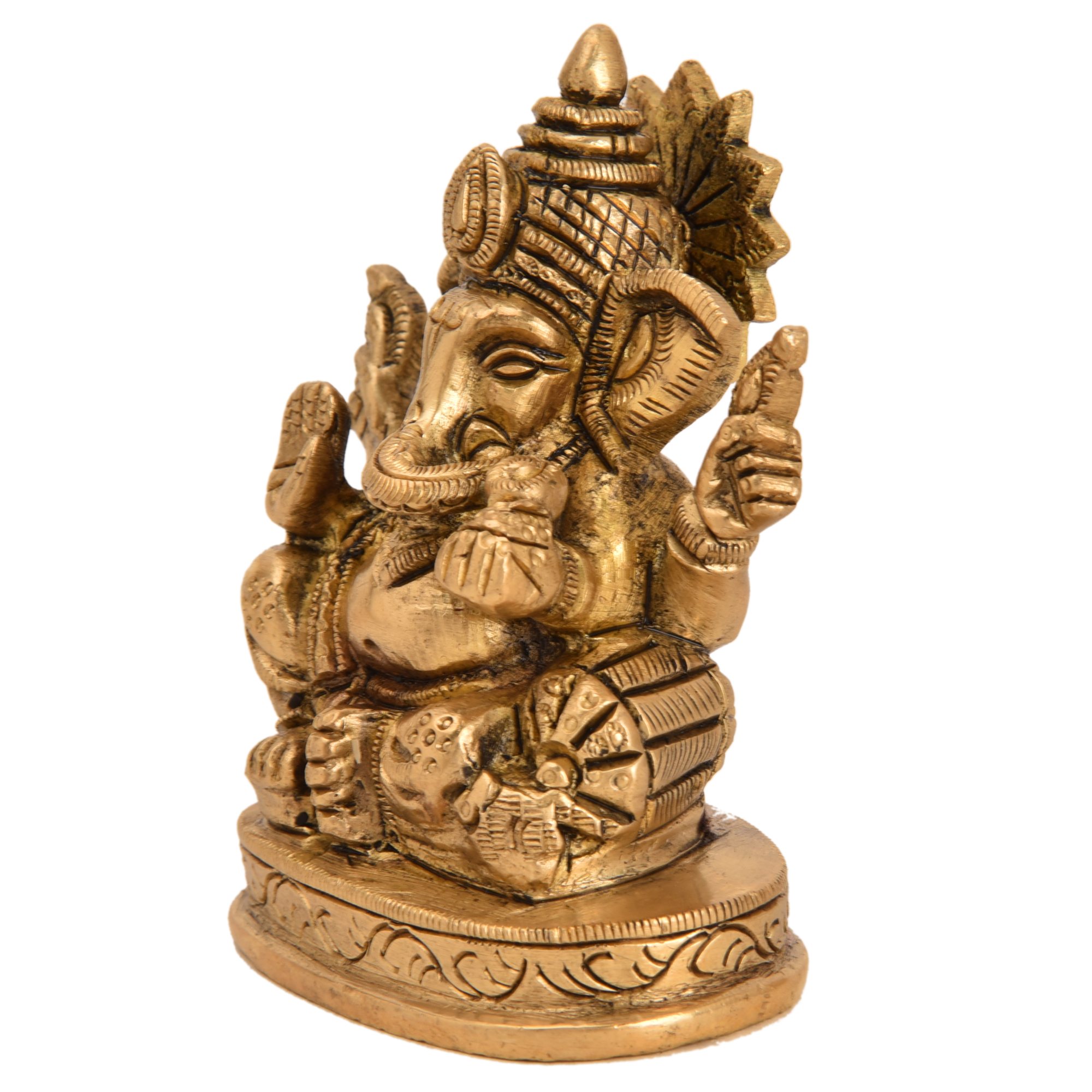• Design: Handcrafted brass statue depicting Lord Ganesha in a traditional posture