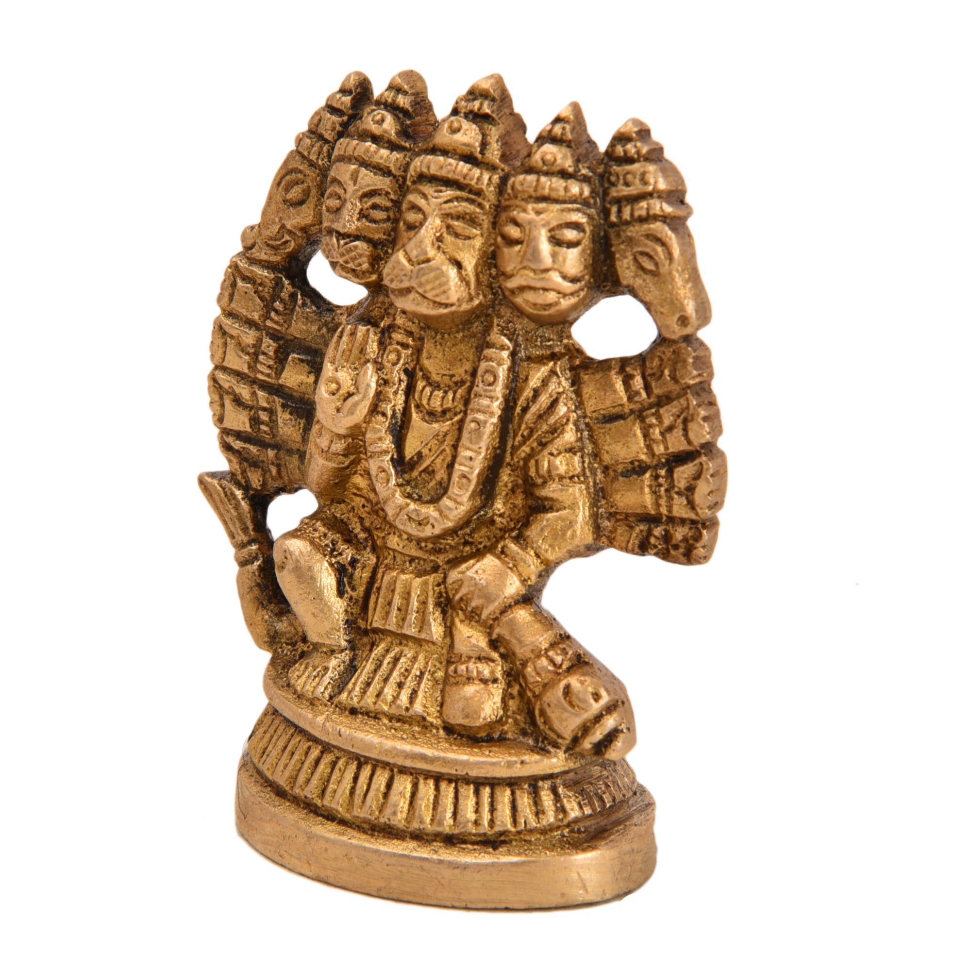 Handcrafted small Brass Pancha Mukhi Hanuman statue, perfect for puja, home décor, or gifting.