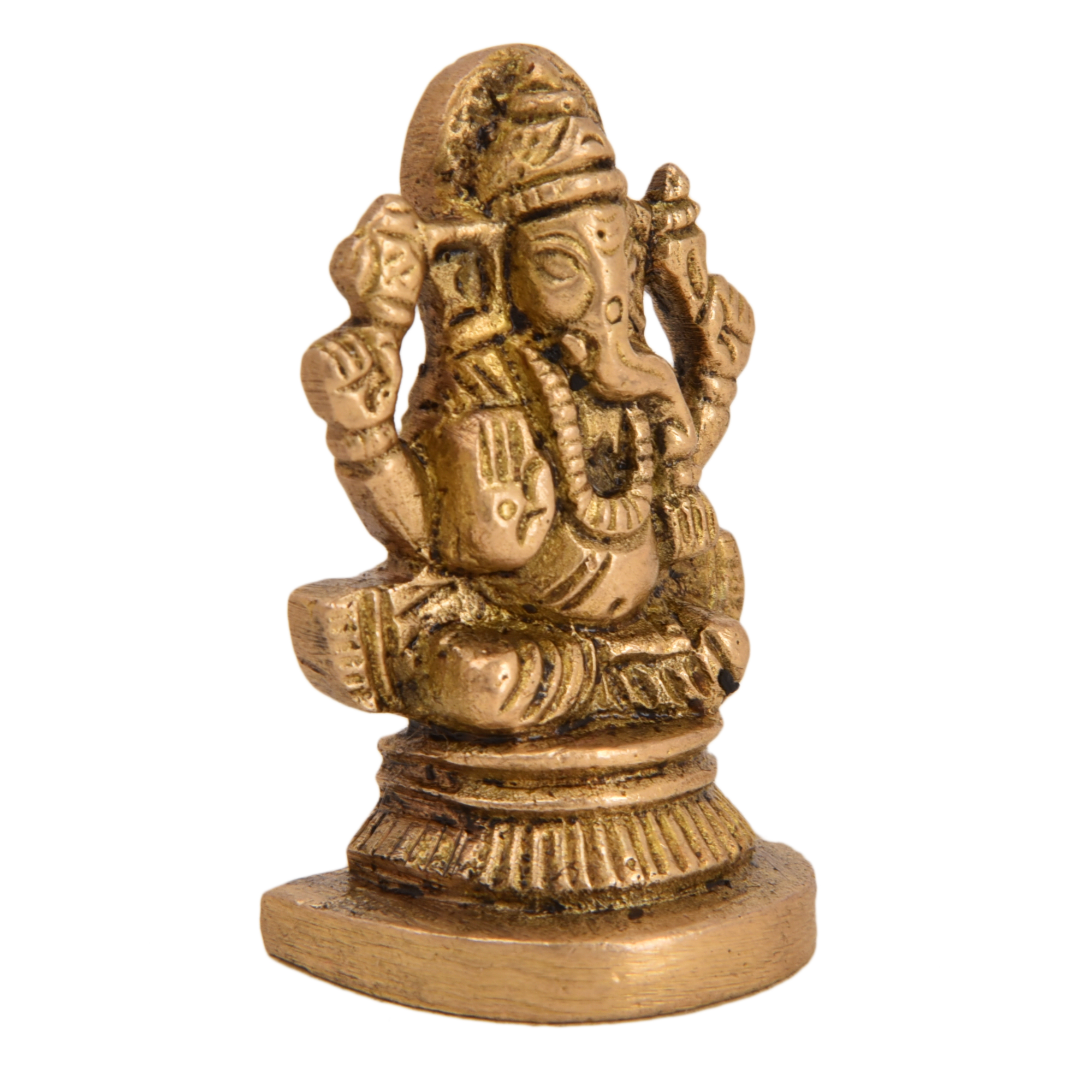 • Design: Handcrafted brass statue depicting Lord Ganesha in a traditional small posture