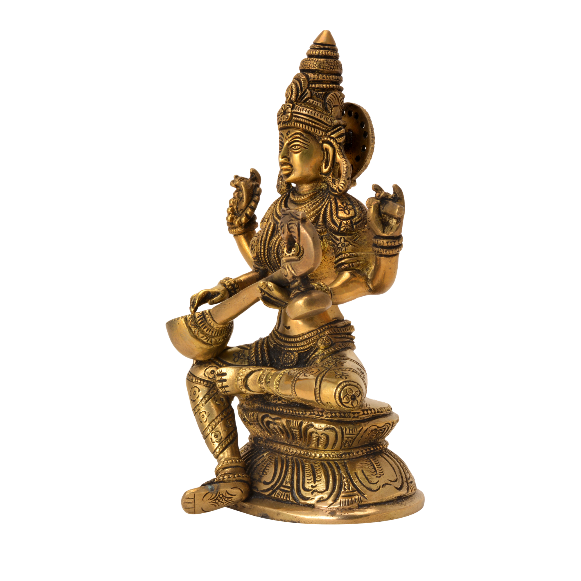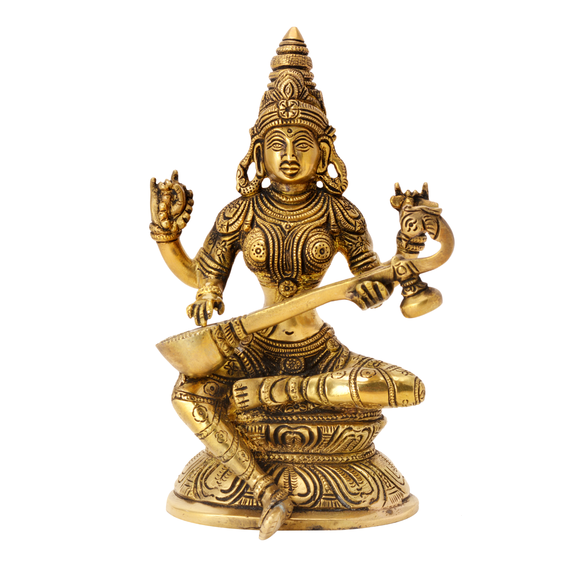 Handmade Brass Saraswati statue, ideal for pooja, gifting, or home décor.