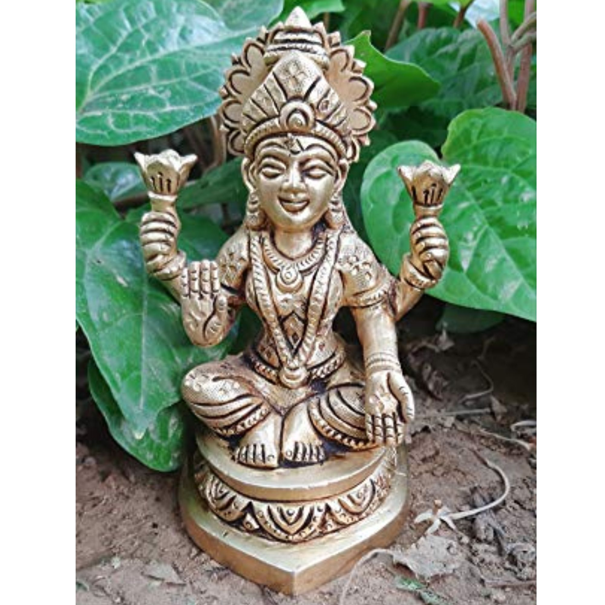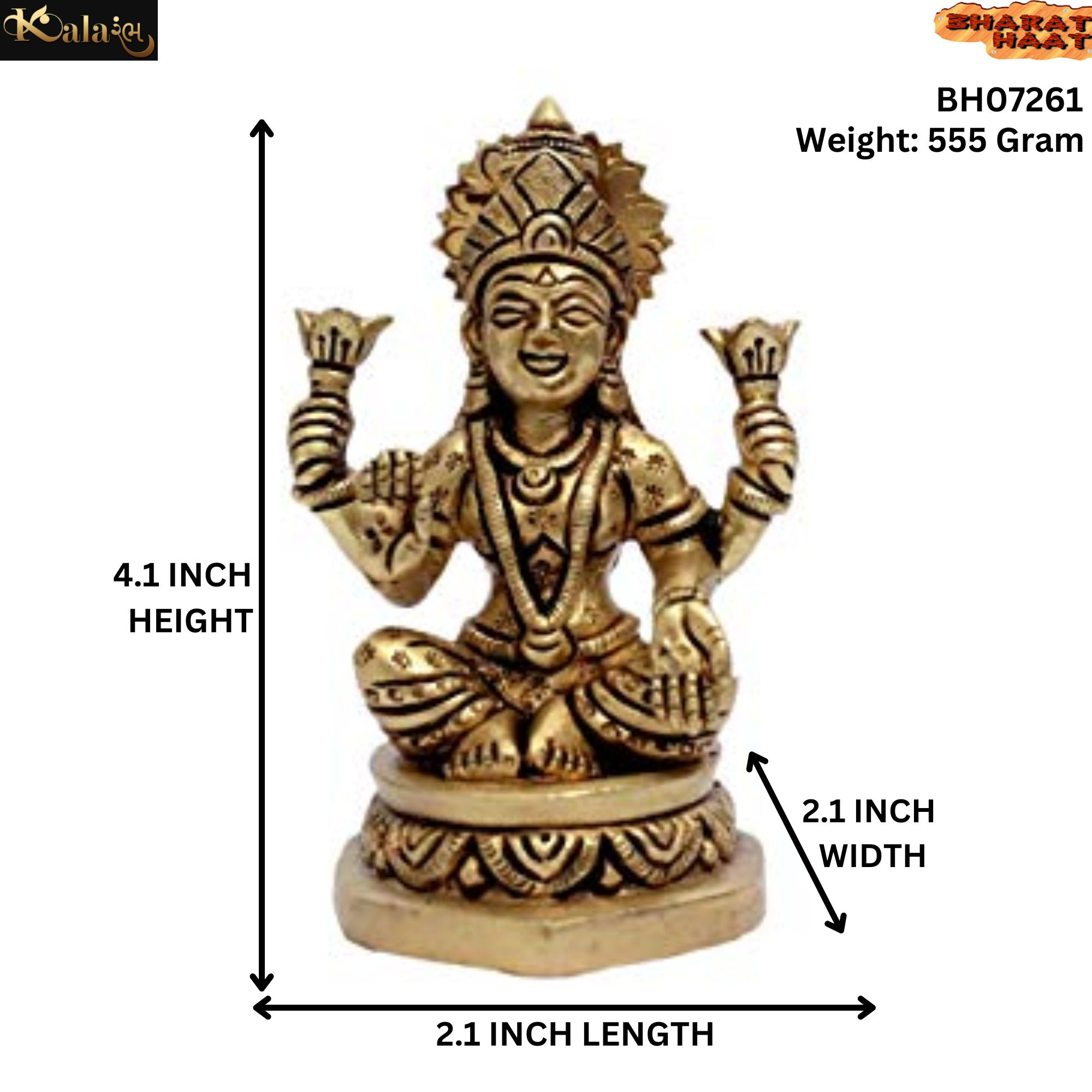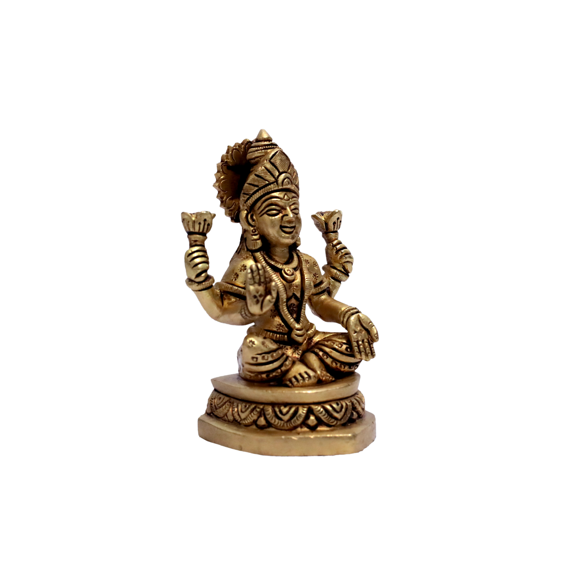 Graceful brass Laxmi Ji idol with a heart-shaped base, perfect for temples and home décor.