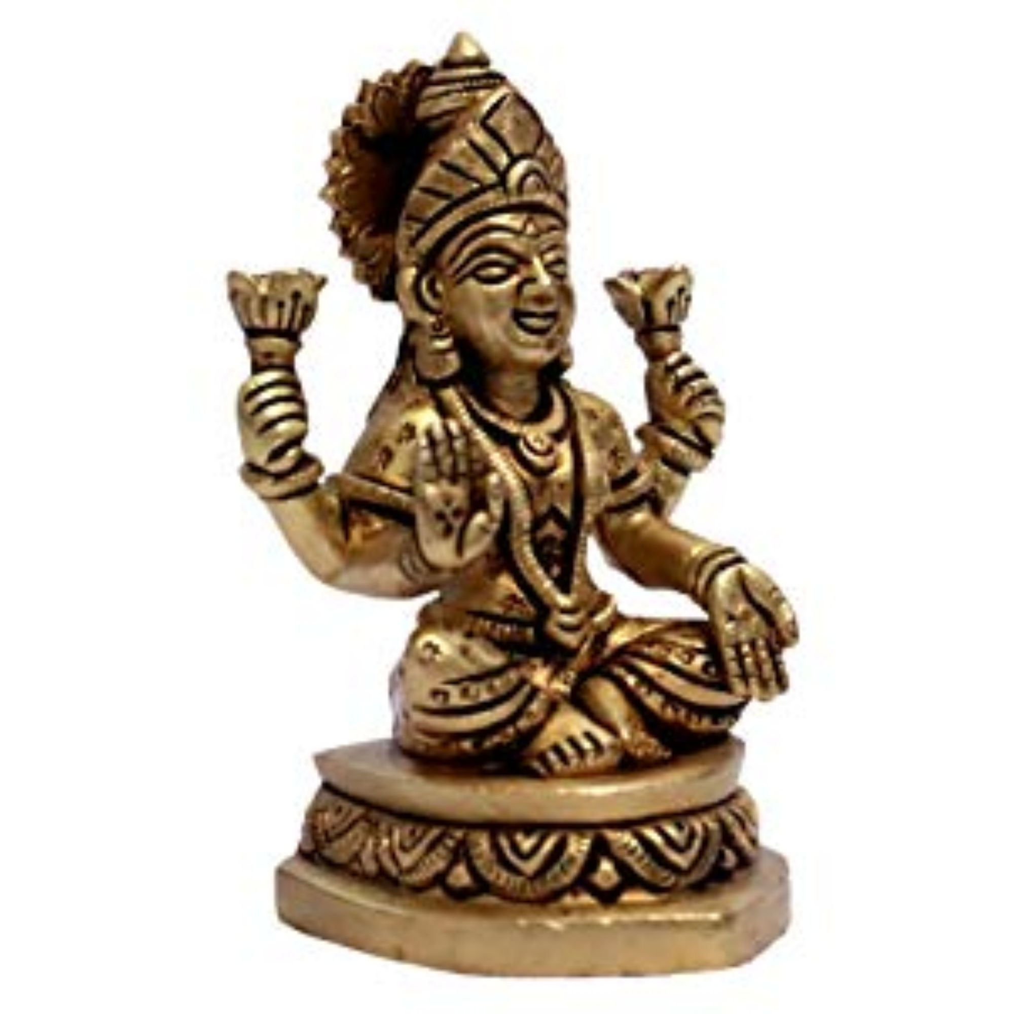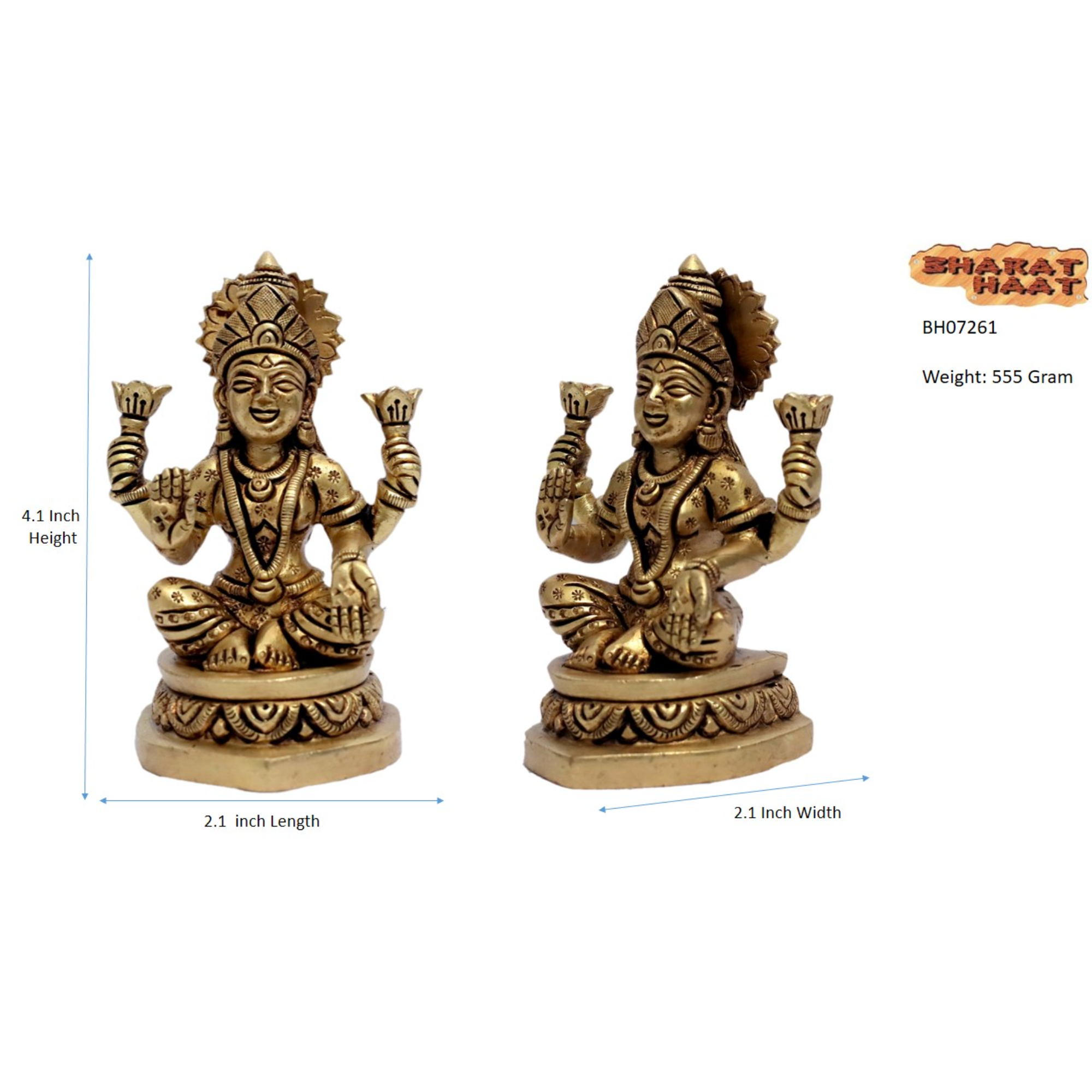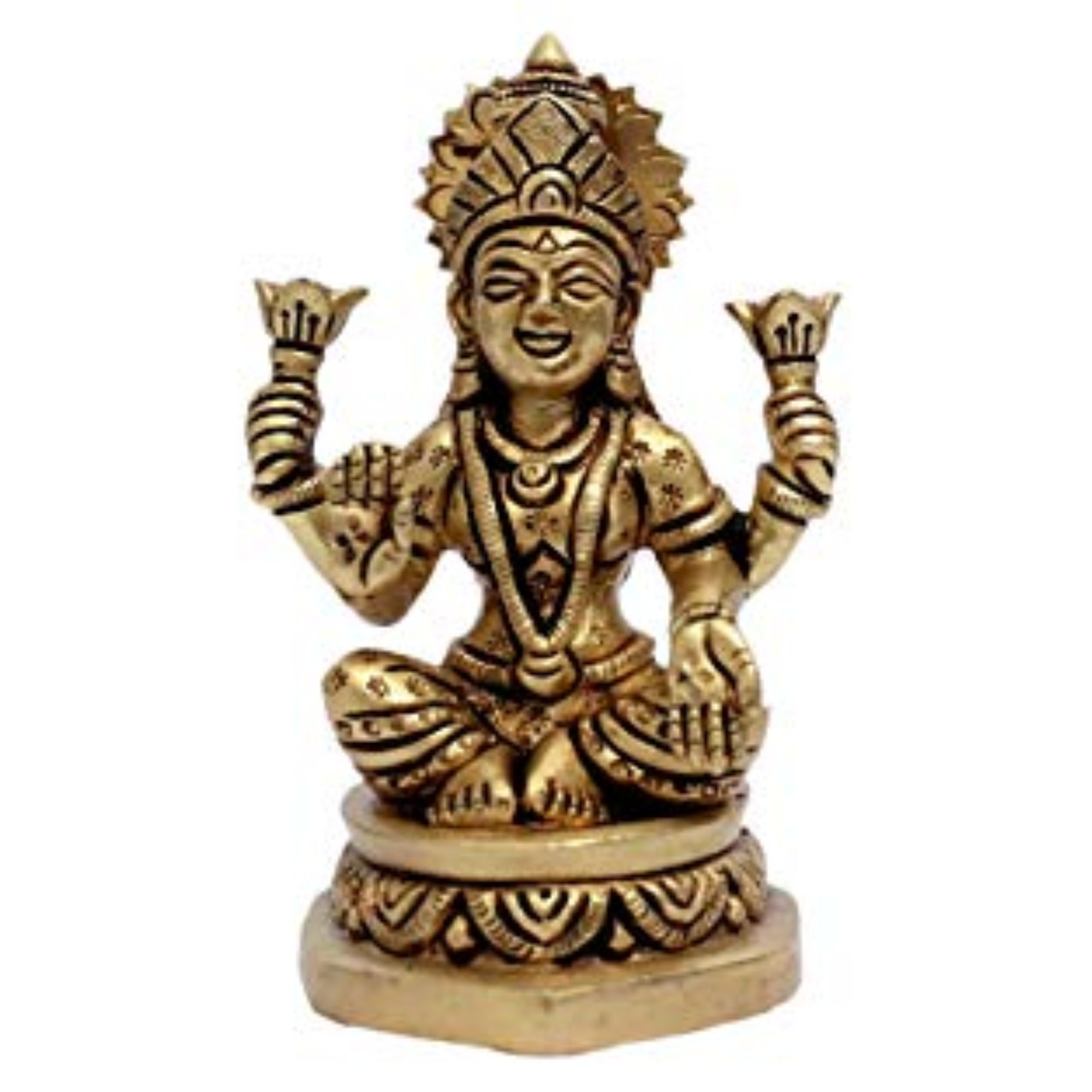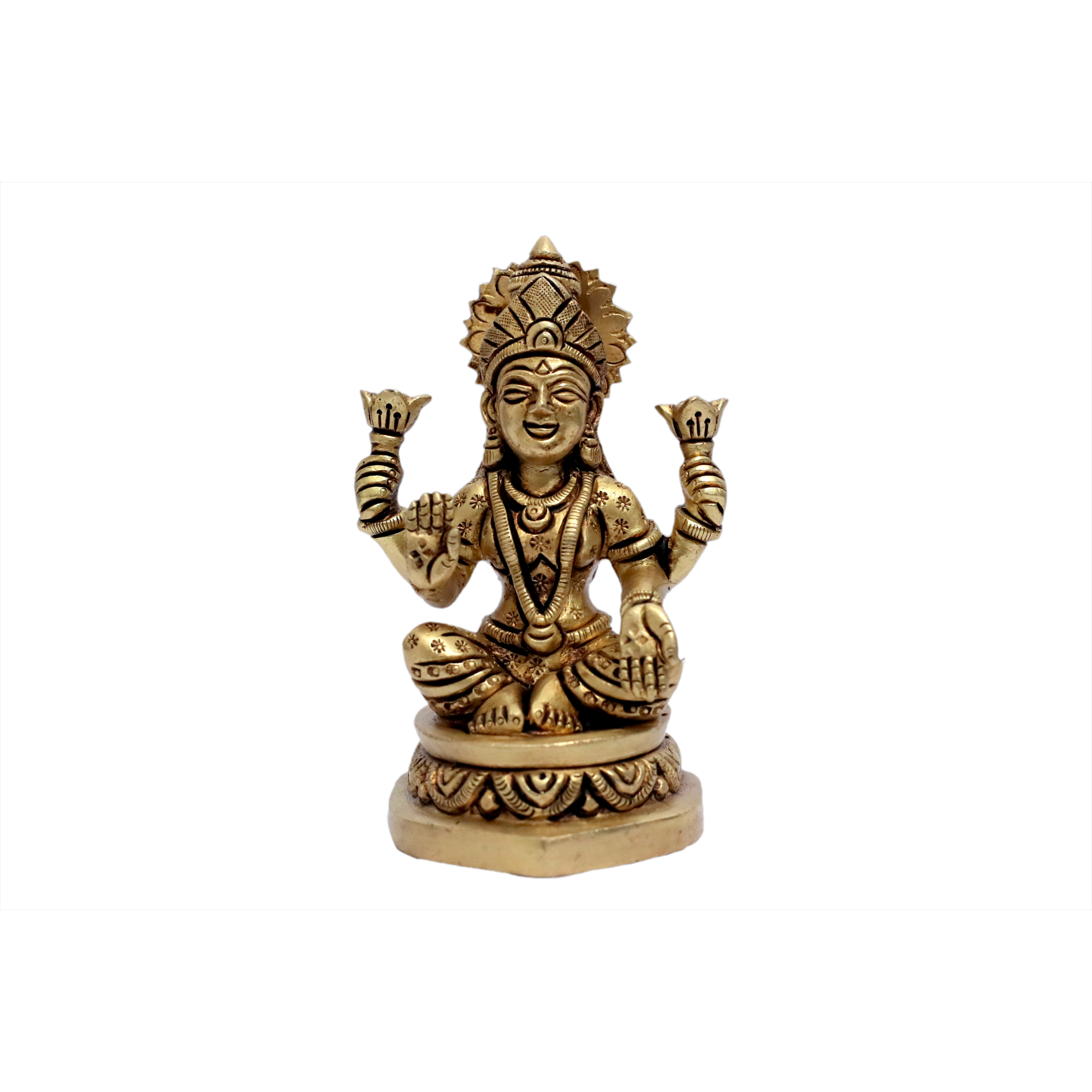 Graceful brass Laxmi Ji idol with a heart-shaped base, perfect for temples and home décor.
