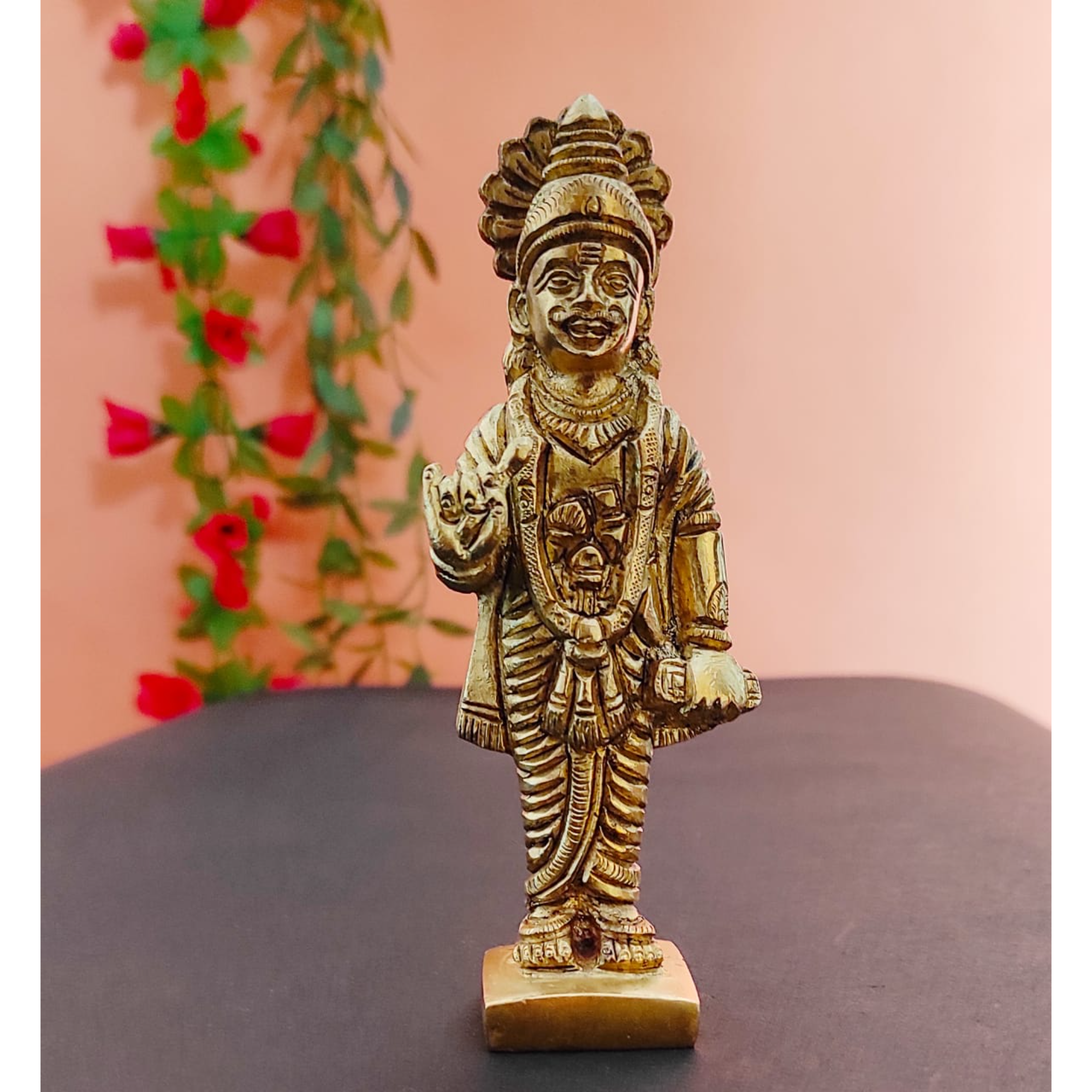 This Brass Chitragupta Idol is a beautifully handcrafted statue made from premium brass. Measuring 1.5 x 0.8 x 5.3 inches and weighing 368 grams, it depicts Lord Chitragupta, known for maintaining the records of human deeds. Ideal for pooja rooms, temples, or as a thoughtful gift.