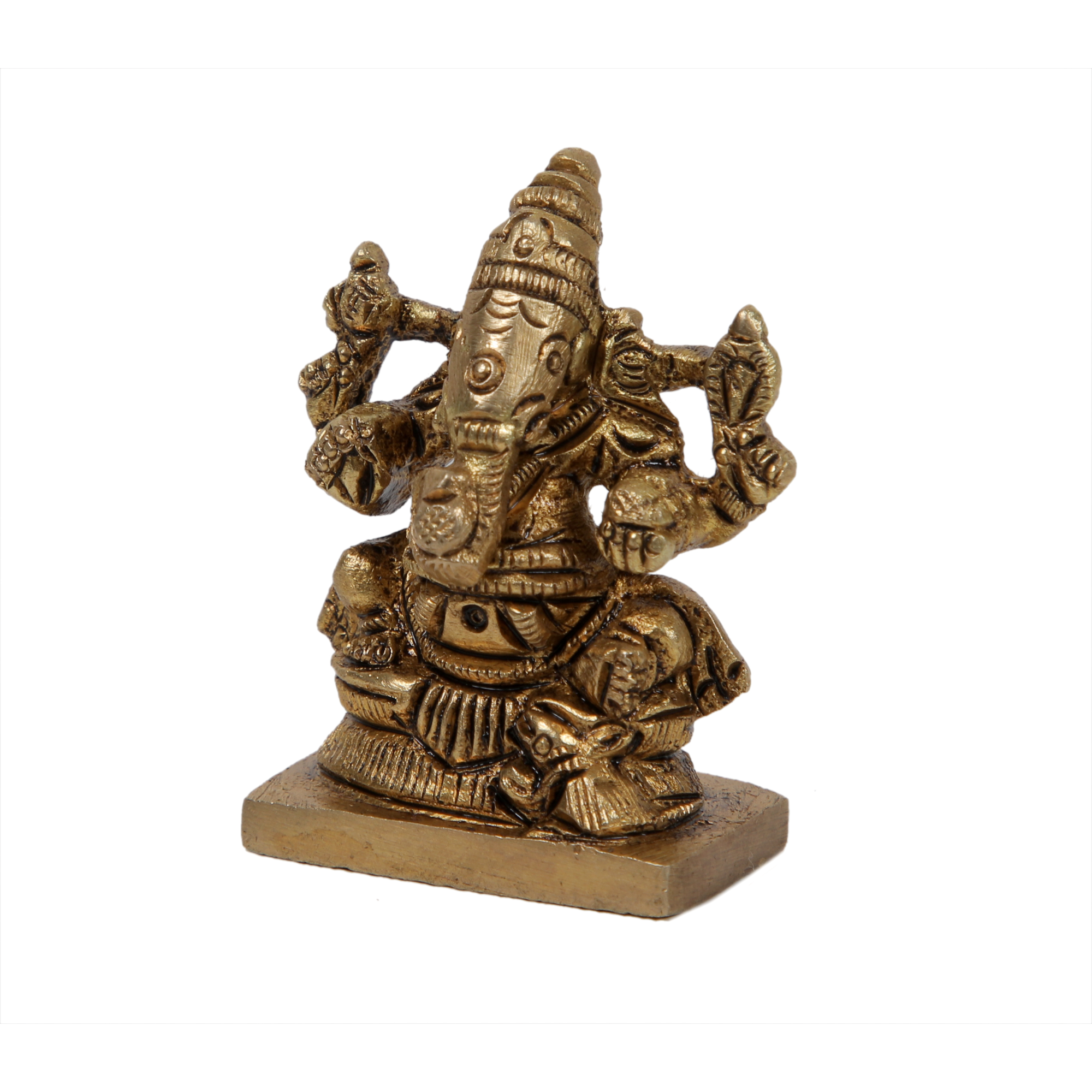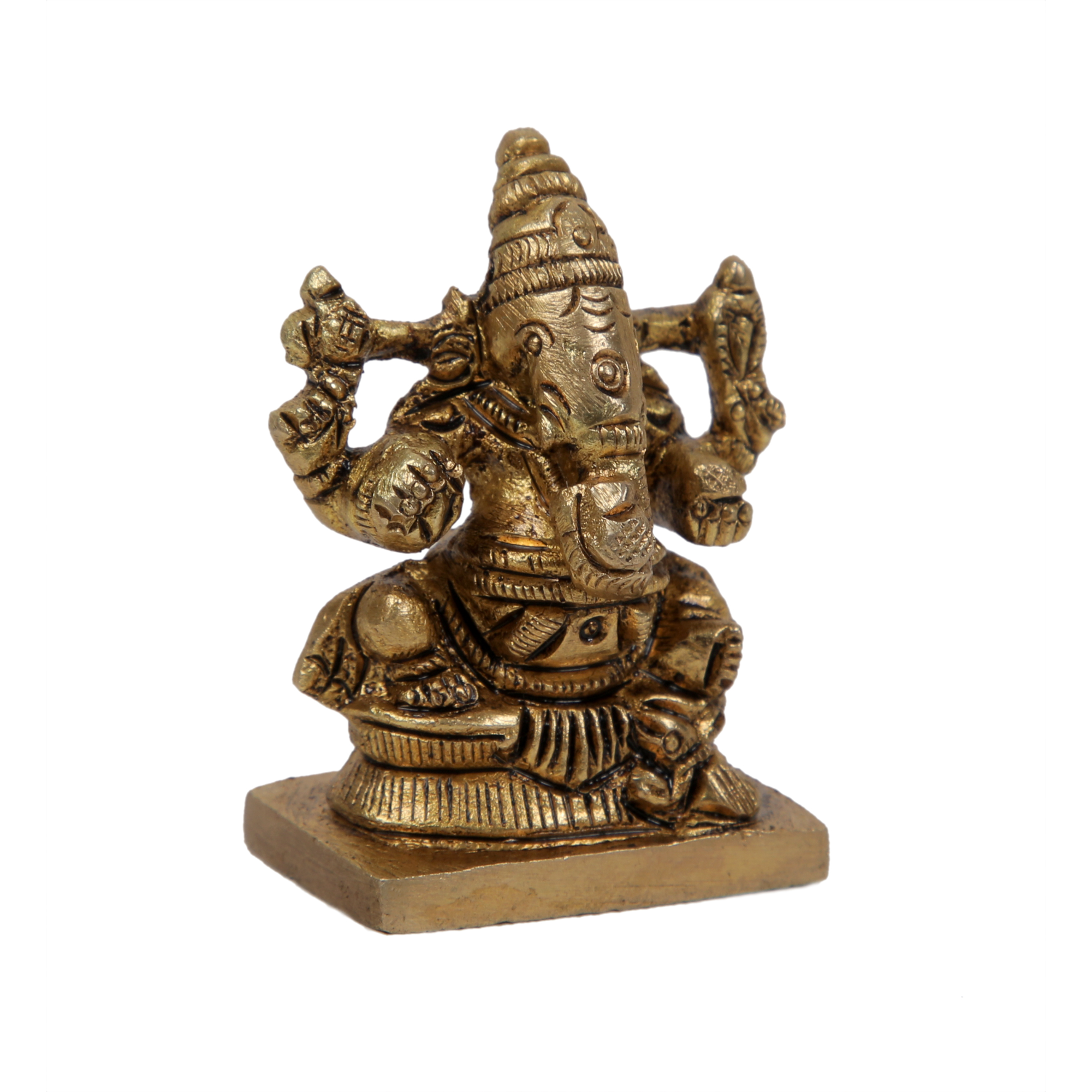 A finely handcrafted Small Brass Ganesha Idol made with solid brass. Measuring 1 x 0.5 x 1.3 inches and weighing 60 grams, it’s designed with intricate detailing for divine presence in your home, office, or car dashboard.