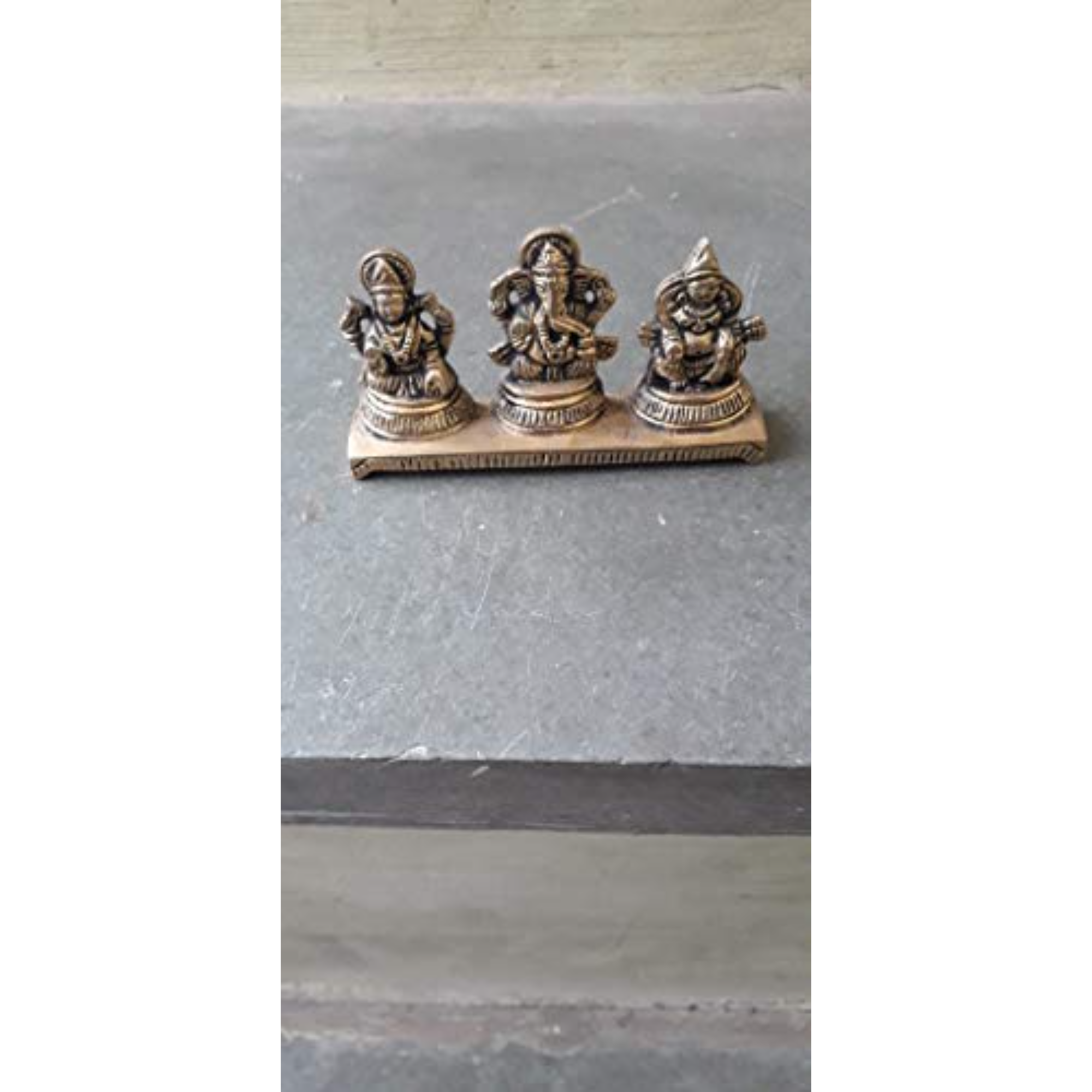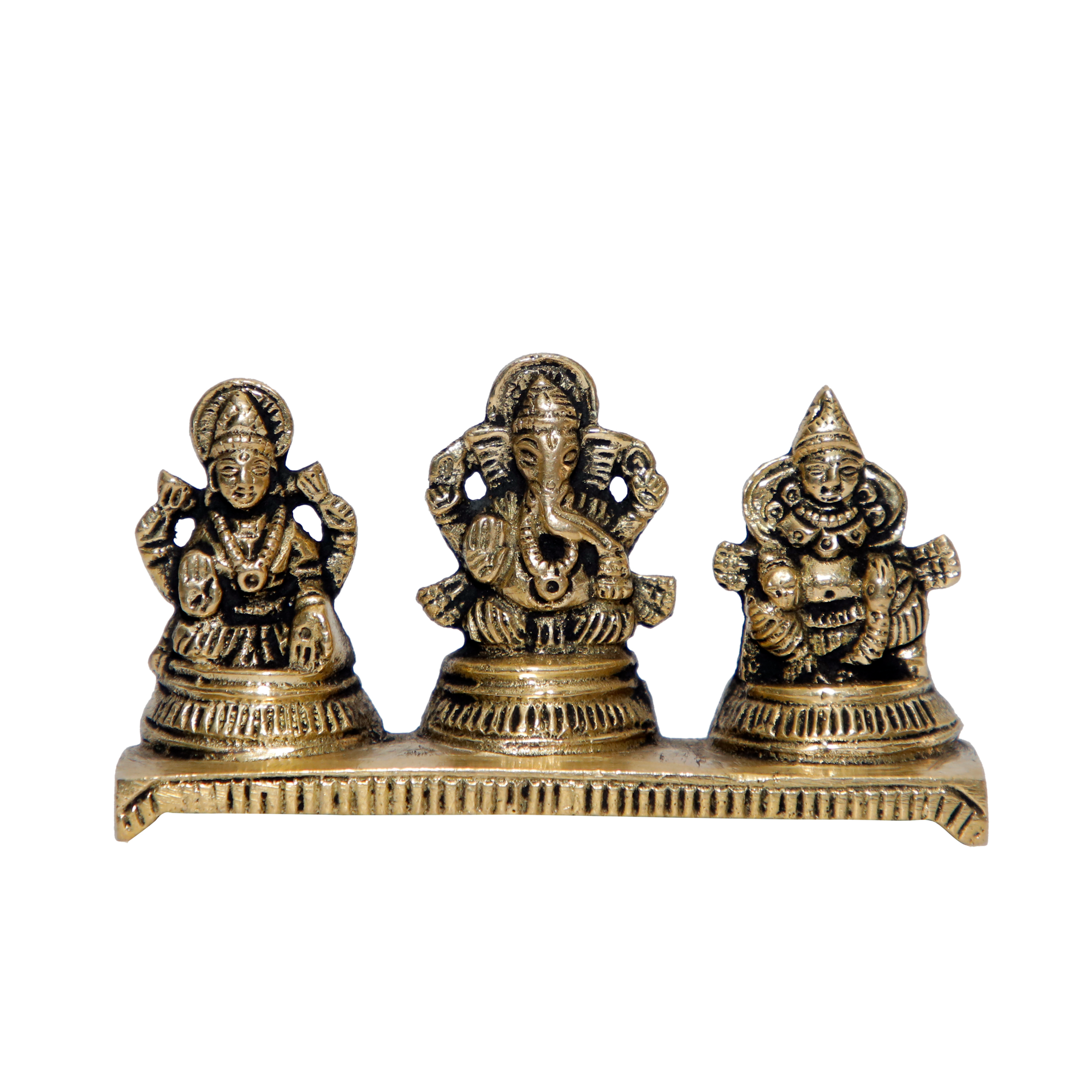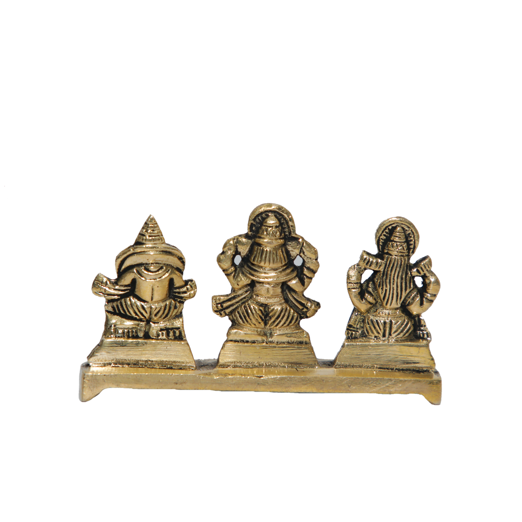 This Brass Ganesh Laxmi Saraswati Idol is a finely handcrafted miniature made from solid brass. Measuring 3.5 x 1 x 1.5 inches and weighing 170 grams, it symbolizes wisdom, prosperity, and knowledge. Ideal for home temples, pooja rooms, or devotional gifting.