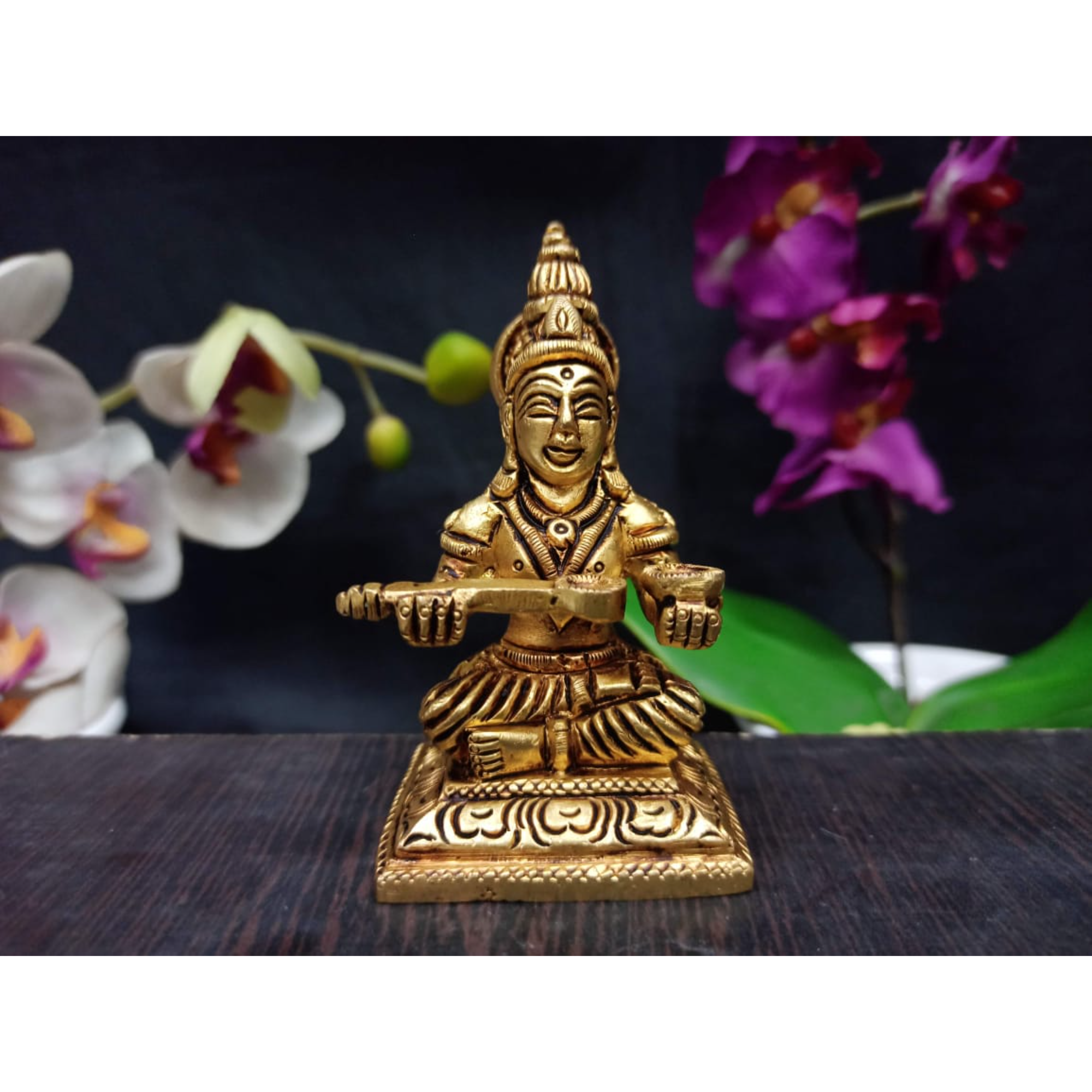 This Small Brass Annapurna Idol is a finely handcrafted statue made from solid brass. Measuring 1.8 x 1.5 x 3 inches and weighing 270 grams, it depicts Goddess Annapurna, the symbol of abundance and nourishment. Ideal for home temples, pooja rooms, or gifting.
