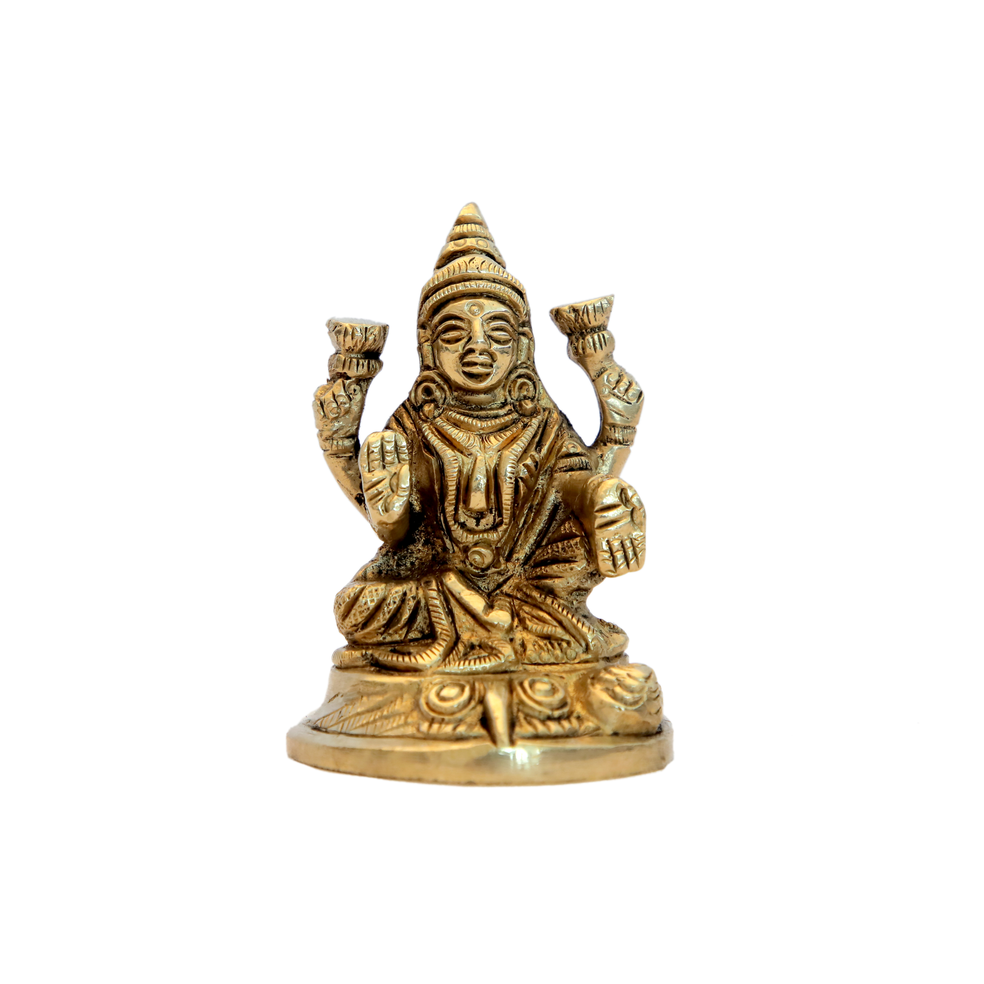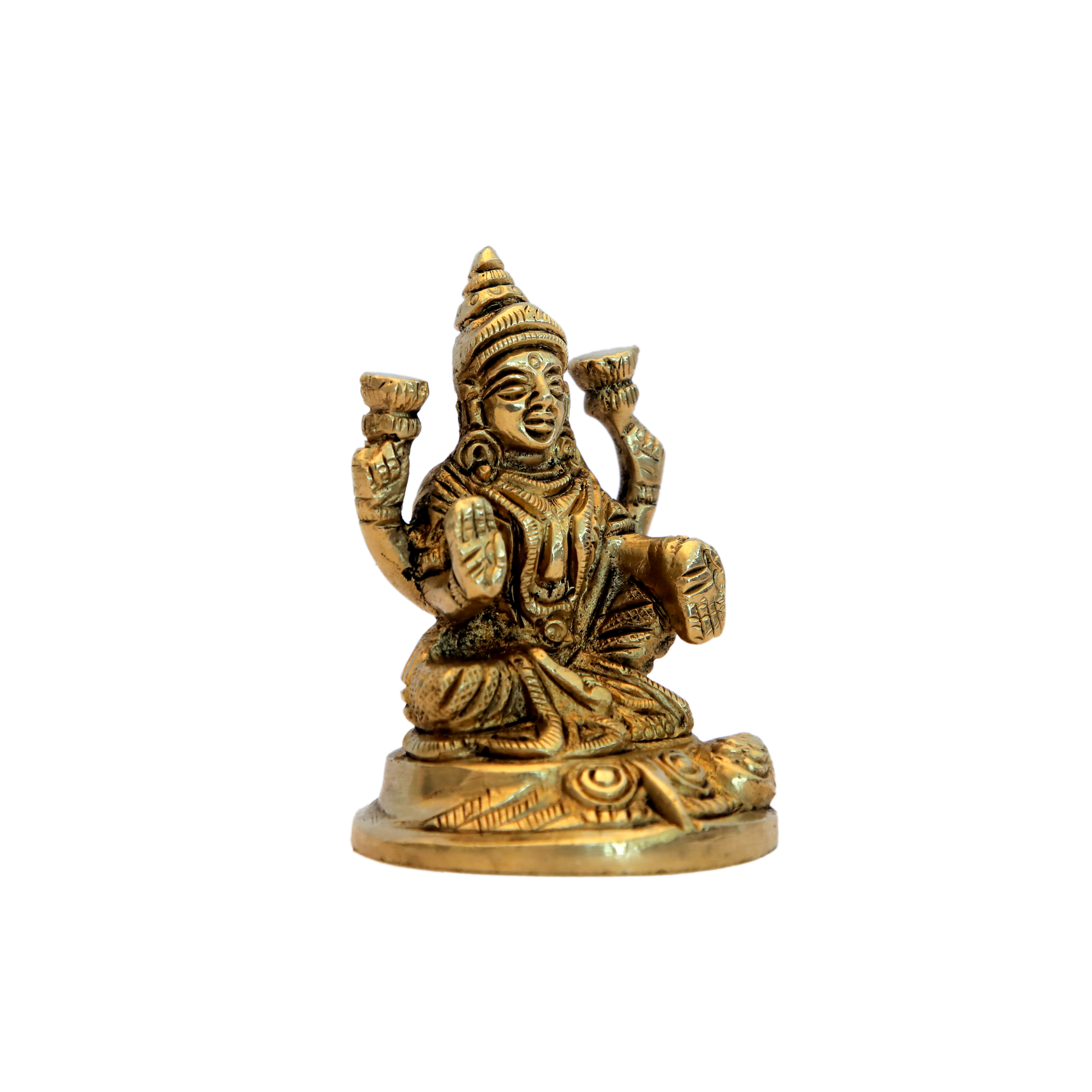 This Small Brass Lakshmi Ji Idol is a finely handcrafted statue made from solid brass. Measuring 2 x 2 x 3 inches and weighing 250 grams, it represents Goddess Lakshmi, the goddess of wealth and prosperity. Ideal for home temples, pooja rooms, or gifting.
