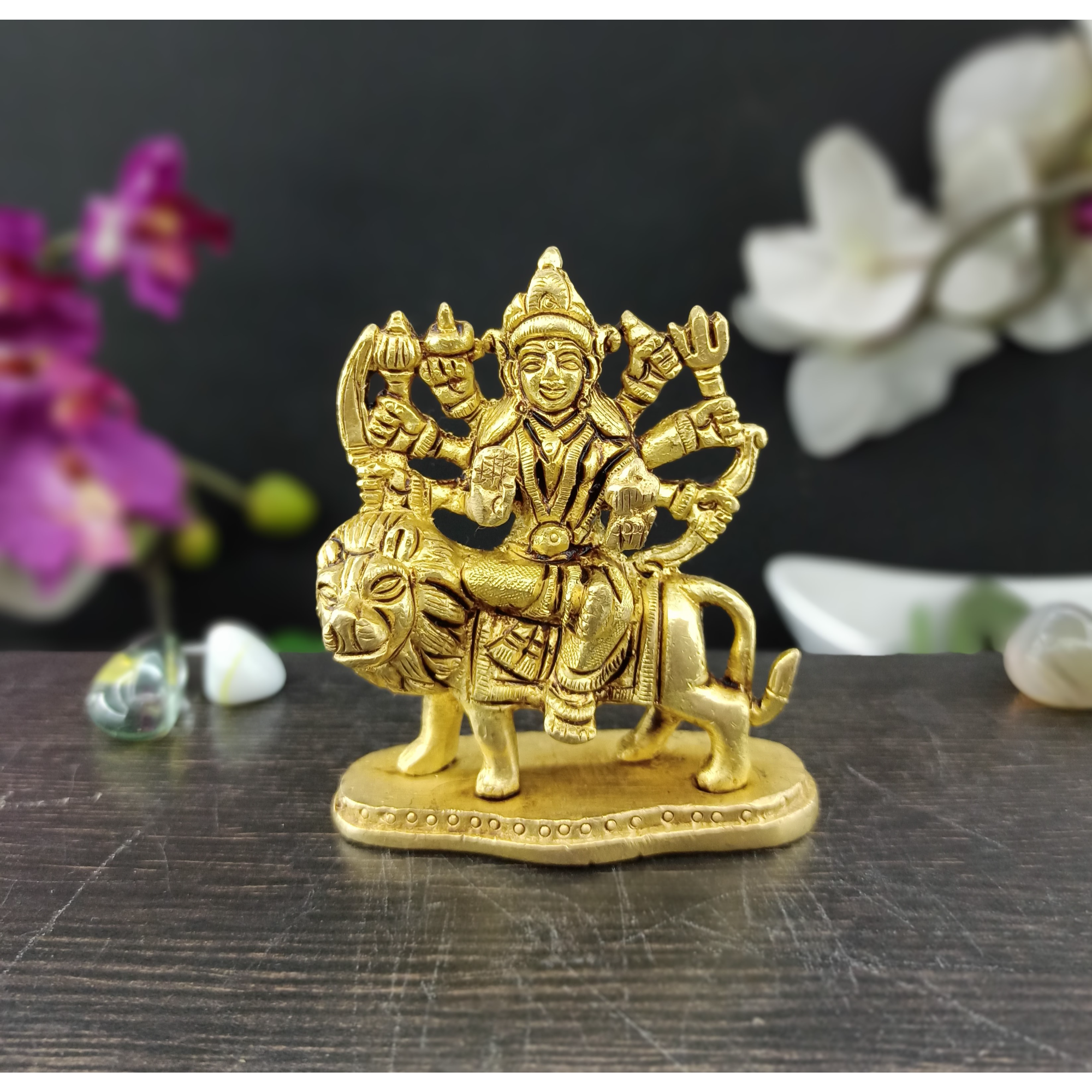 This Small Brass Ambe Maa Idol with Base is a finely handcrafted statue made from solid brass. Measuring 2.8 x 1.3 x 3.2 inches and weighing 340 grams, it represents Goddess Ambe Maa in a compact design suitable for home temples, pooja rooms, or gifting.