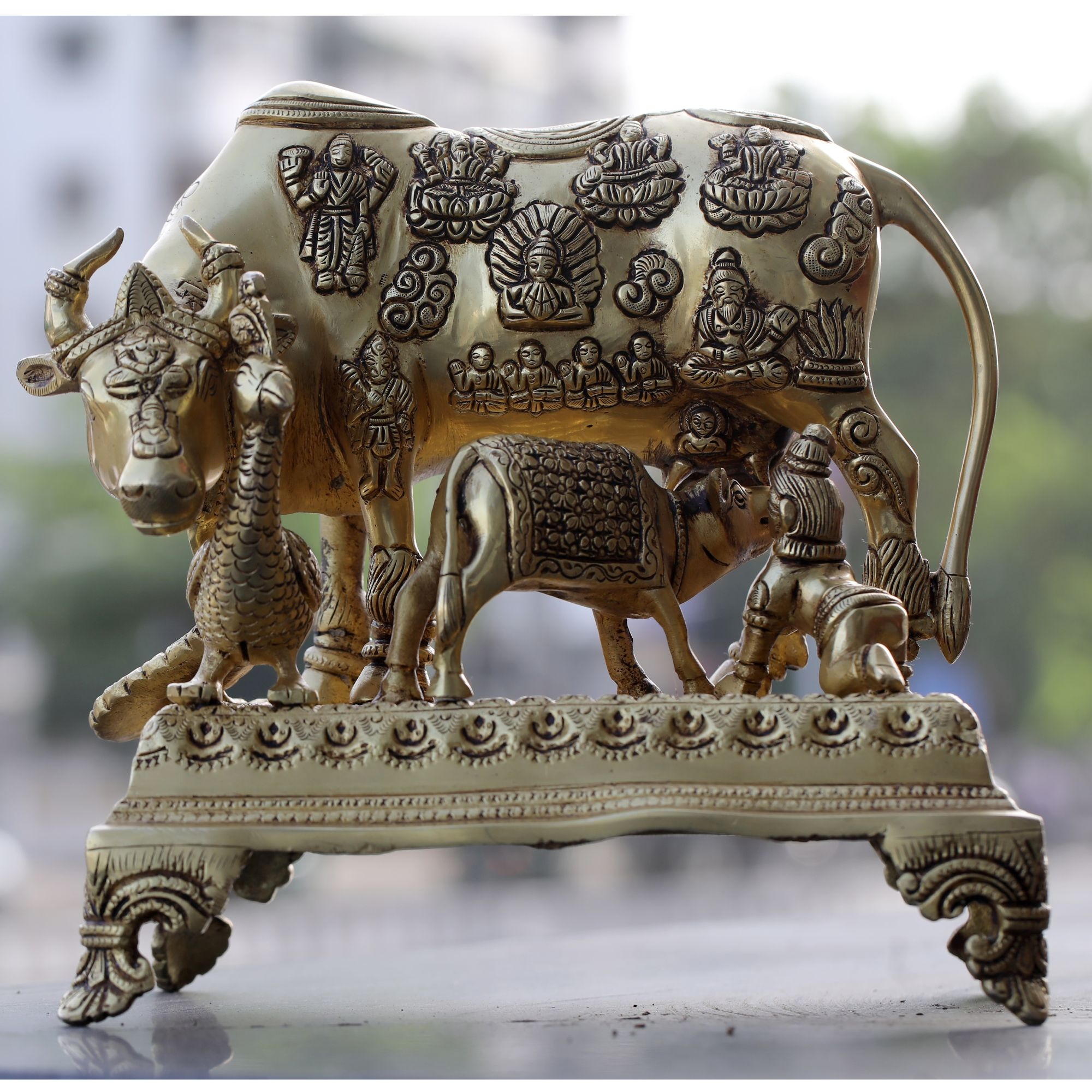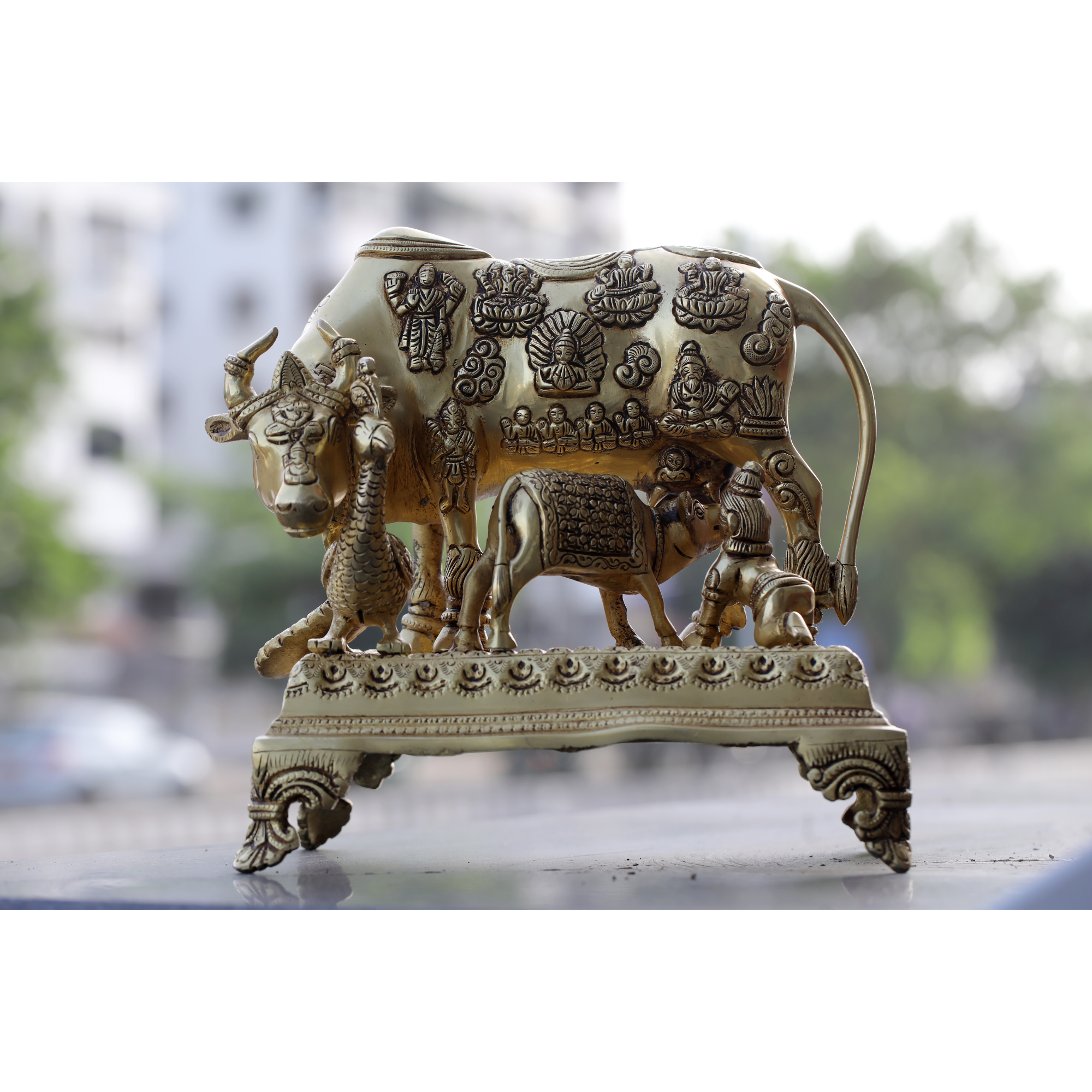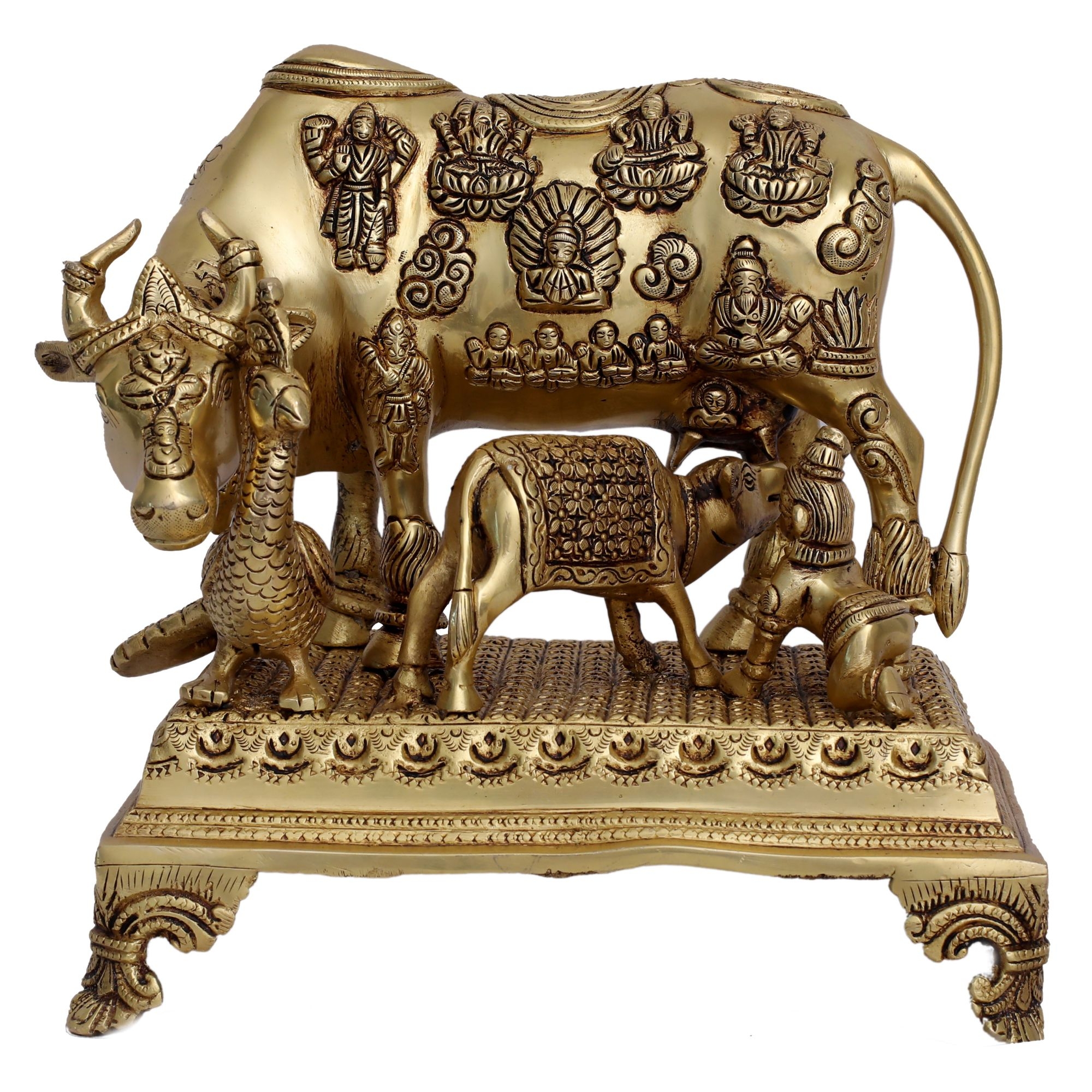 Brass Big Cow Calf Peacock Krishna Lalo Showpiece KBH07323