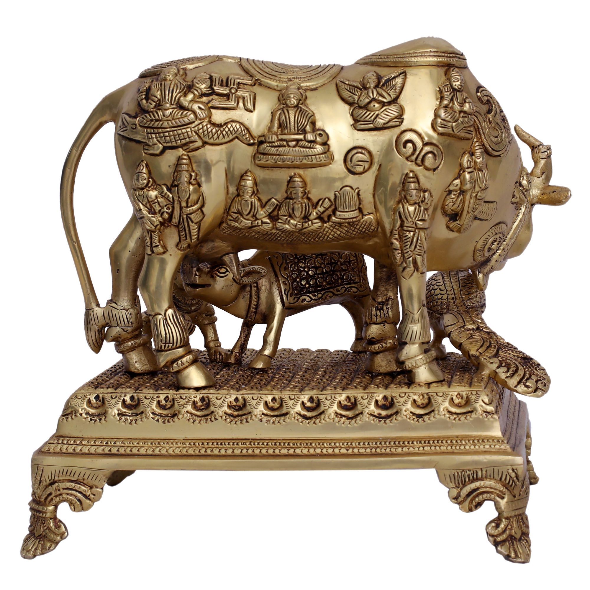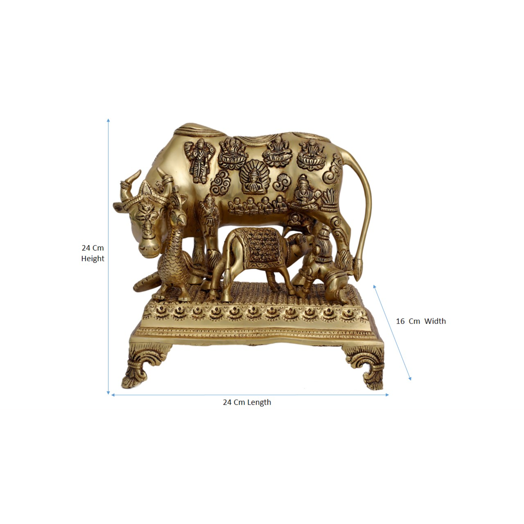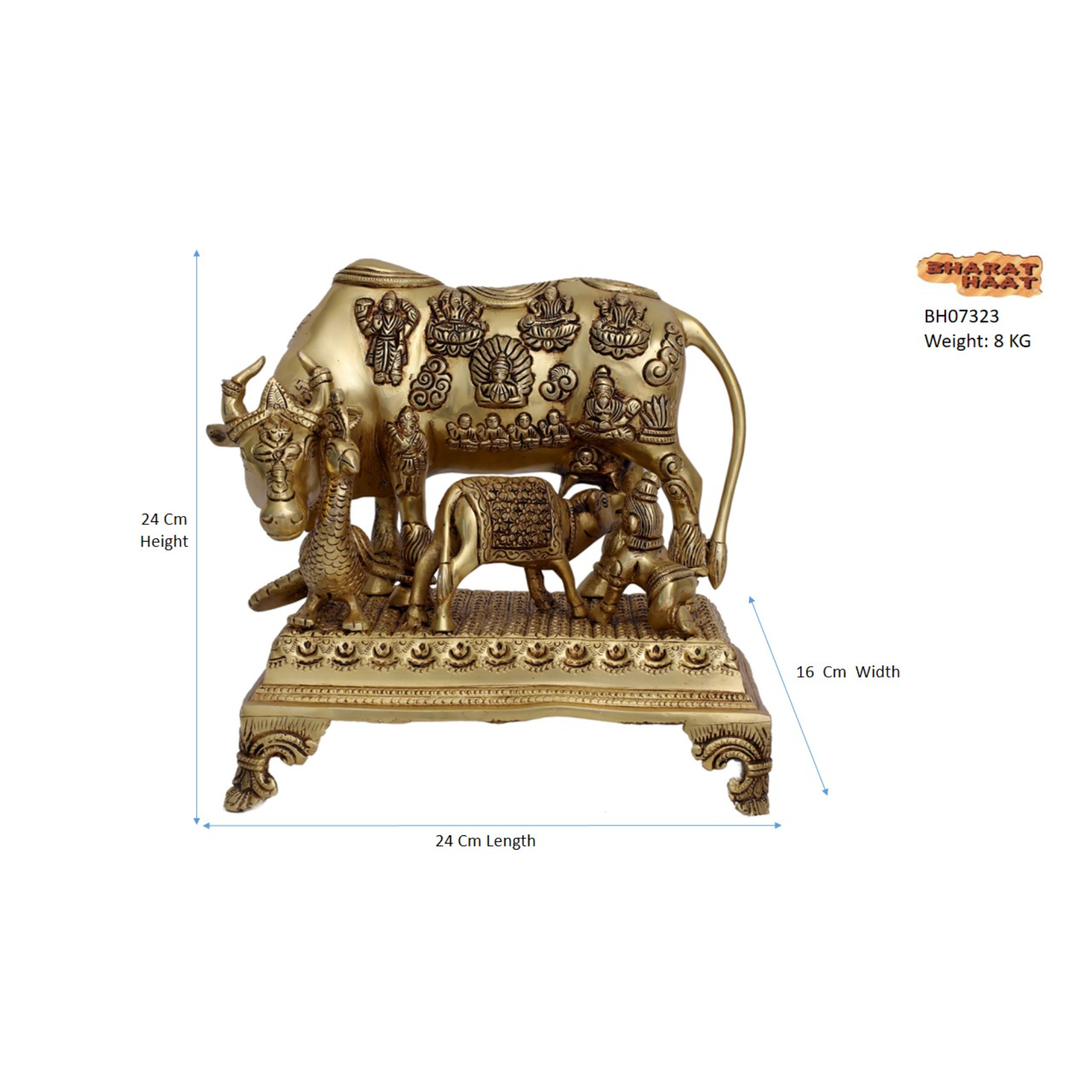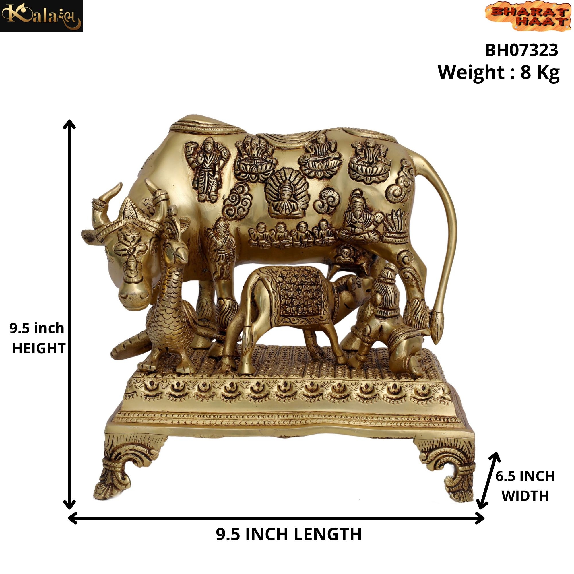 Brass Big Cow Calf Peacock Krishna Lalo Showpiece KBH07323