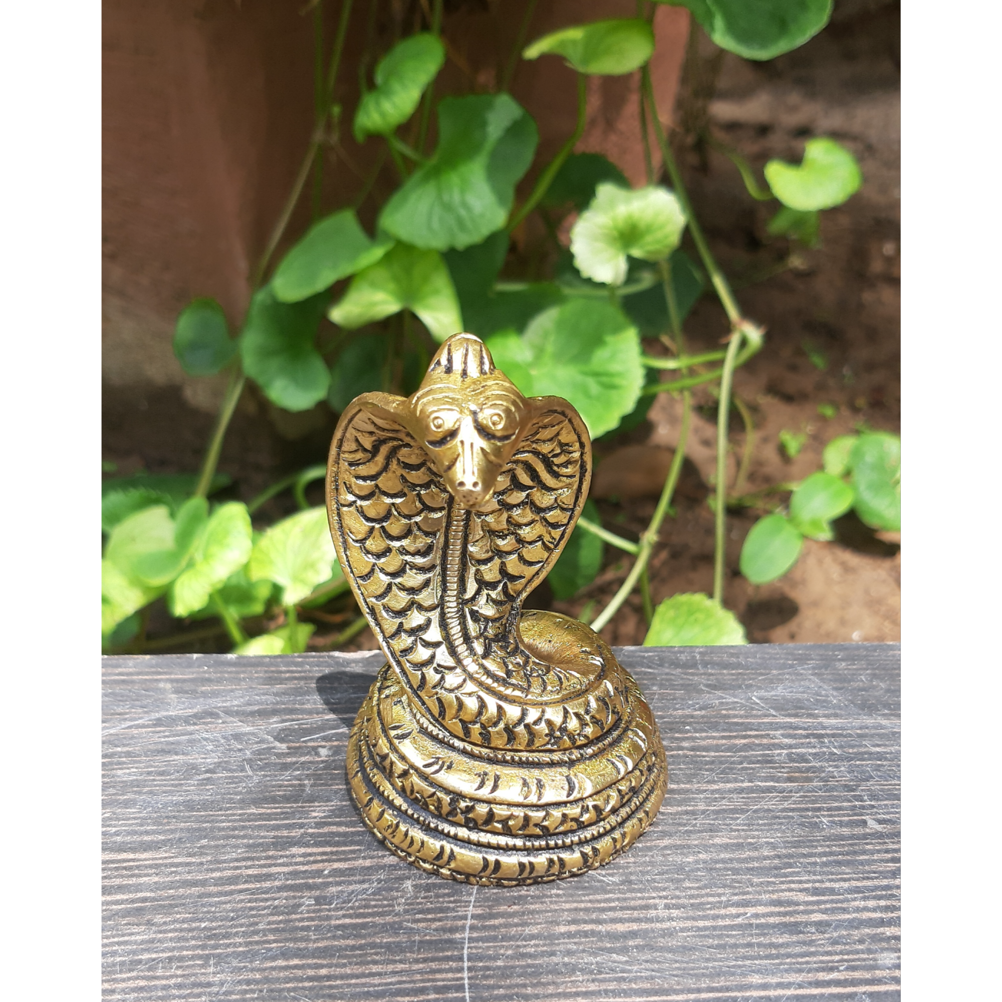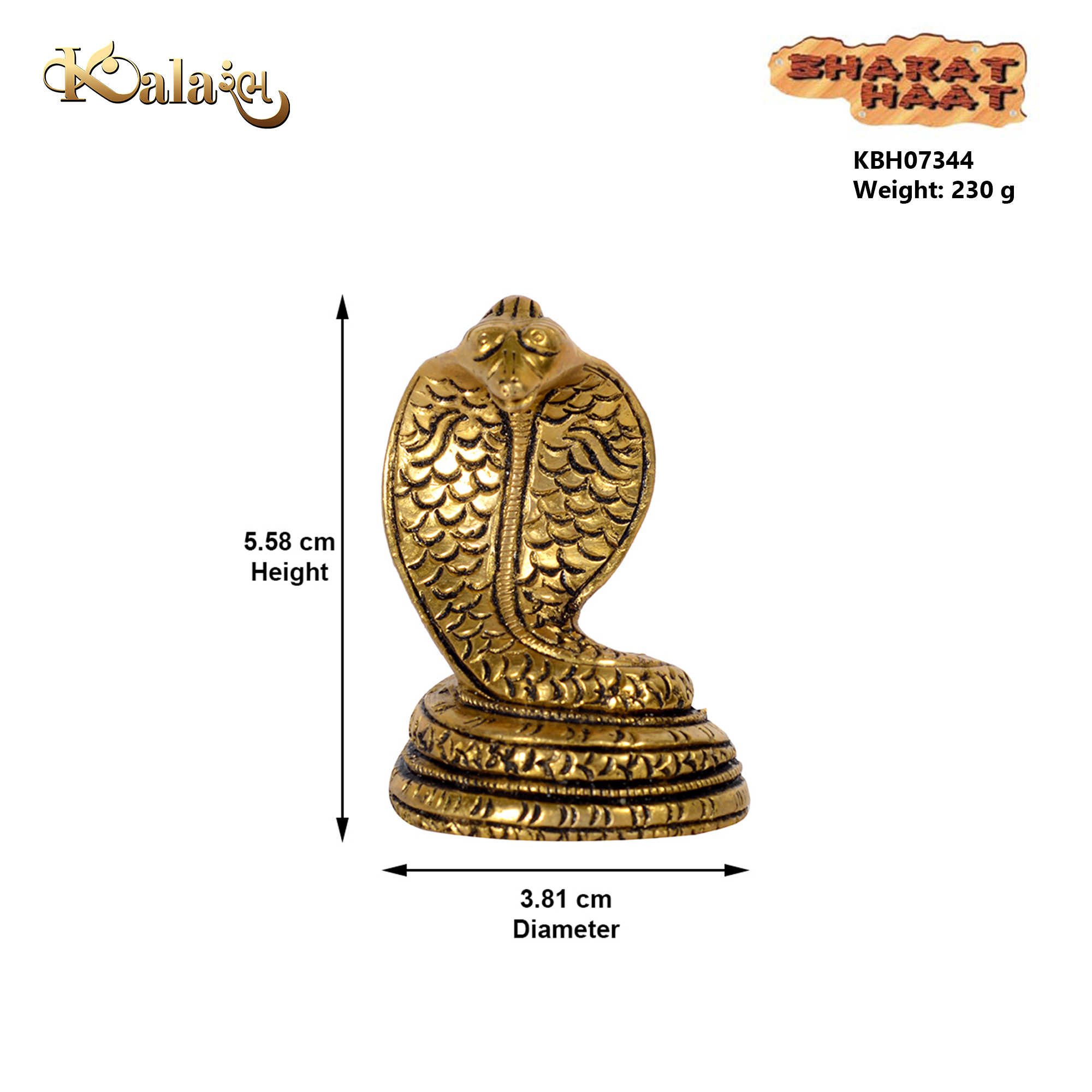 Brass Snake Naag with dimensions 1.5 x 1.5 x 2.2 Inch and weight 150 Gram. A compact brass snake statue designed for pooja rooms and spiritual decoration.