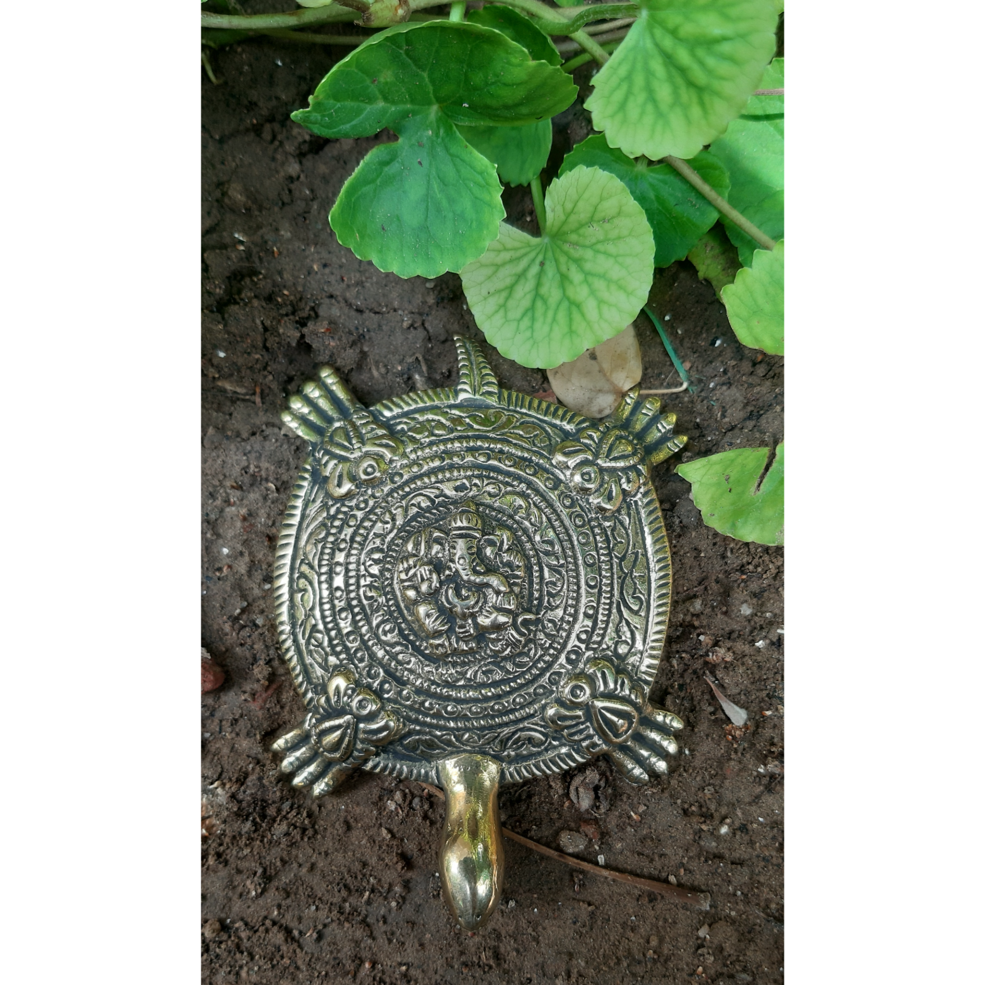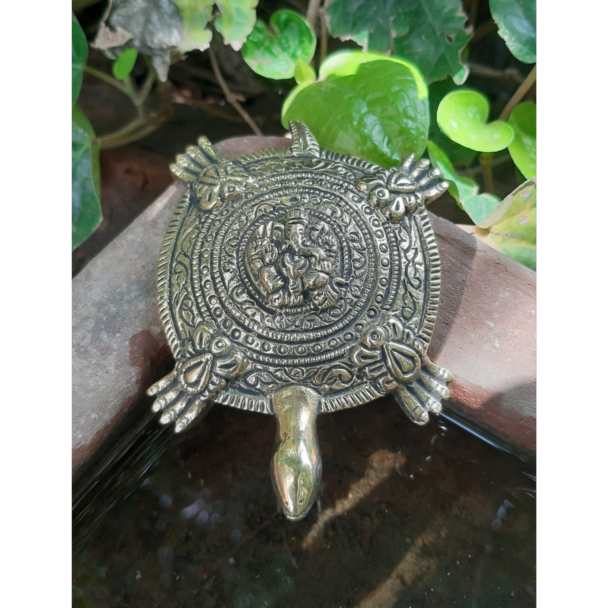 Detailed Ganesh carving on tortoise design