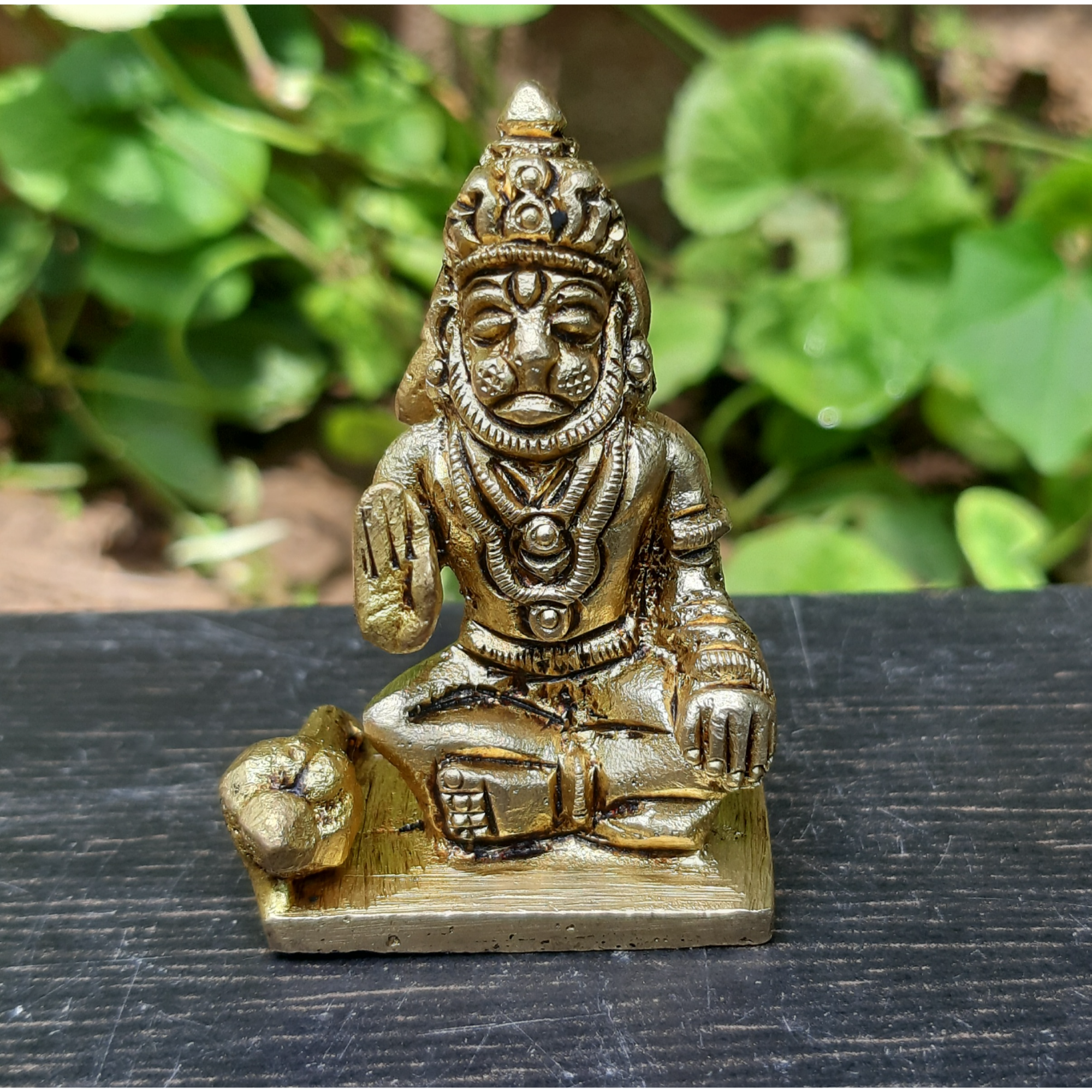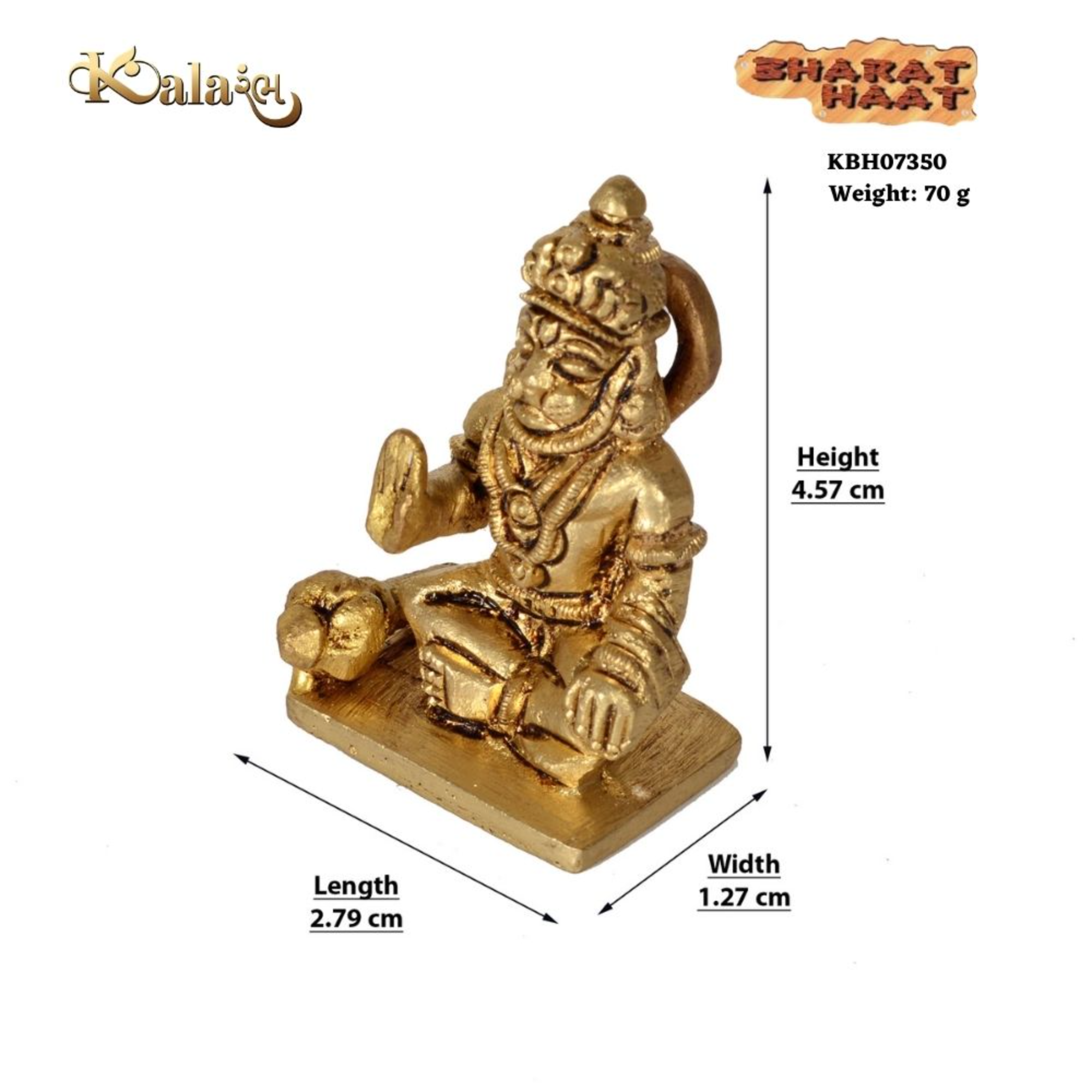 Brass Small Hanuman Idol with dimensions 1.1 x 0.5 x 1.8 Inch and weight 70 Gram. A compact and finely detailed brass statue perfect for home temples and pooja rooms.