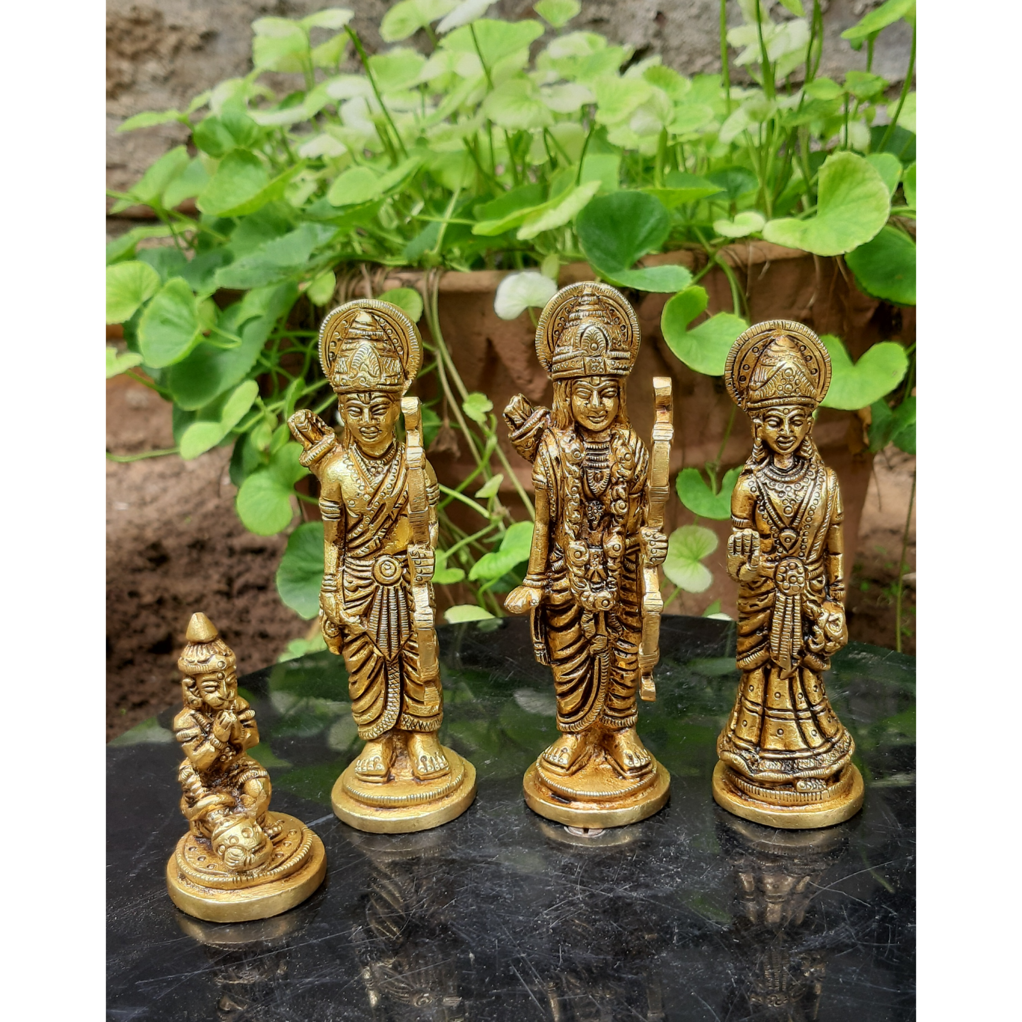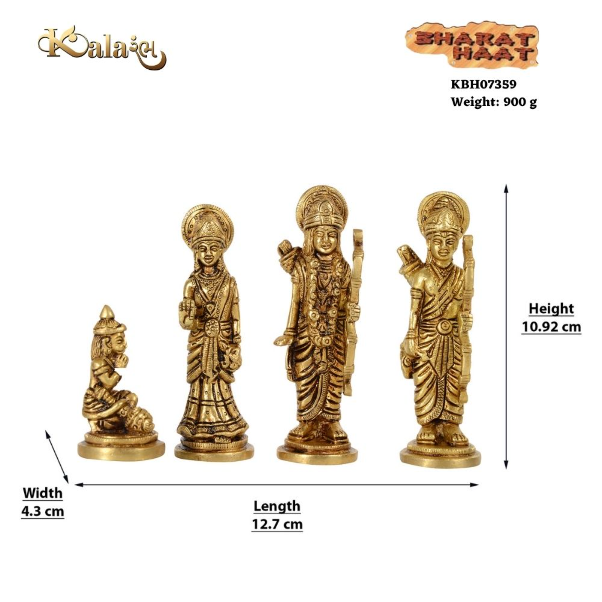 Brass RamDarbar Set Idol with dimensions 5 x 1 x 4.3 Inch and weight 900 Gram. A finely detailed brass statue featuring Lord Ram, Sita, and Lakshman, ideal for spiritual and decorative use.