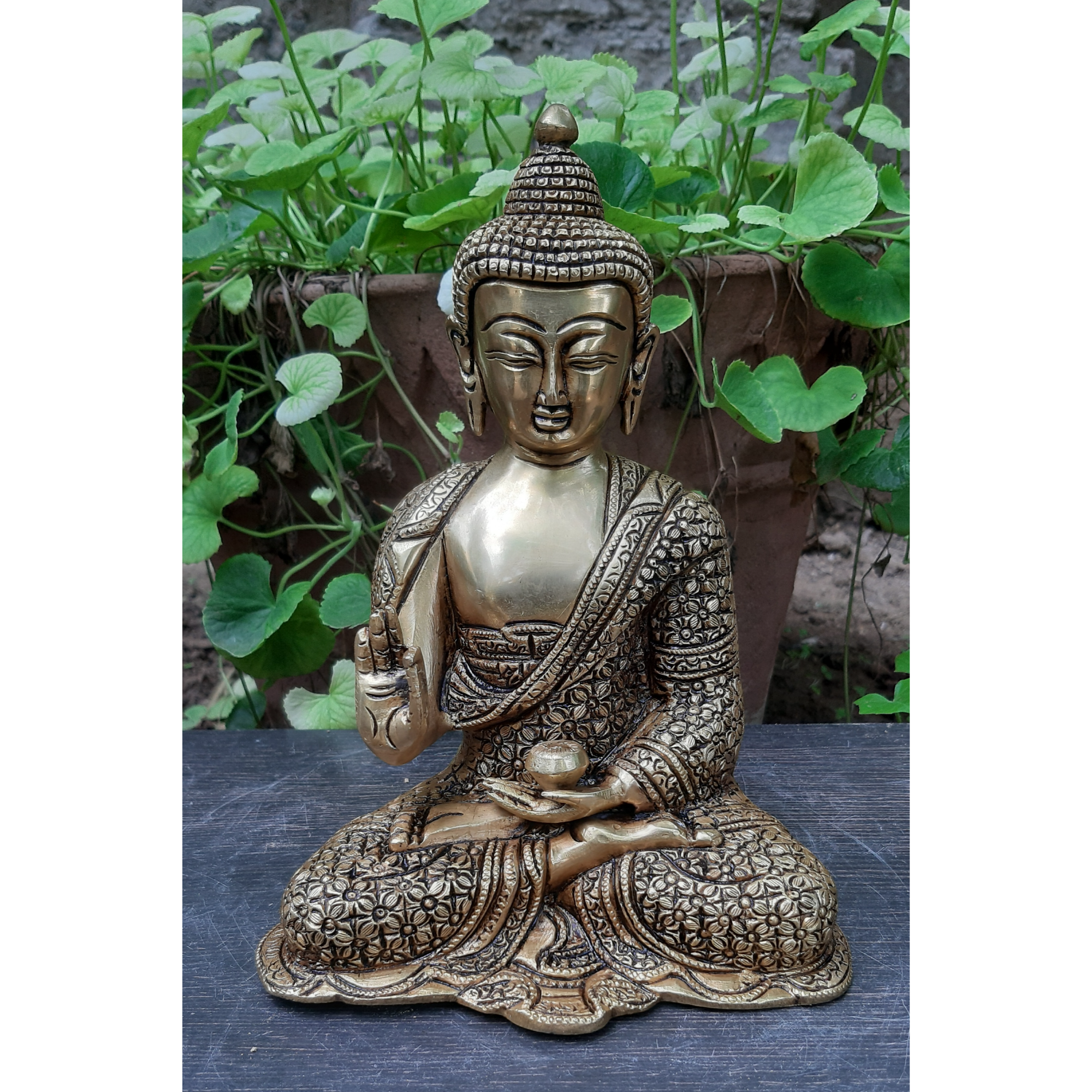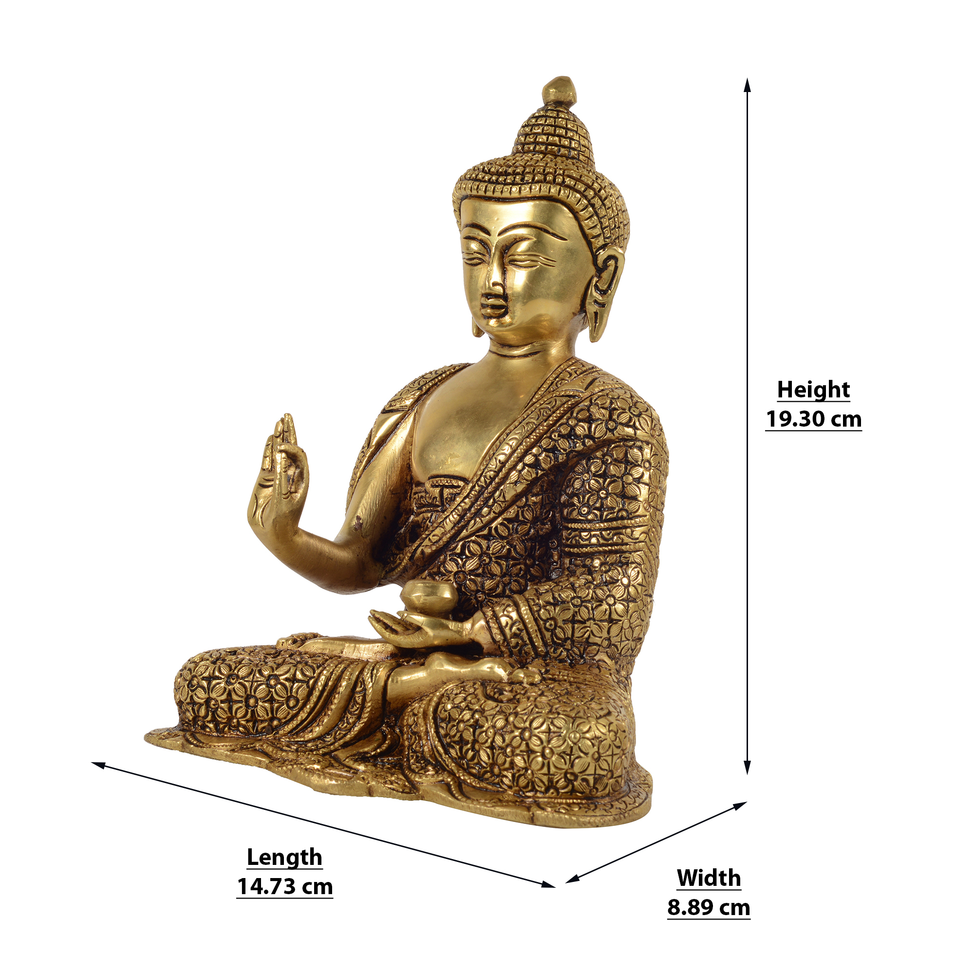 Brass Buddha Idol with dimensions 5.8 x 3.5 x 7.6 Inch and weight 2.05 Kg. A premium-quality meditation Buddha statue designed to bring peace, harmony, and elegance to any space.