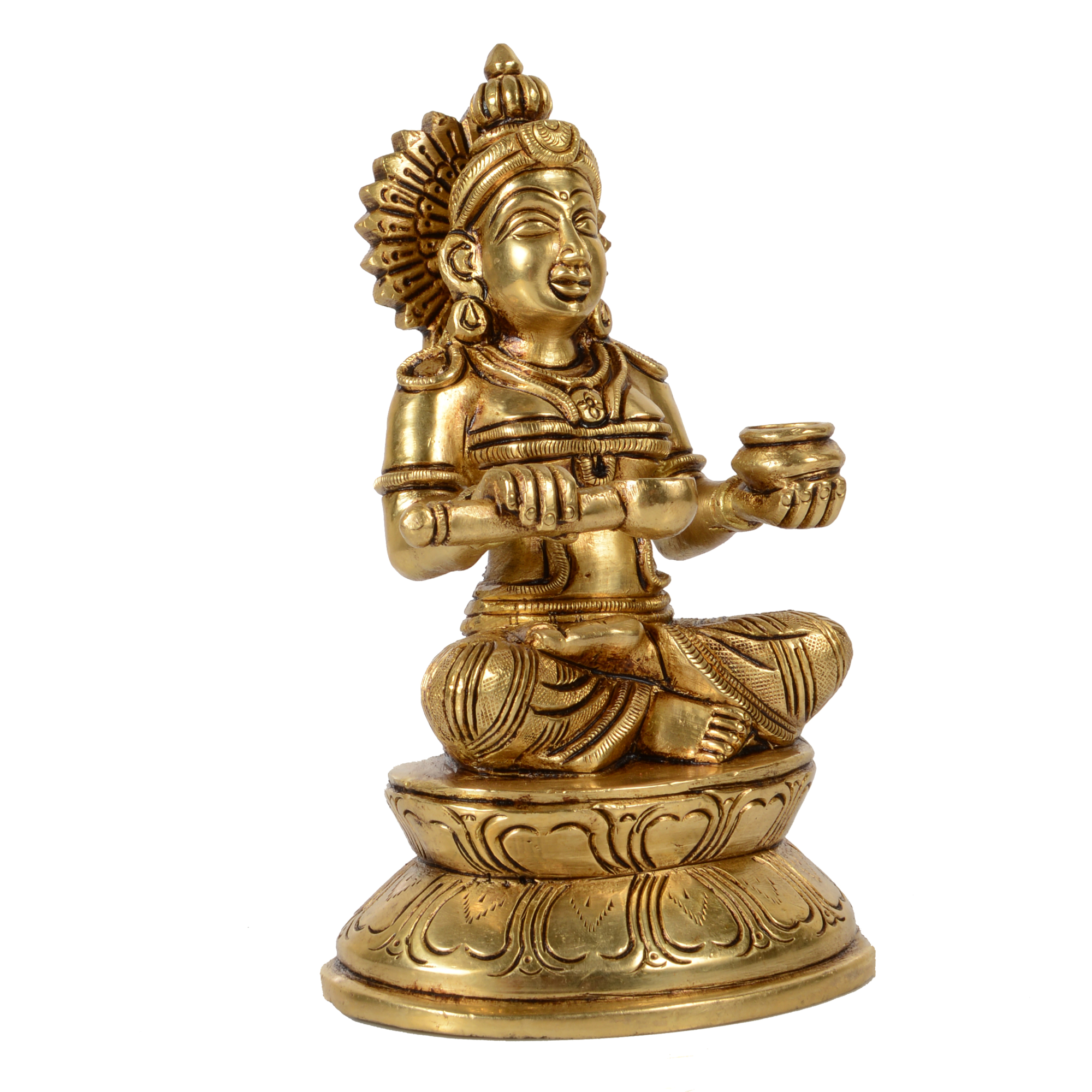 Brass Annapurna Idol with dimensions 4 x 3 x 6 Inch and weight 1.3 Kg. A beautifully carved statue of Maa Annapurna, ideal for puja rooms and home décor.