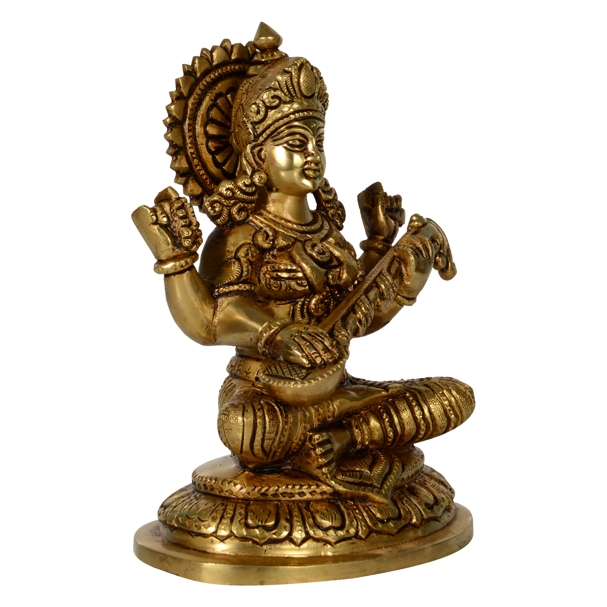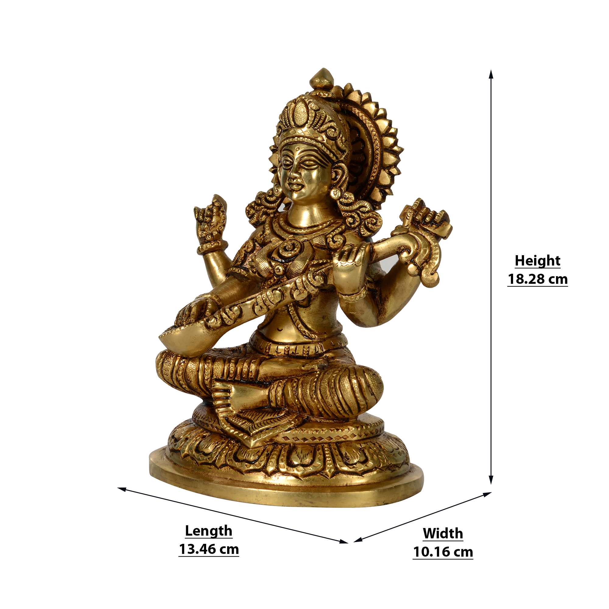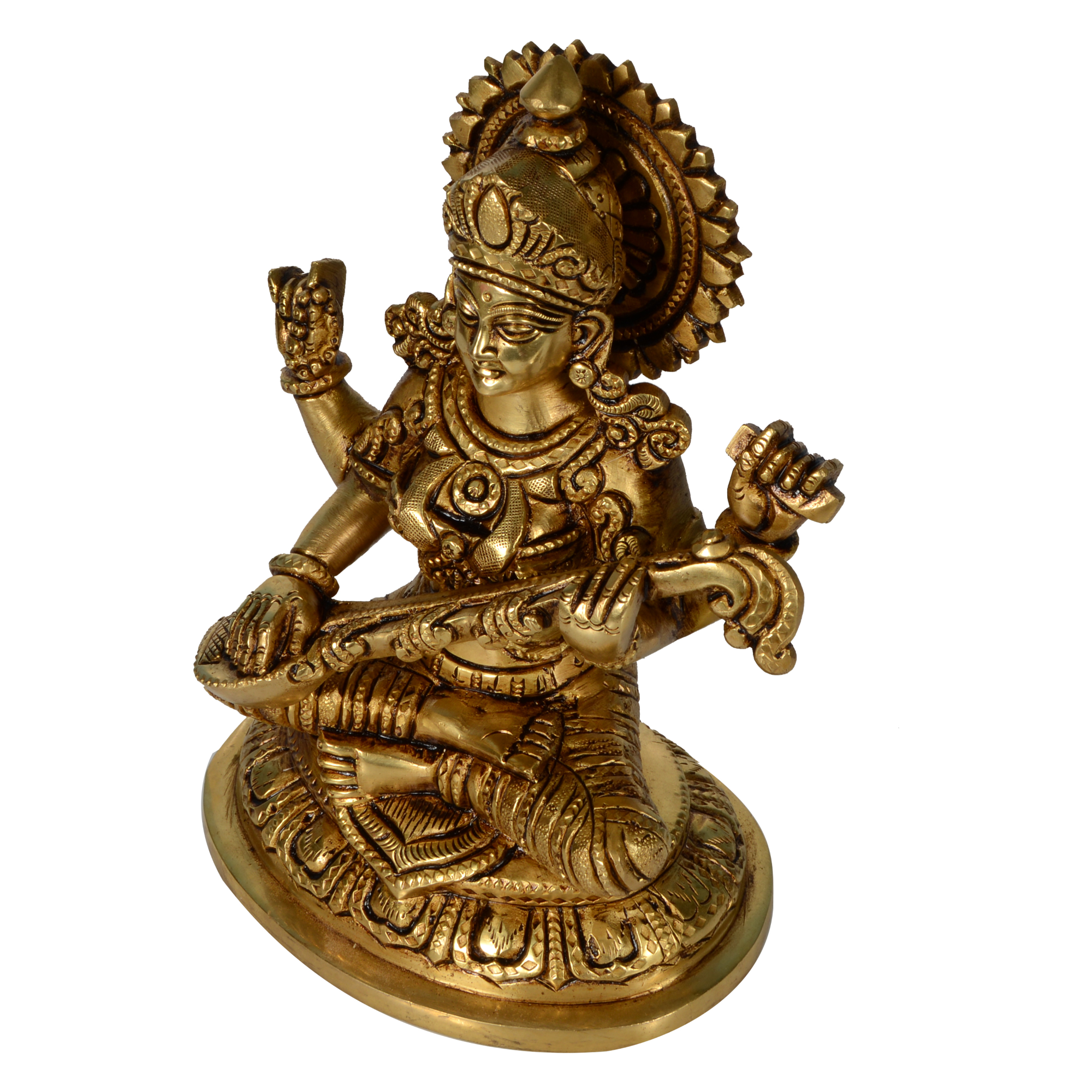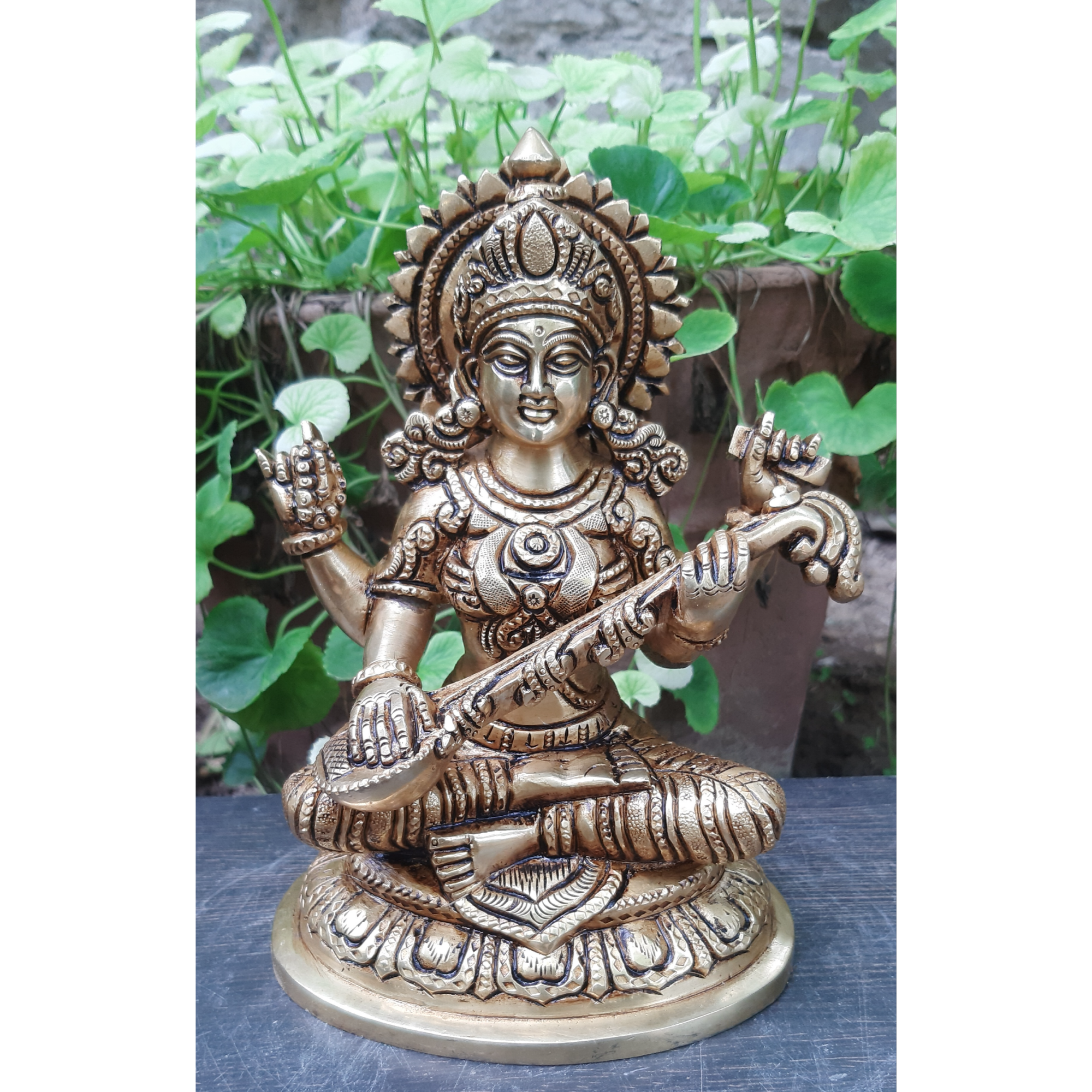 Design: Handcrafted Pure Brass Idol of Goddess Saraswati, the deity of wisdom, knowledge, arts, and learning