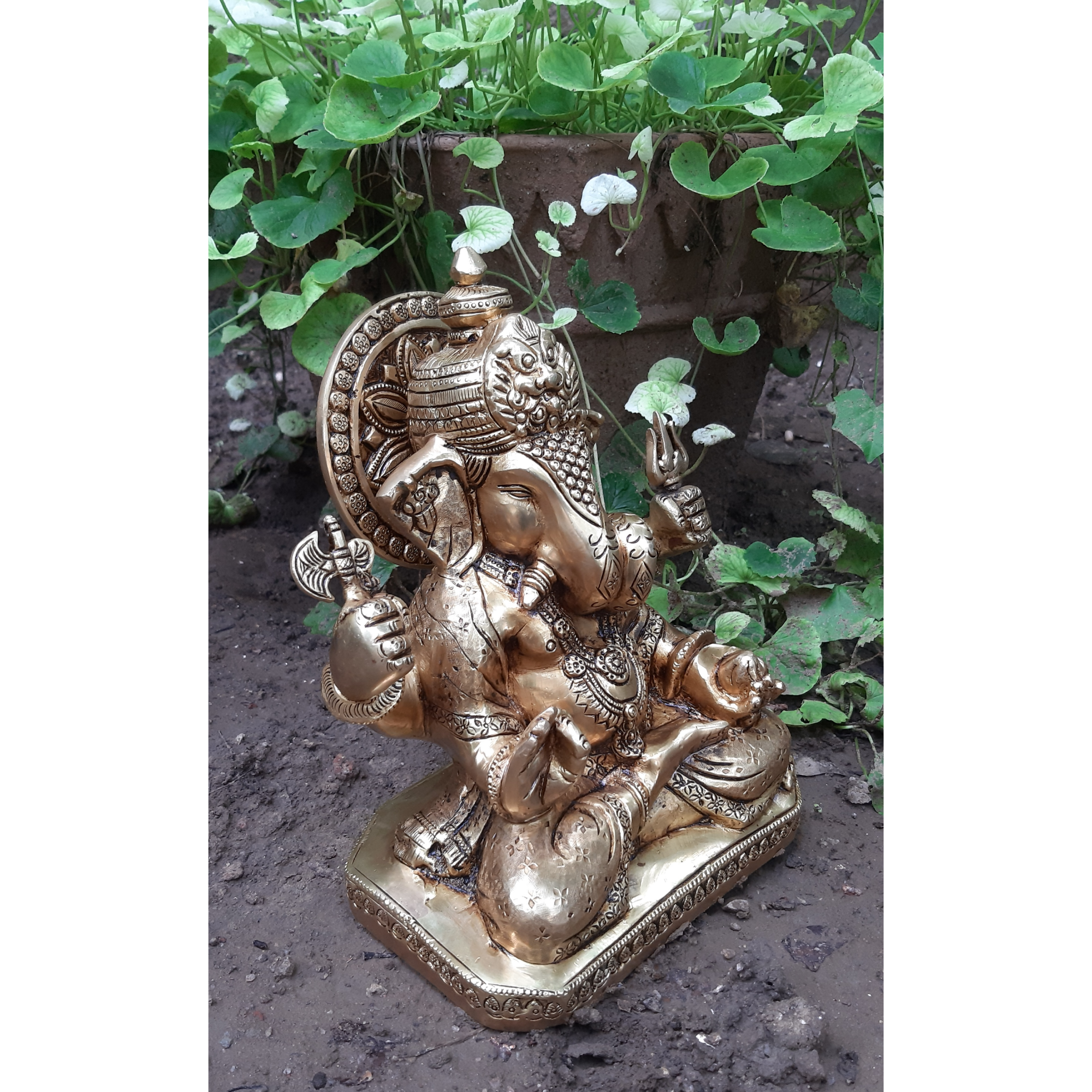 Beautiful and heavy Brass Dadgu Ganesh Dagroo Ganesha idol crafted with detailed workmanship for pooja and decor.