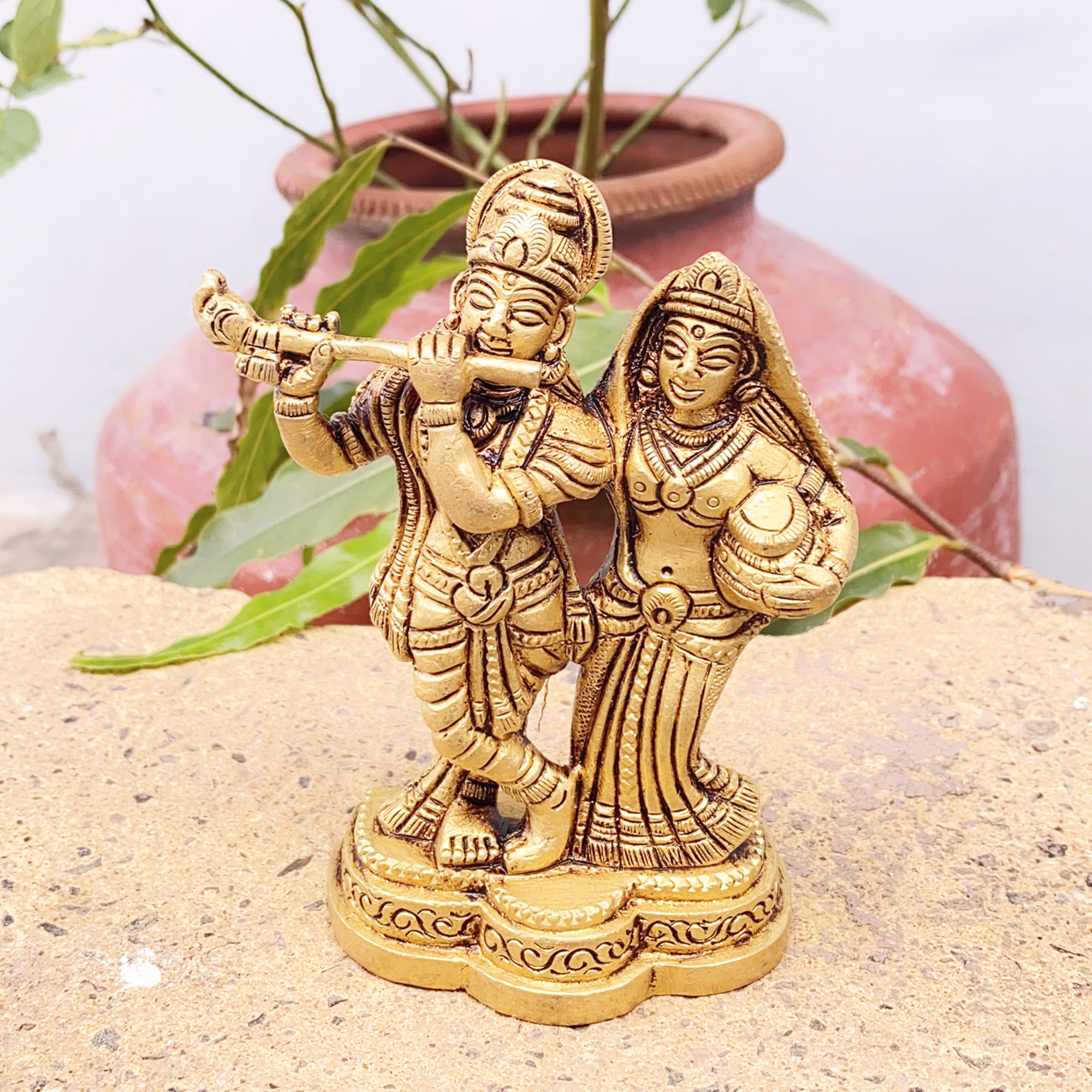A finely crafted Brass Radha Krishna Idol showcasing divine elegance, perfect for spiritual decor and daily worship.