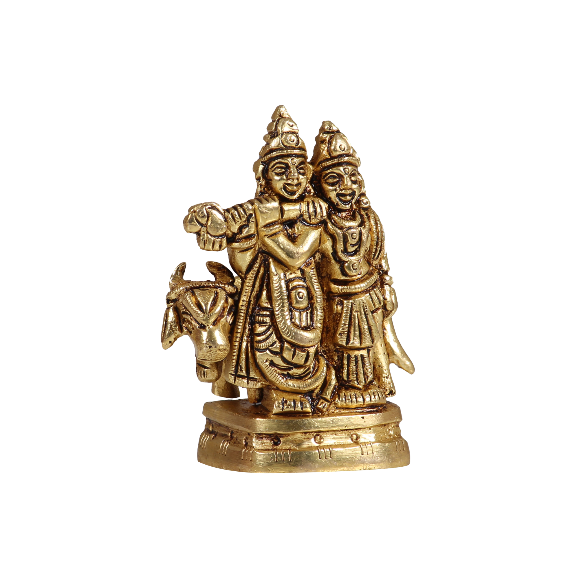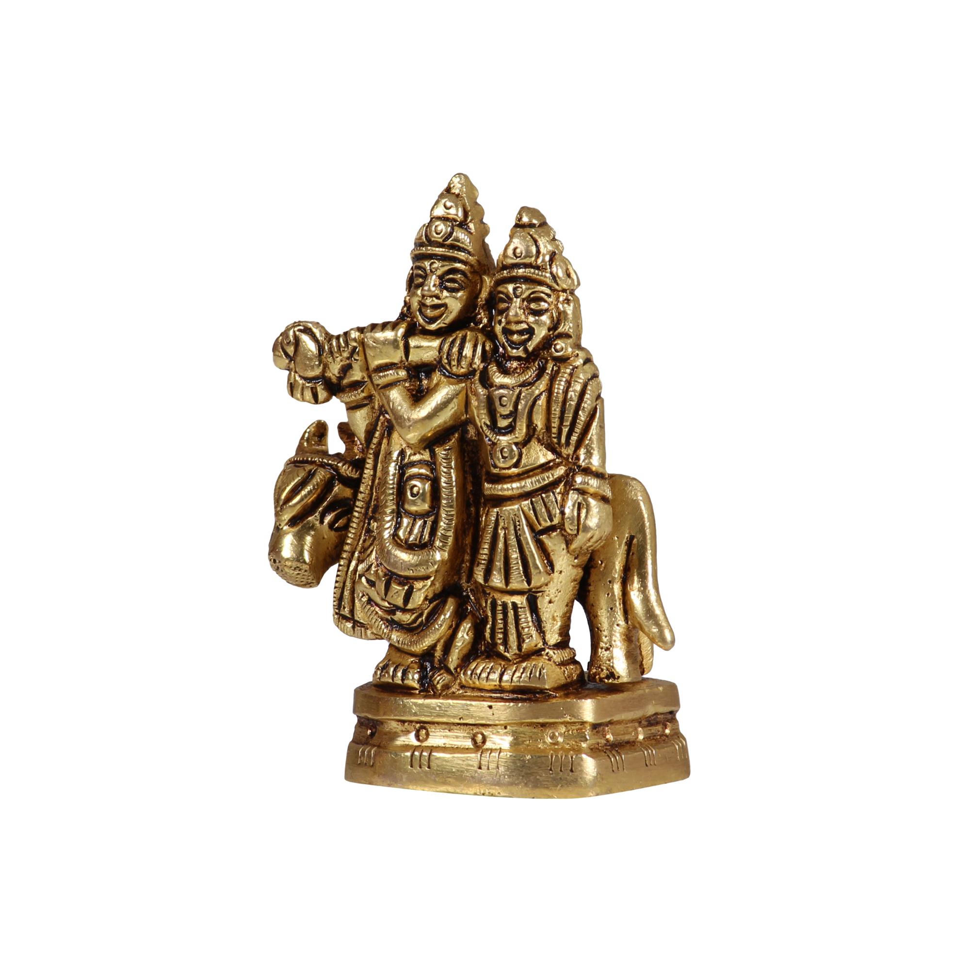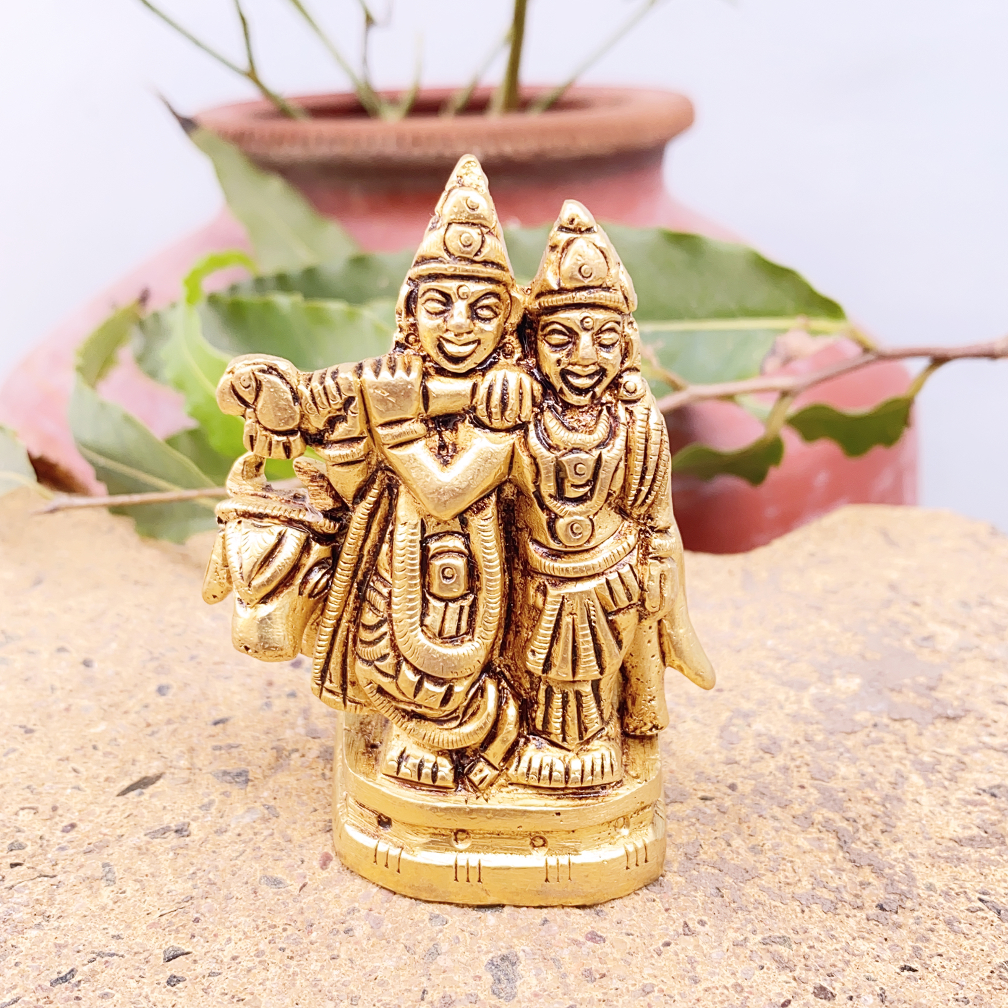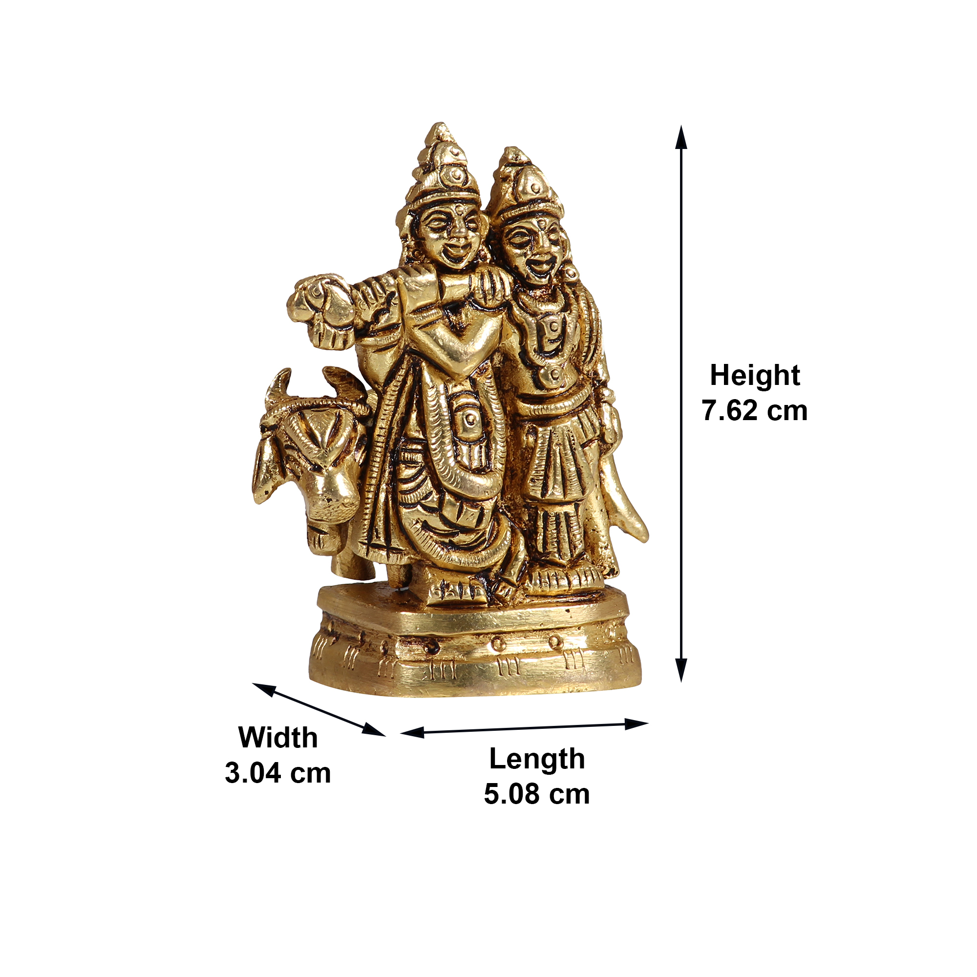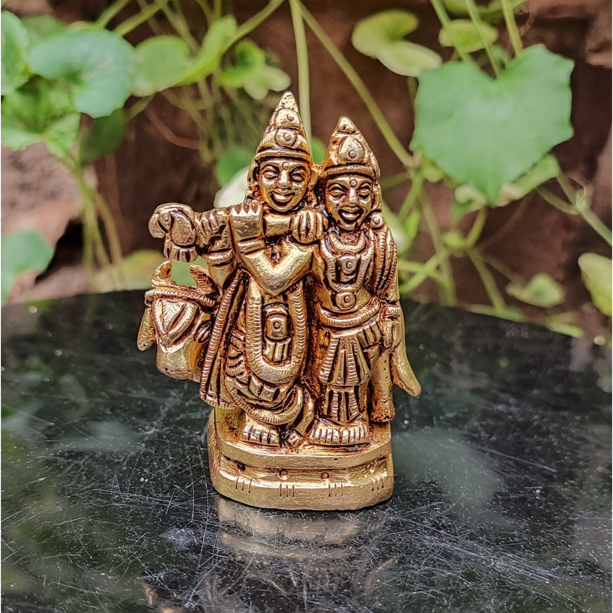 • Design: Handcrafted Pure Brass Small Idol of Radha Krishna, symbolizing love, devotion, and harmony