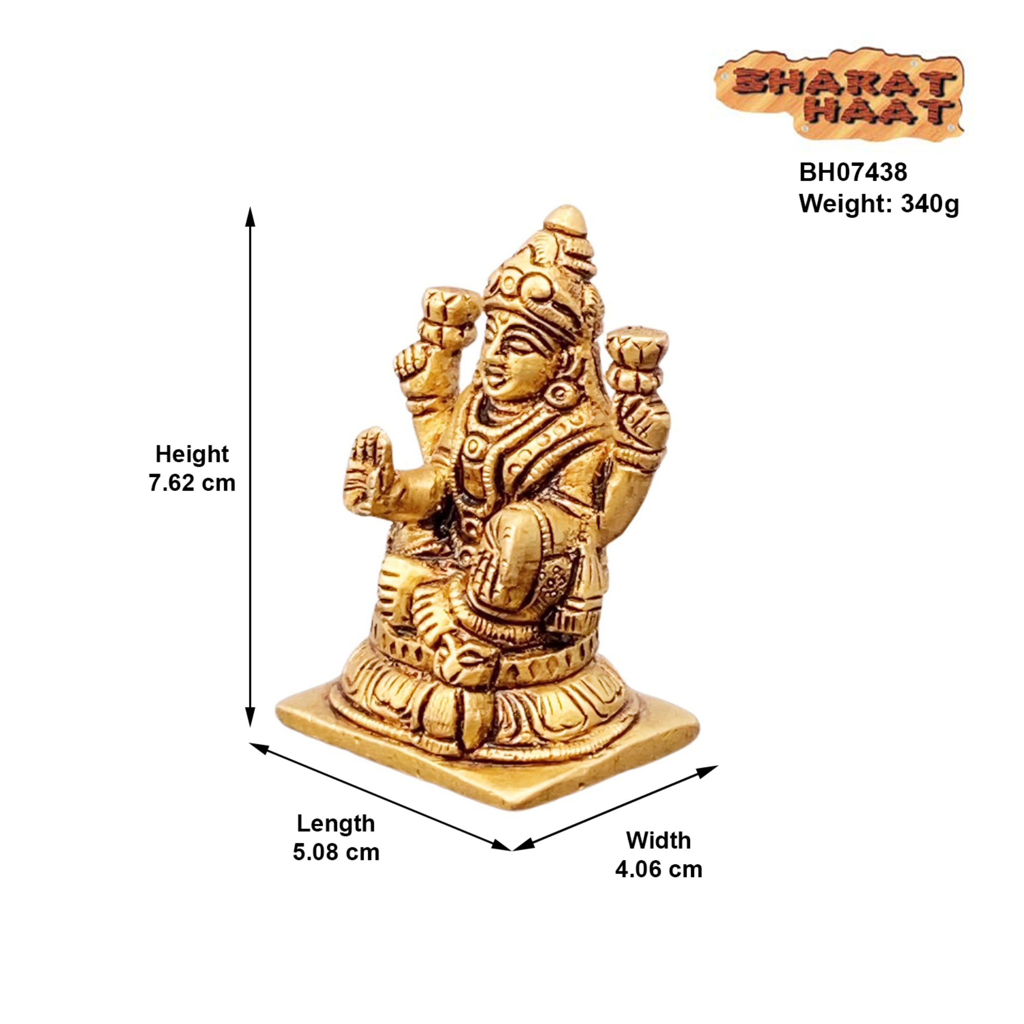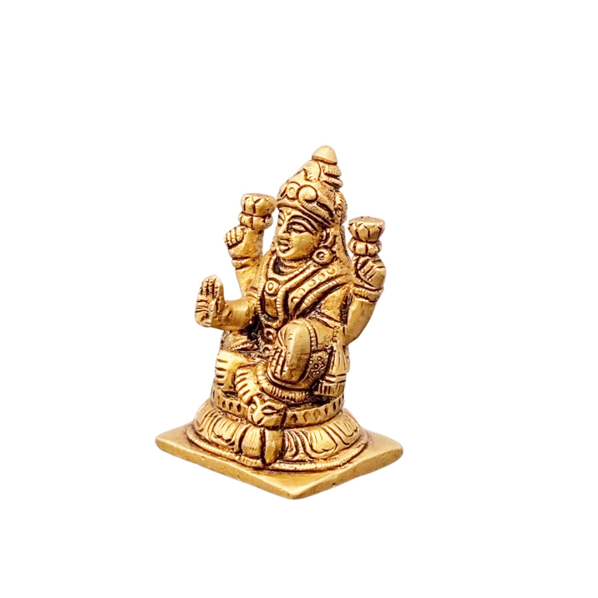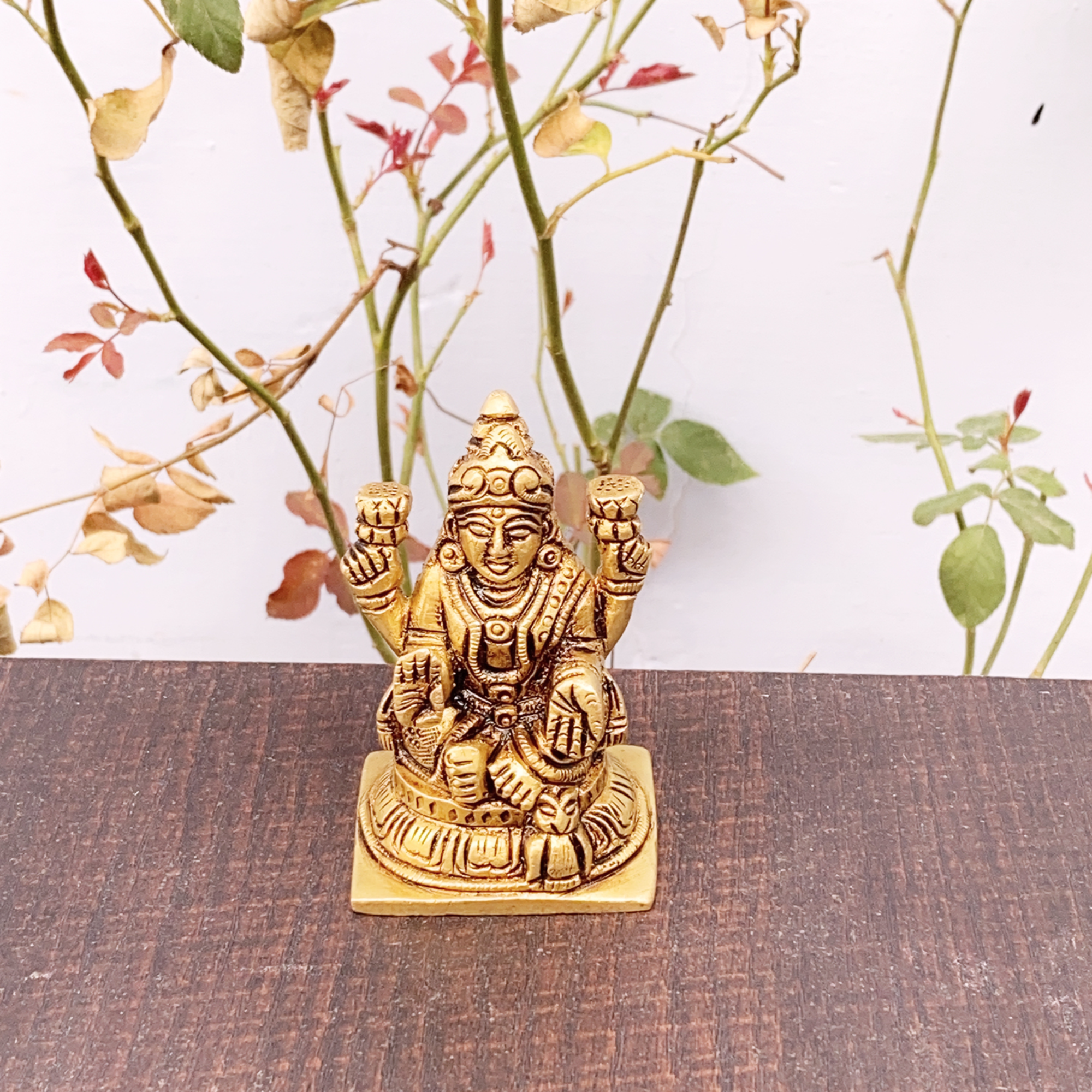 Small brass Laxmi statue with fine finish, perfect for pooja and decorative purposes.
