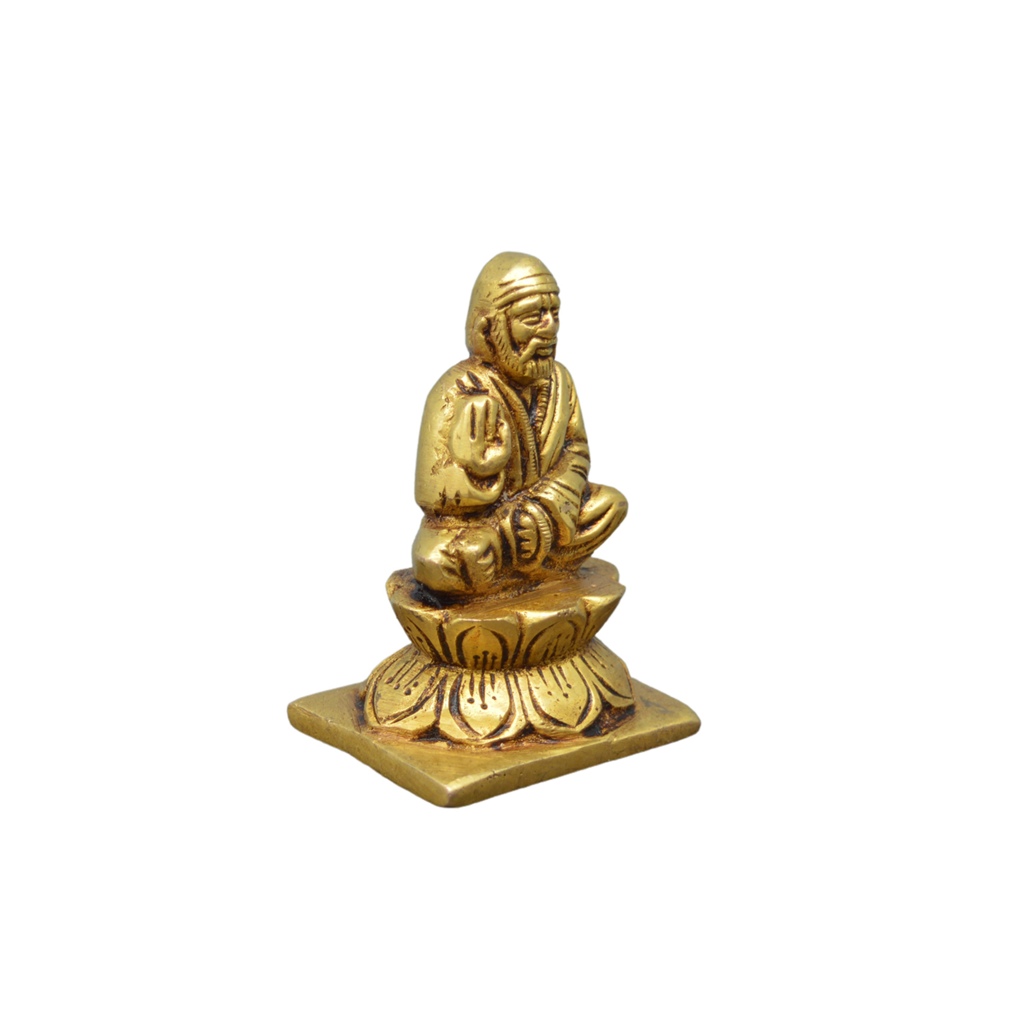 Small brass idol of Saibaba with detailed craftsmanship, ideal for pooja or home décor.