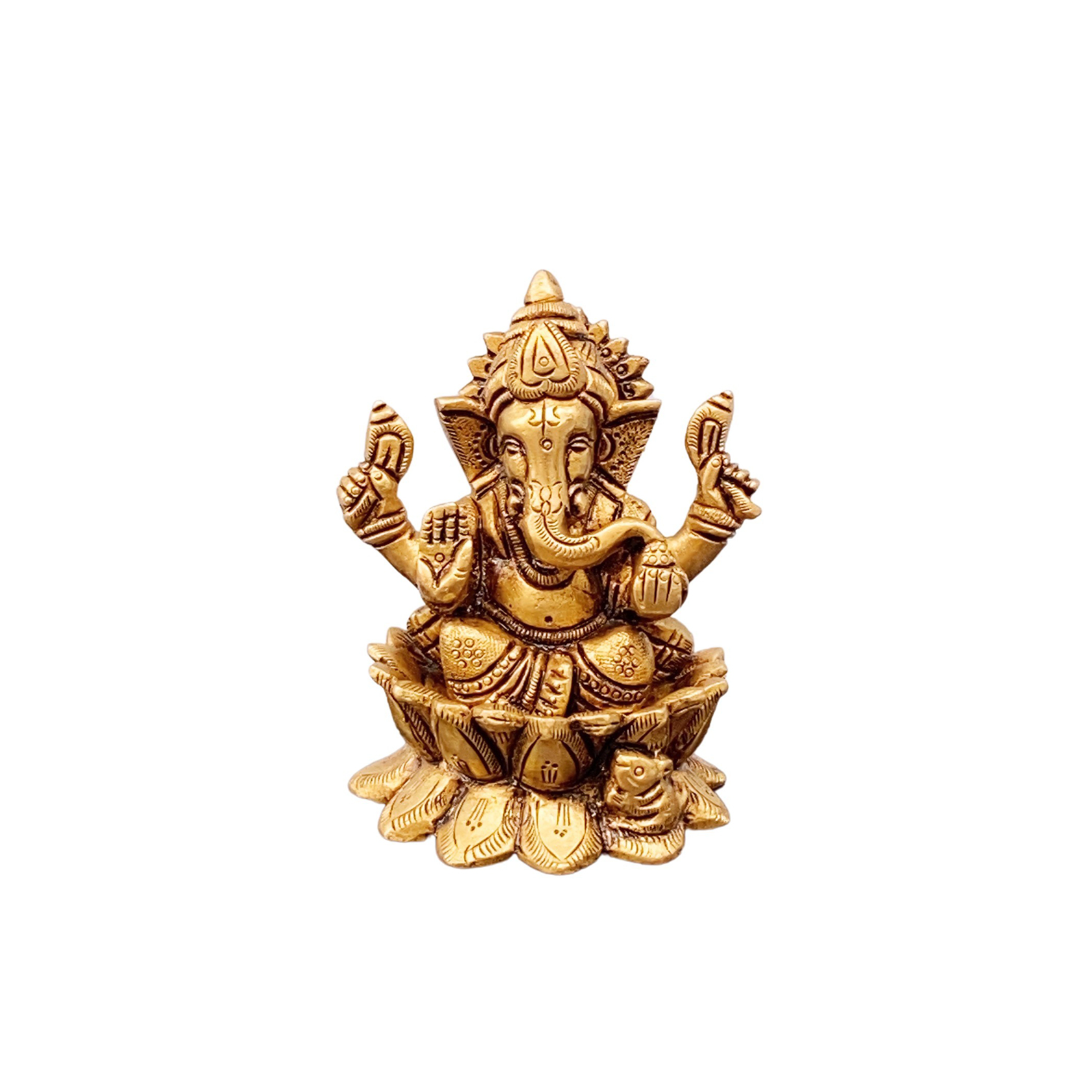 • Design: Handcrafted Pure Brass Kamal Ganesh Idol representing wisdom, prosperity, and auspicious beginnings