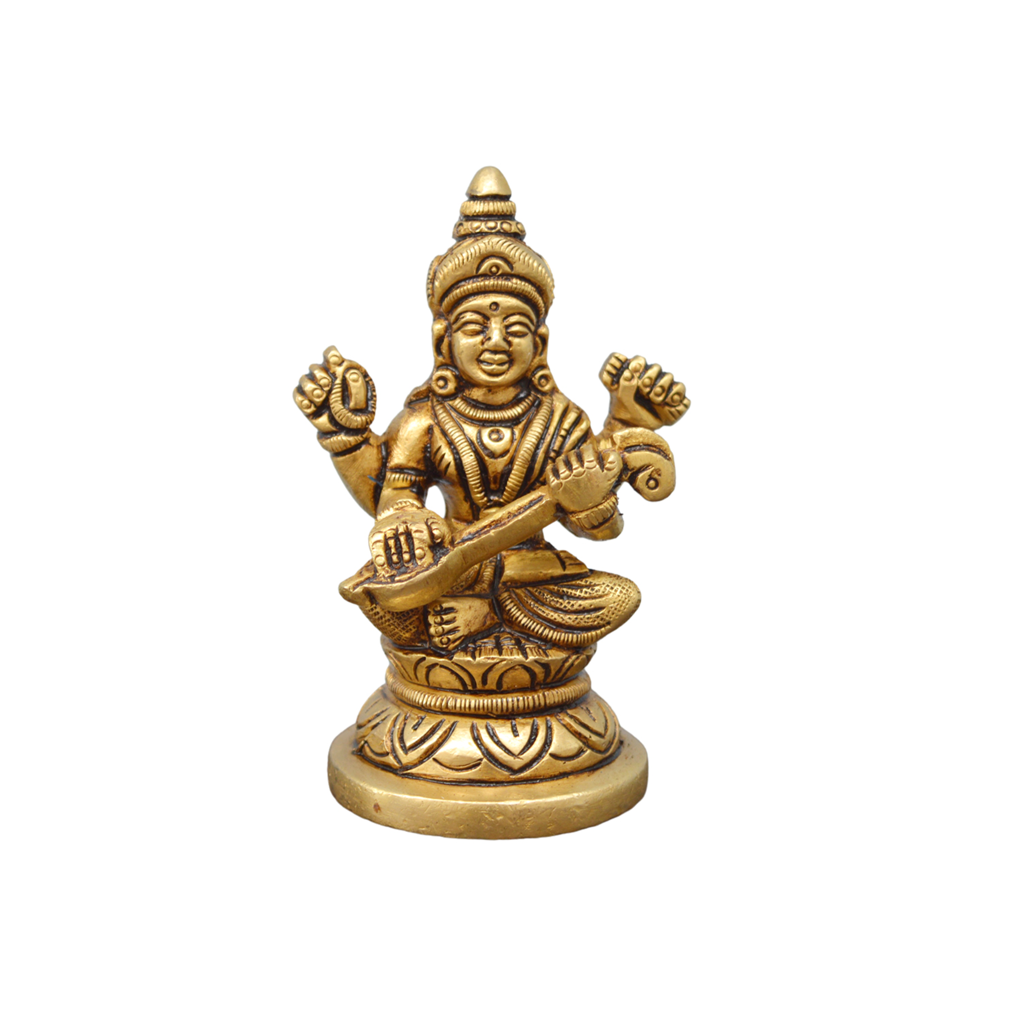 • Design: Handcrafted Pure Brass Saraswati Idol symbolizing knowledge, wisdom, and learning
