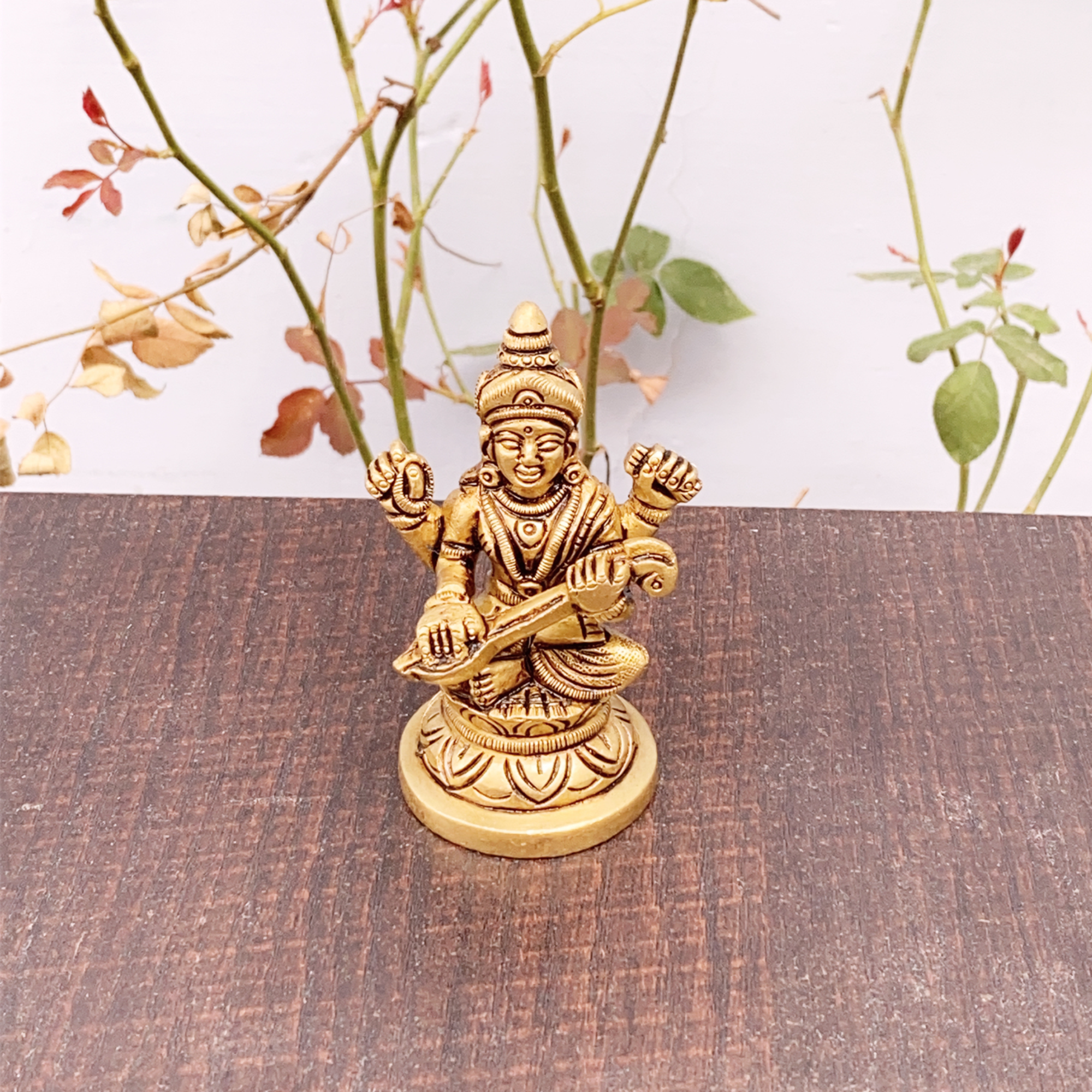 Beautiful small brass Saraswati idol ideal for pooja and home decoration.