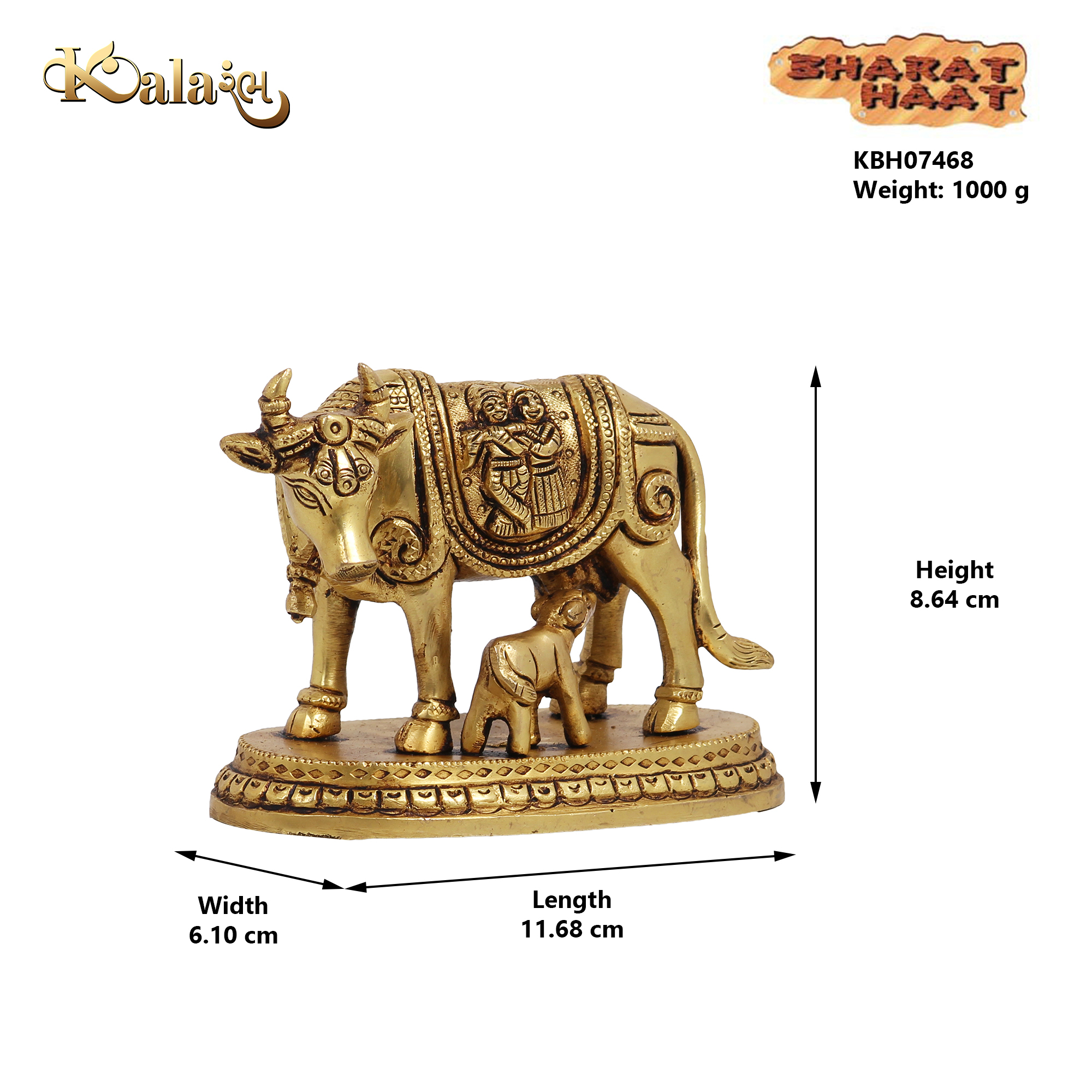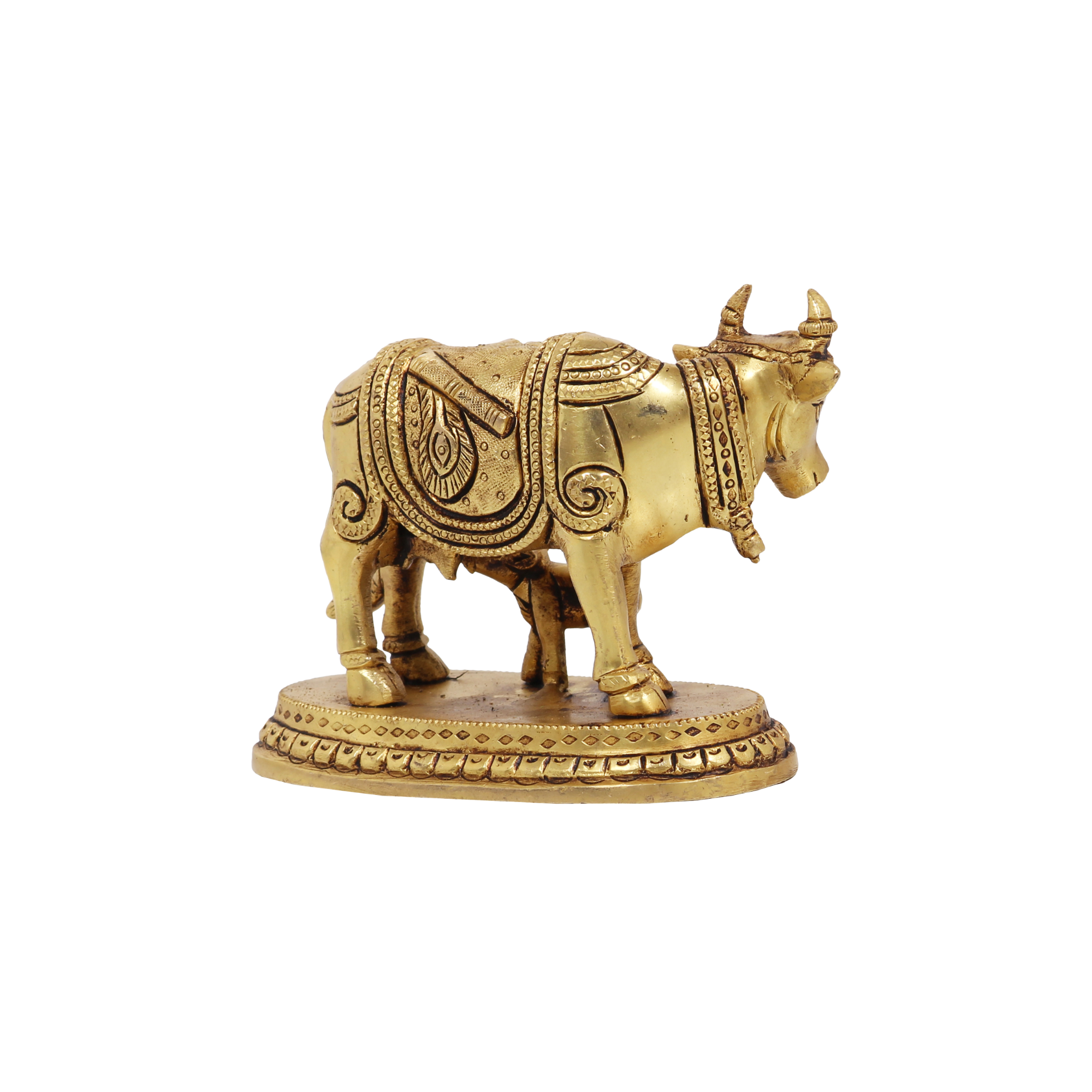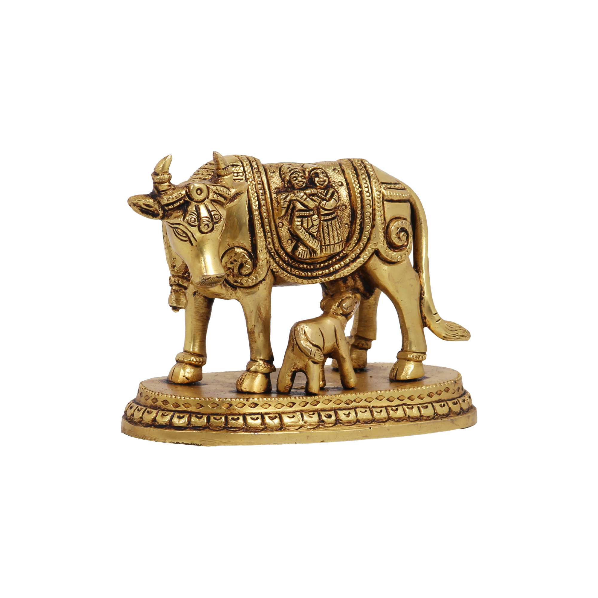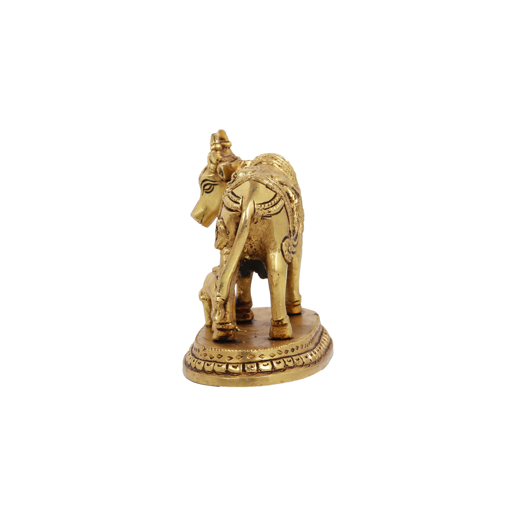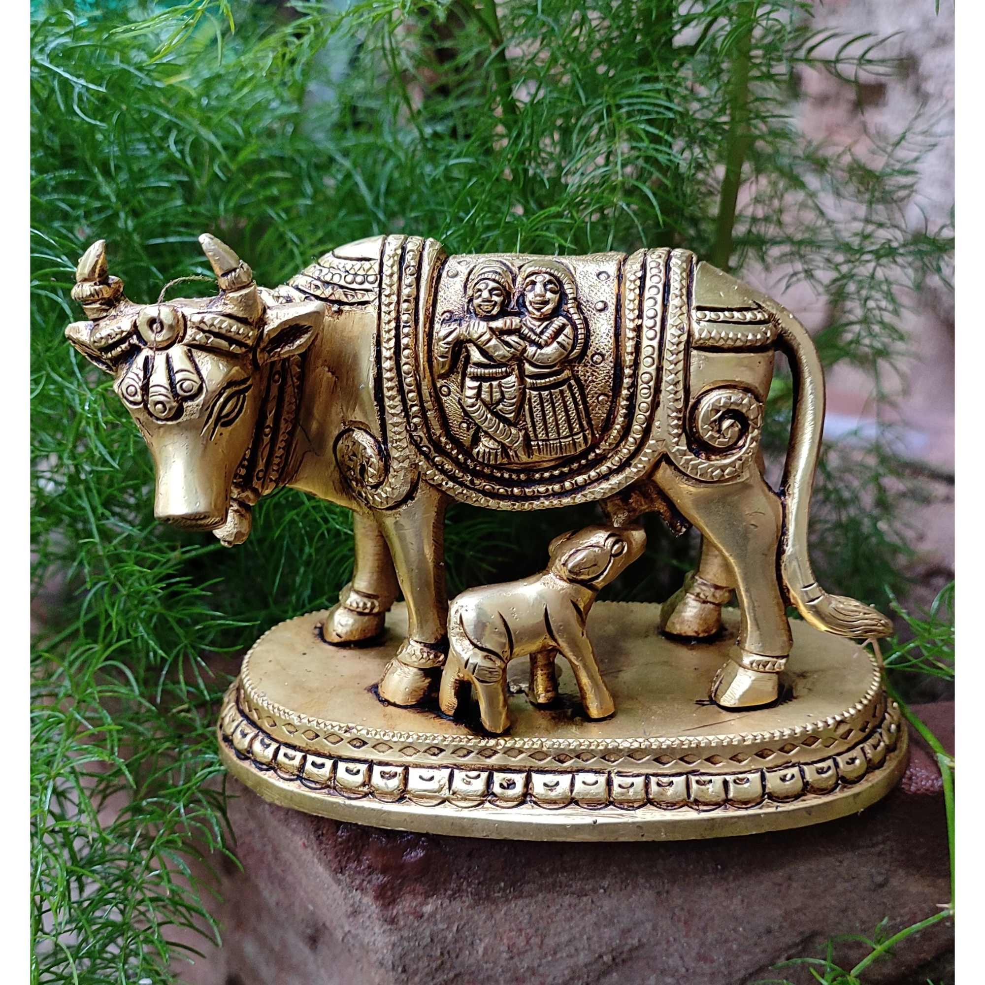 Design: Handcrafted Pure Brass Cow & Calf Idol symbolizing prosperity, nurturing, and divine blessings