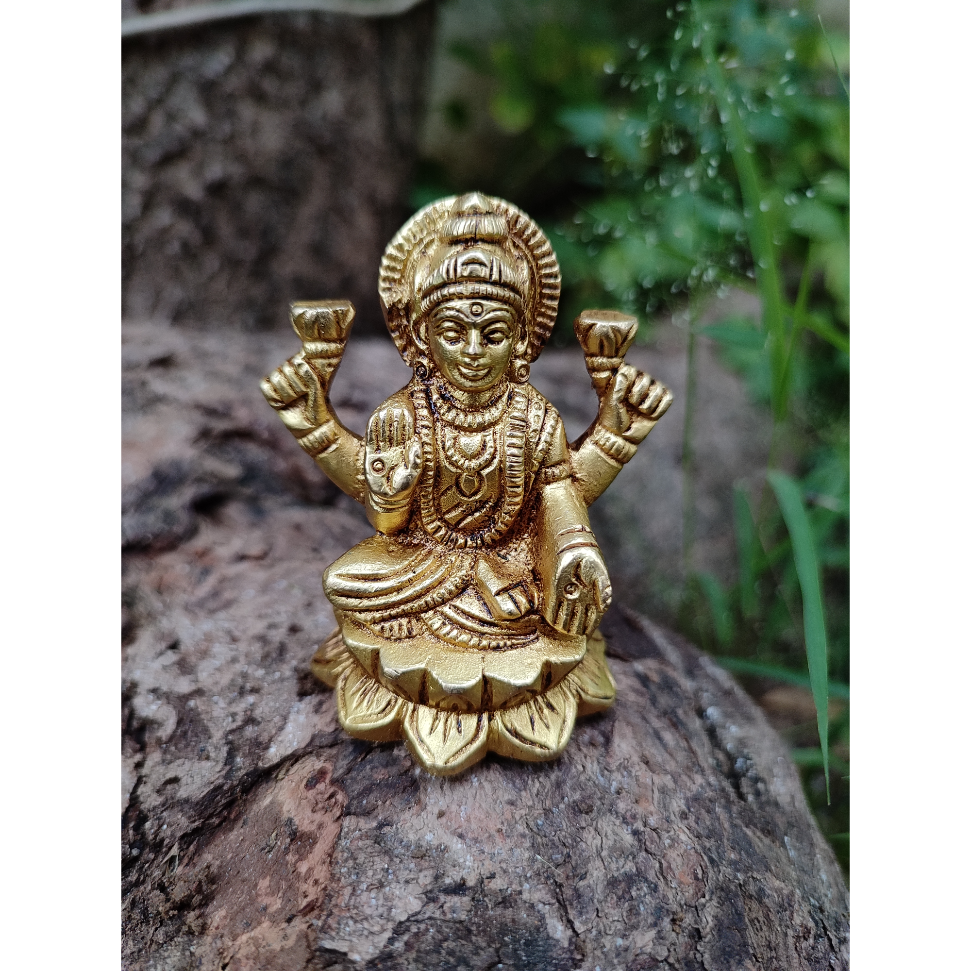 Design: Goddess Lakshmi seated gracefully on a beautifully carved lotus symbolizing purity and abundance