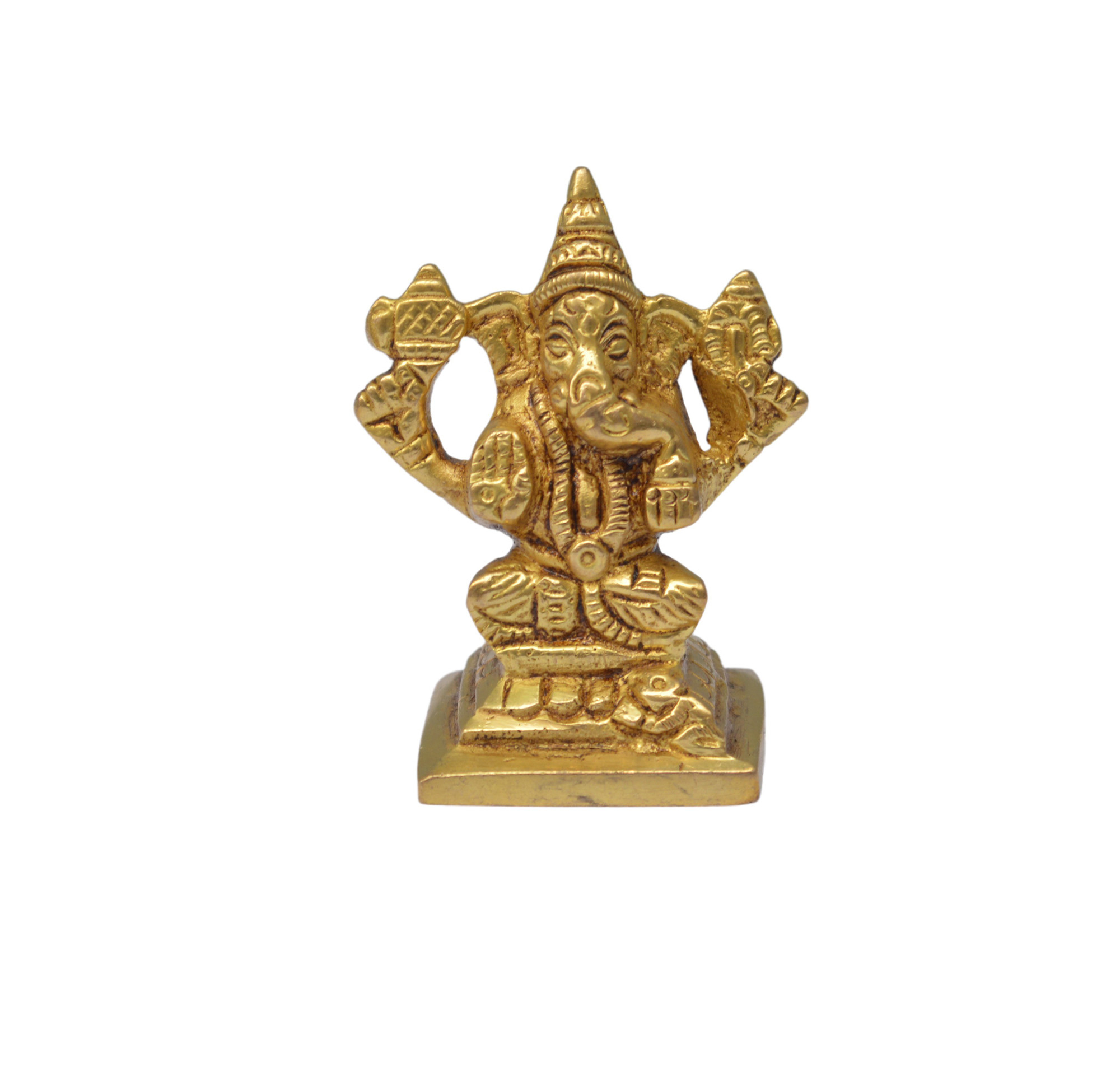 Compact and beautifully crafted Brass Ganesh idol perfect for pooja rooms, office tables, and auspicious gifting.