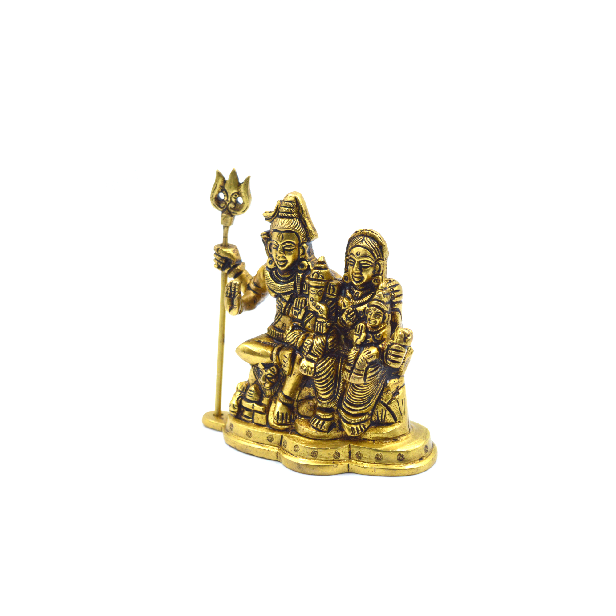 Design: Handcrafted brass idol depicting the complete Shiv family with intricate detailing